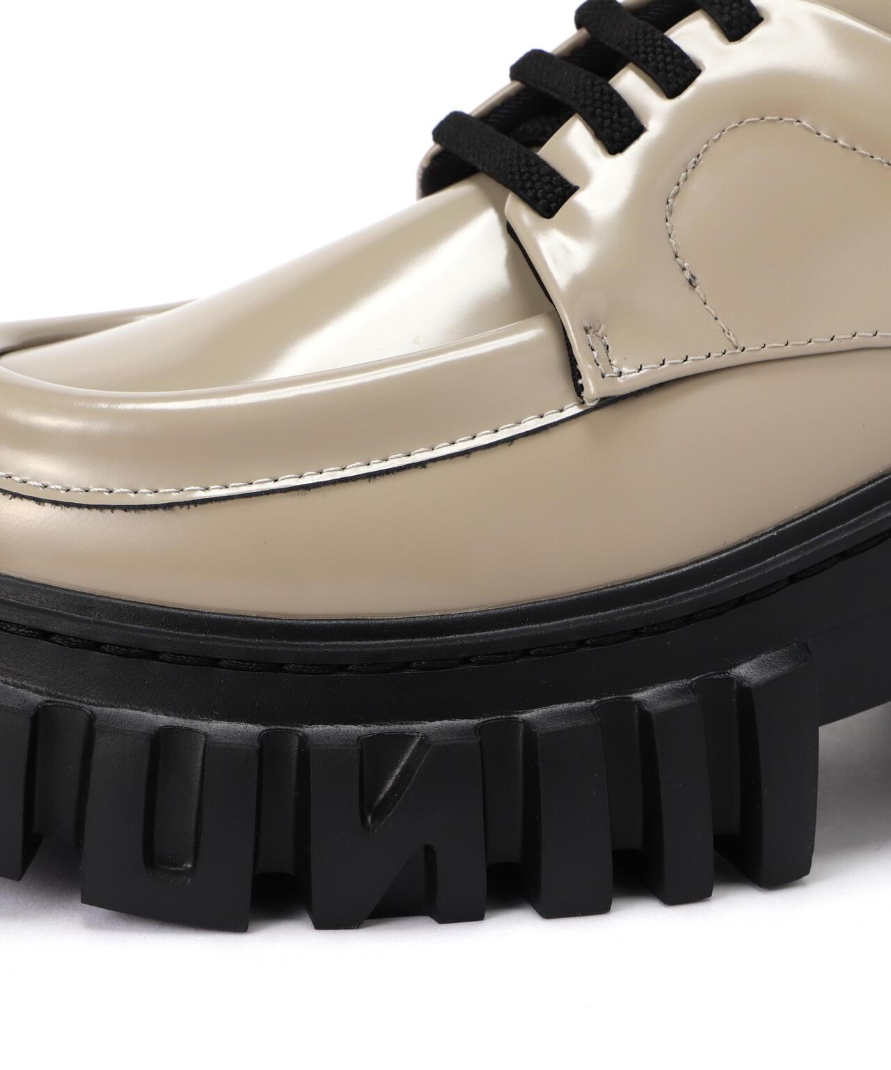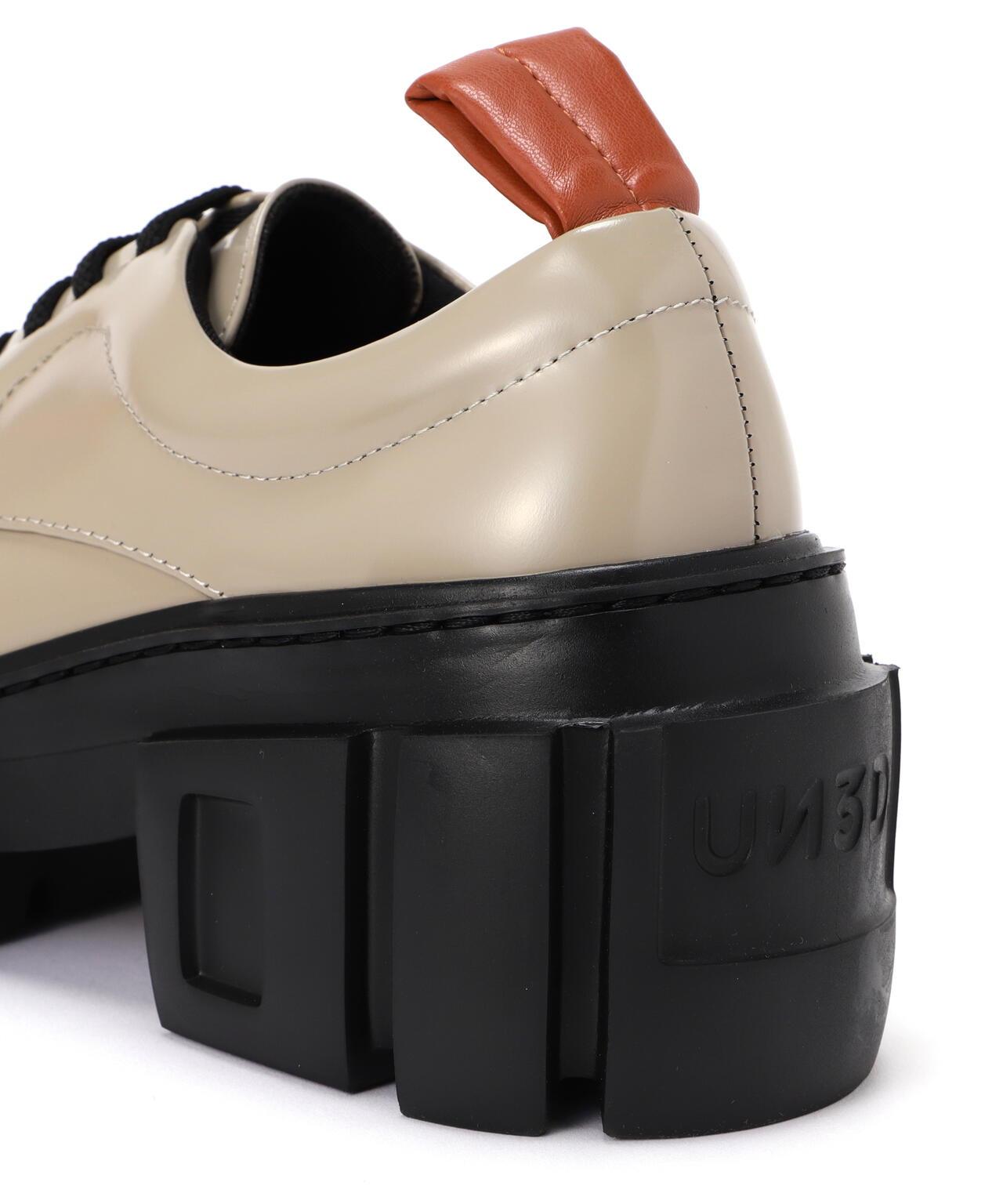 這是一款休閒鞋,細節設計簡單但部分誇張,鞋墊設計凹凸有致。鞋頭更厚更飽滿,後面的標籤更寬,設計更具衝擊力。這款鞋看起來像繫帶鞋,但不用繫鞋帶也能快速方便地穿著。製造商商品編號:5225518011UN3D./UNSREAD<アンスリード>取自 UN STANDARD、UN SIMPLE、UN SIMILER 三個 UN(對立面),逐一質疑時代、潮流、常識和固定觀念,渴望珍視自由個性和敏感性。該名稱源自 UN(對立面)一詞,意為 "三個 UN 的對立面"。標誌性的細節,如結構緊湊的褶襉、錯綜複雜的褶皺、貼身的剪裁,都是 UN 系列的特色。