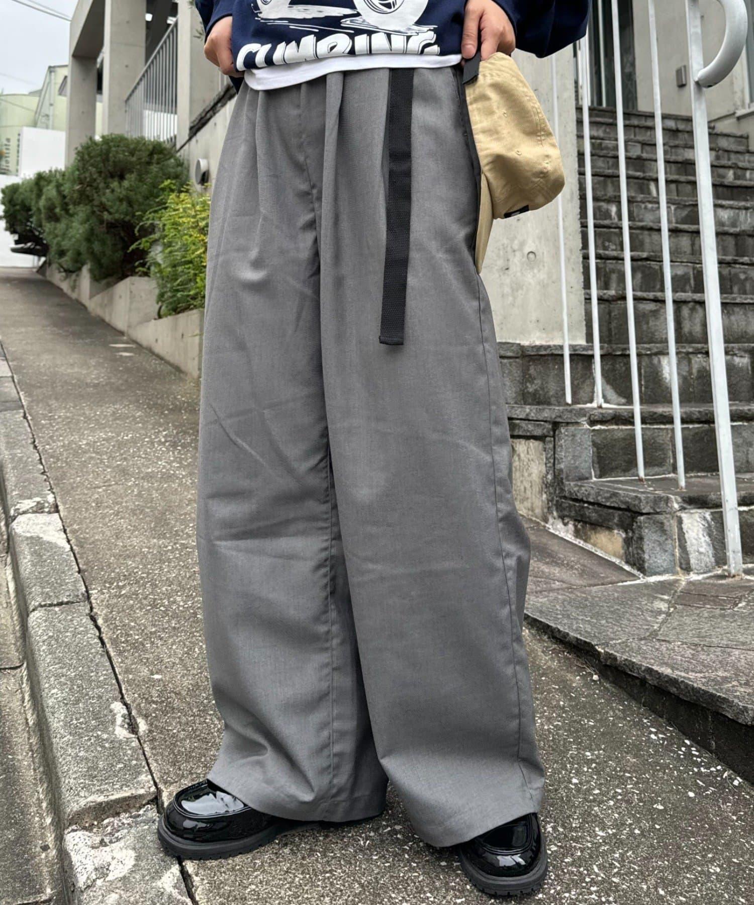 【UNISEX】側邊腰帶寬鬆西裝褲