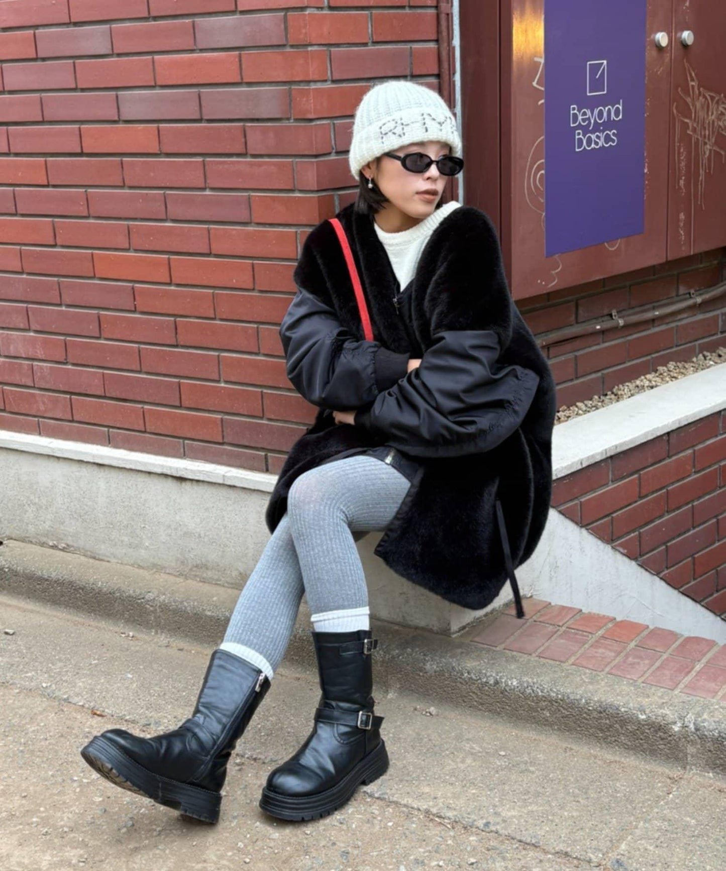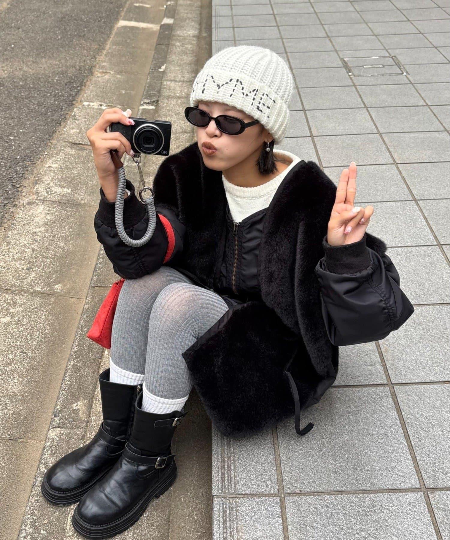 量感適中的羅紋針織讓帽子具有小臉效果。