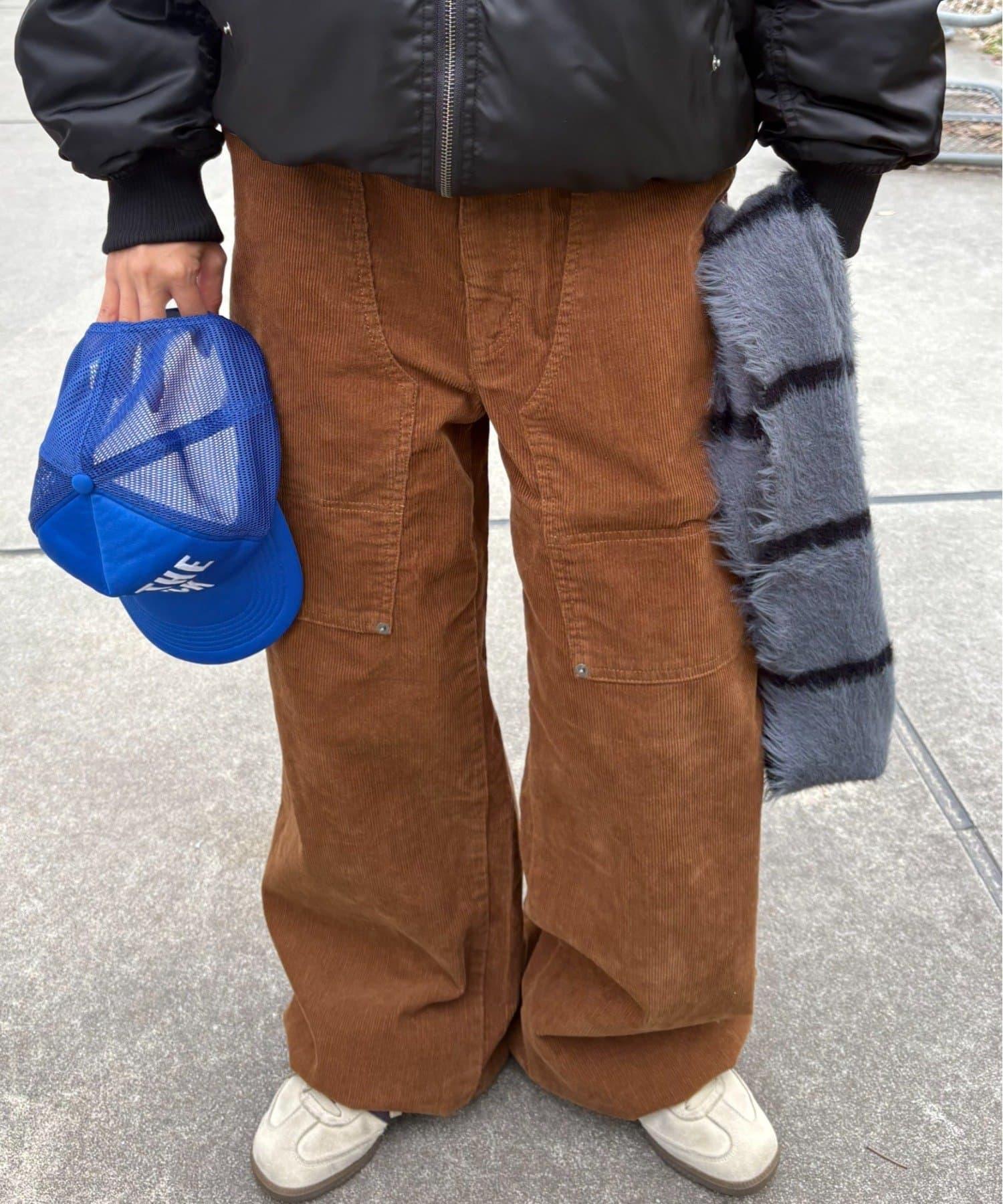 膝蓋處的雙膝縫線和鉚釘設計,讓這款褲子充滿力量和設計感。
