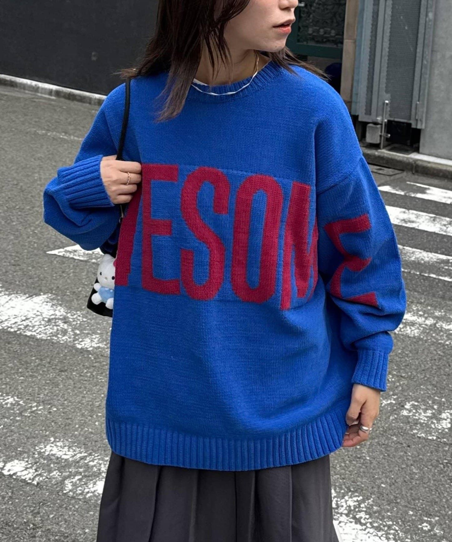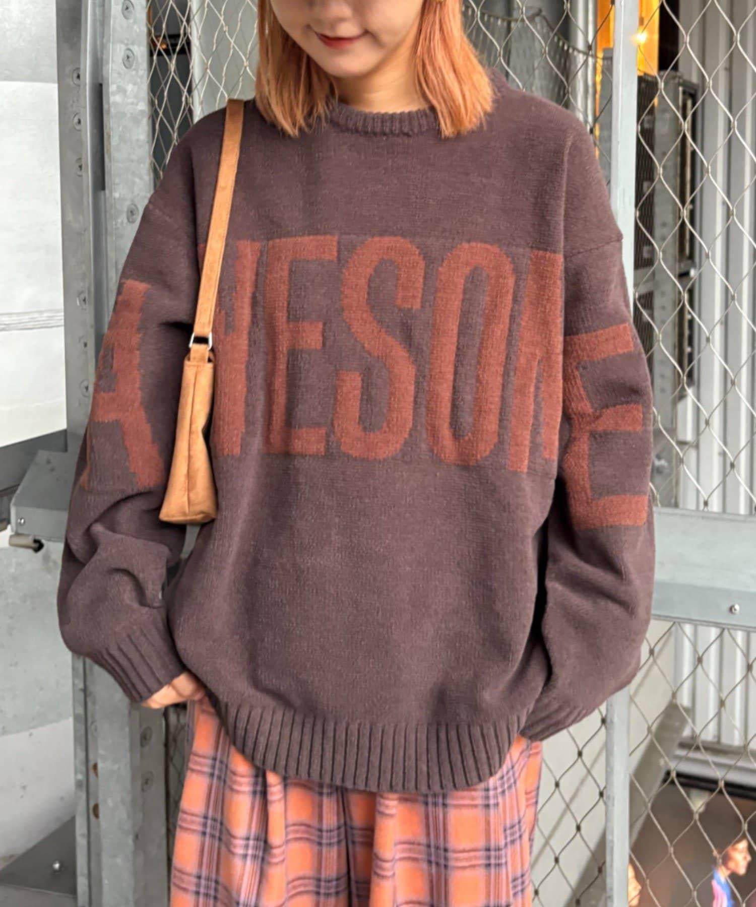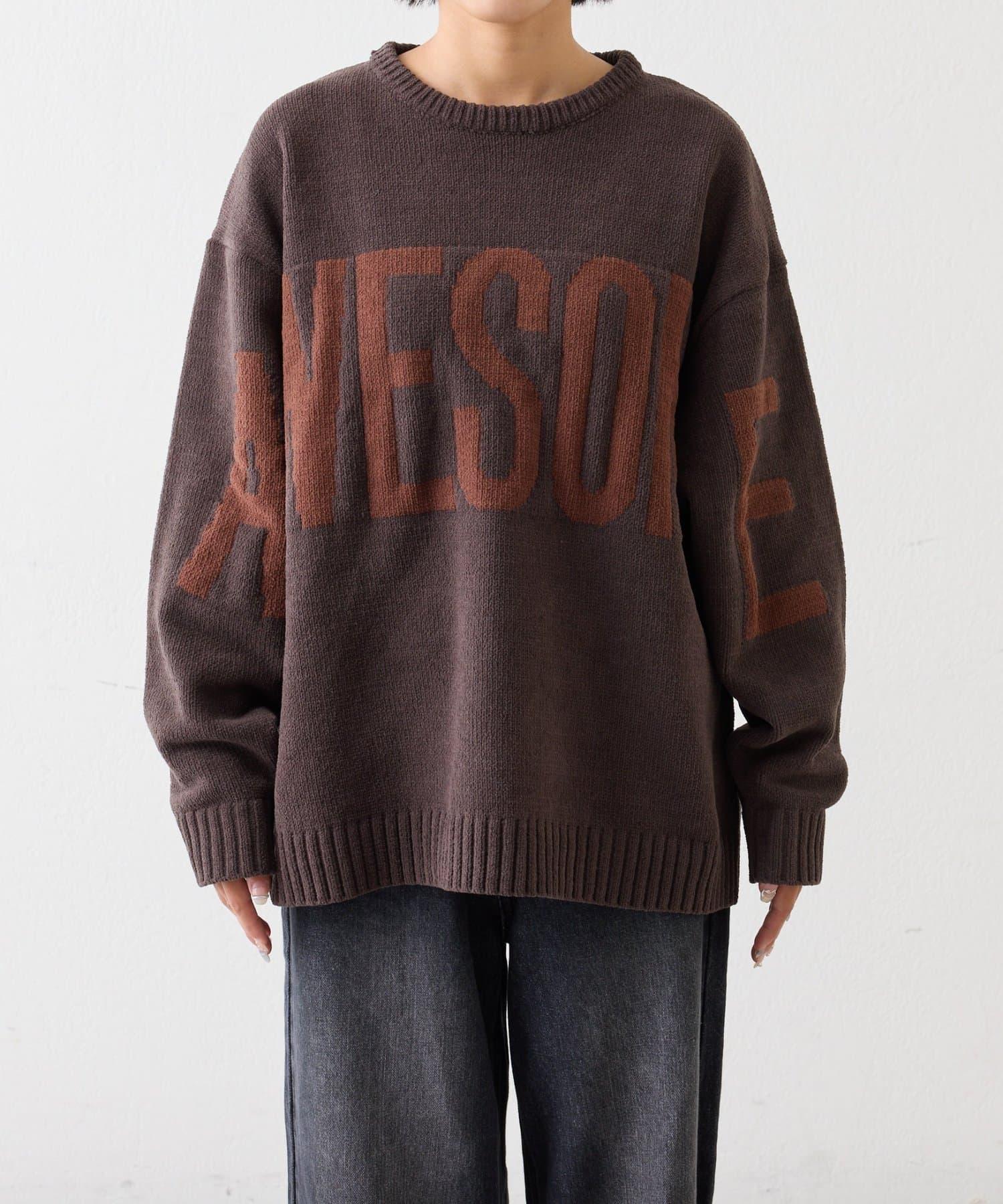 提花針織衫上印有醒目的 AWESOME 標誌!