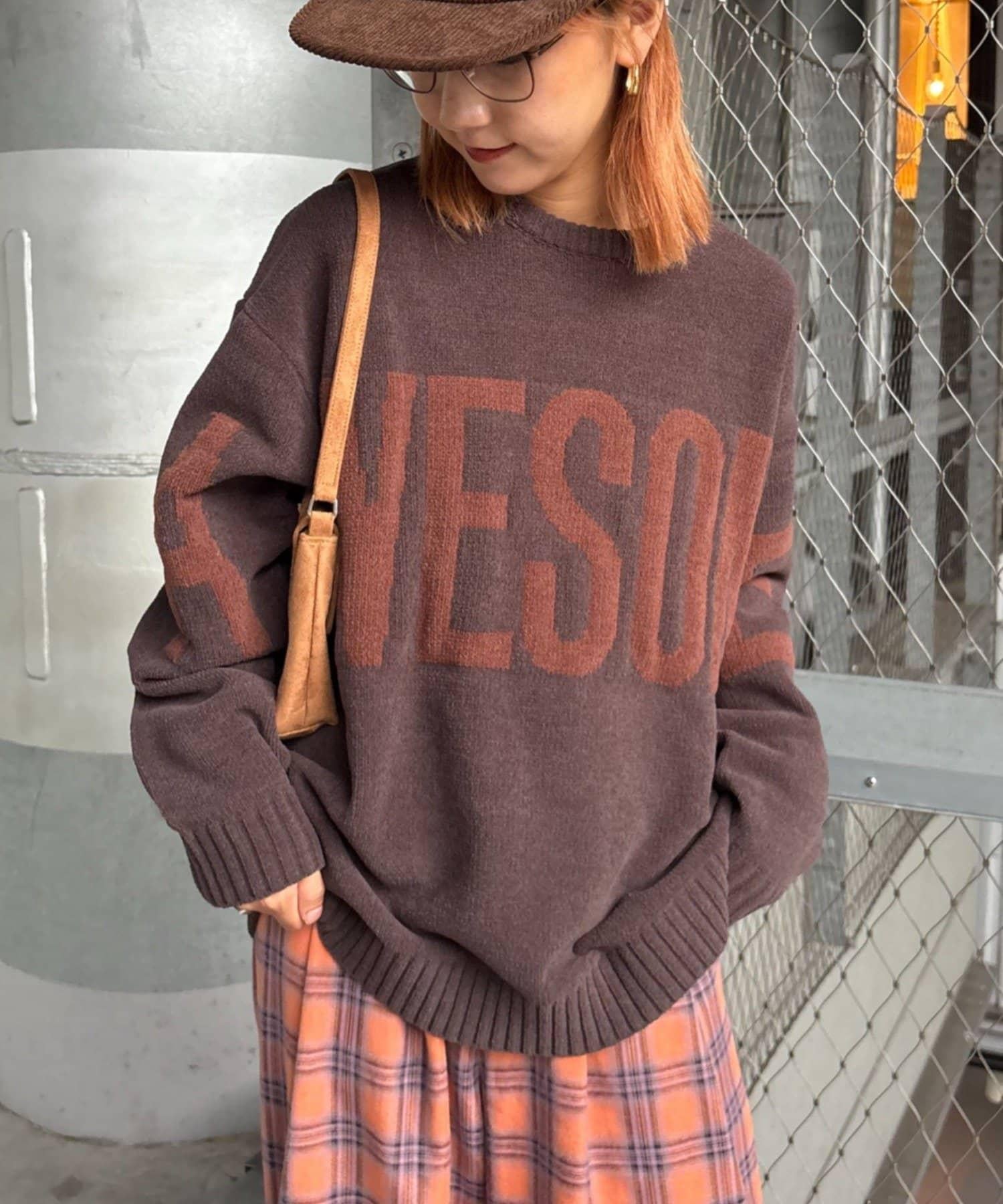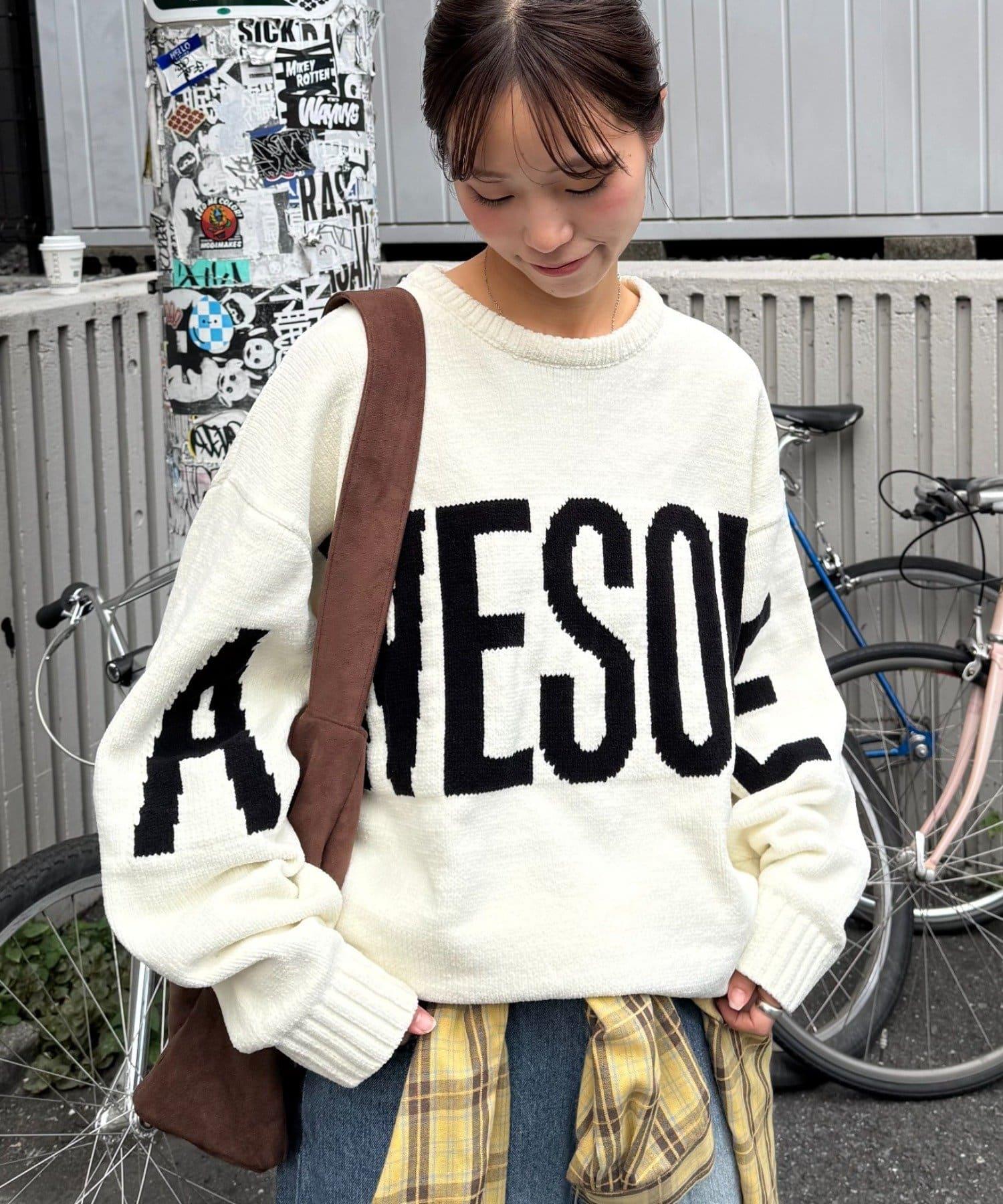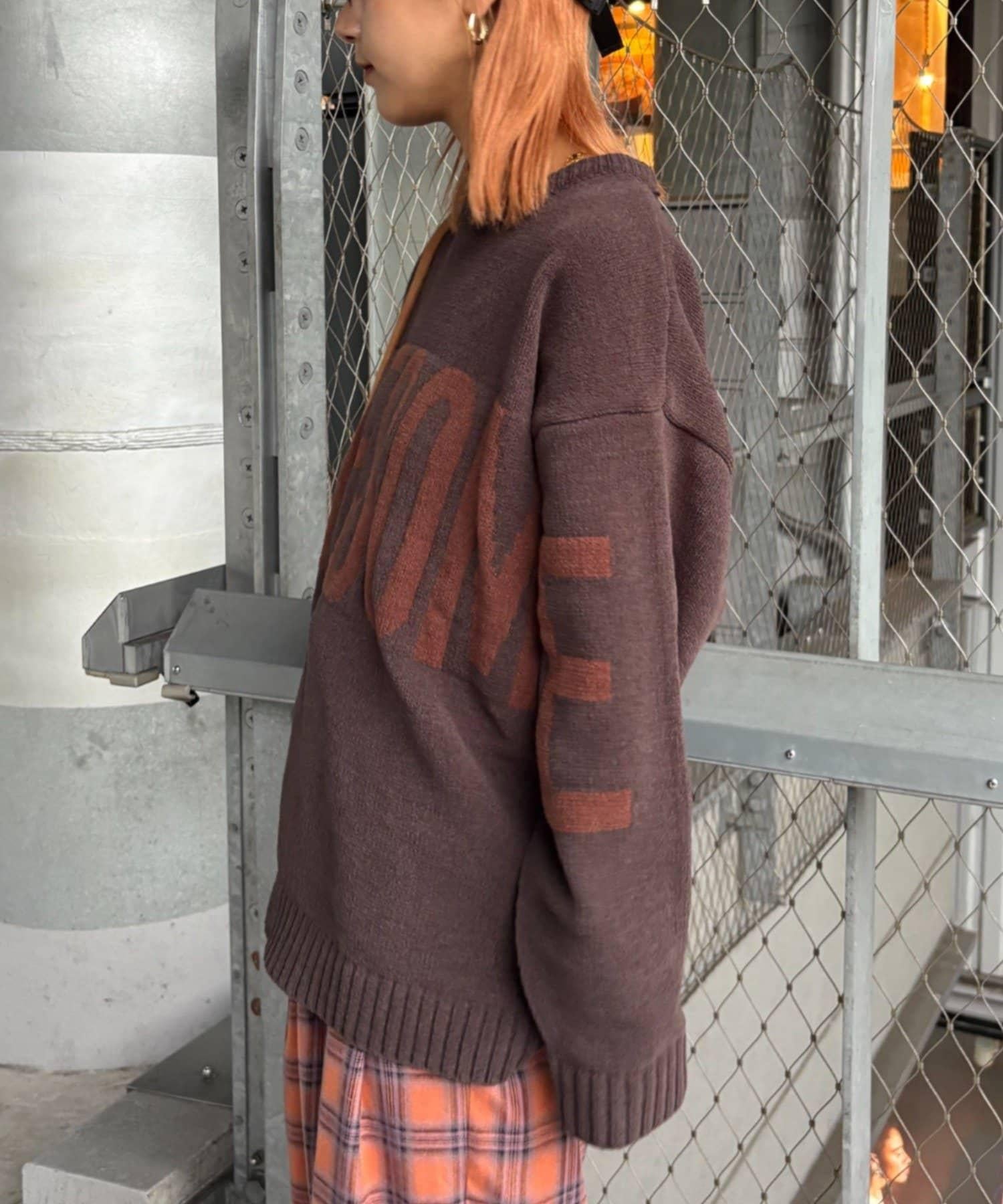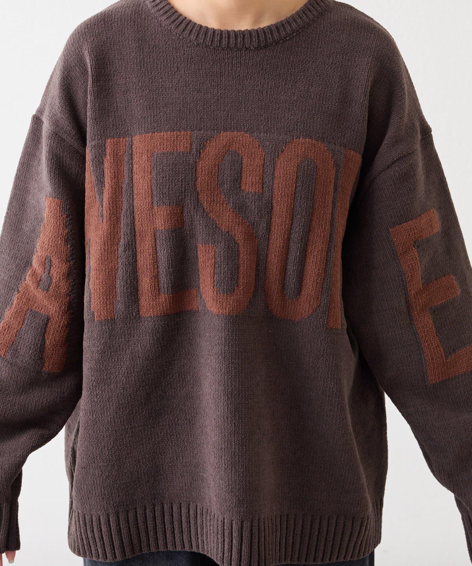 提花針織衫上印有醒目的 AWESOME 標誌!