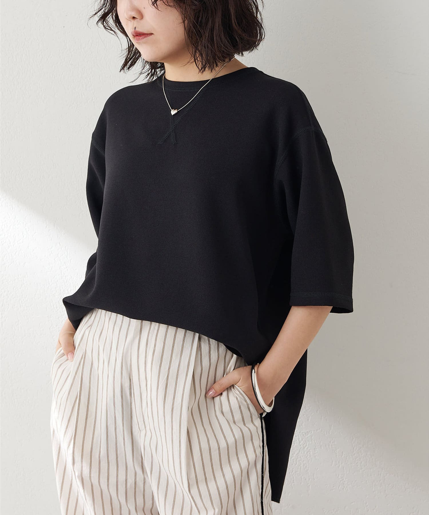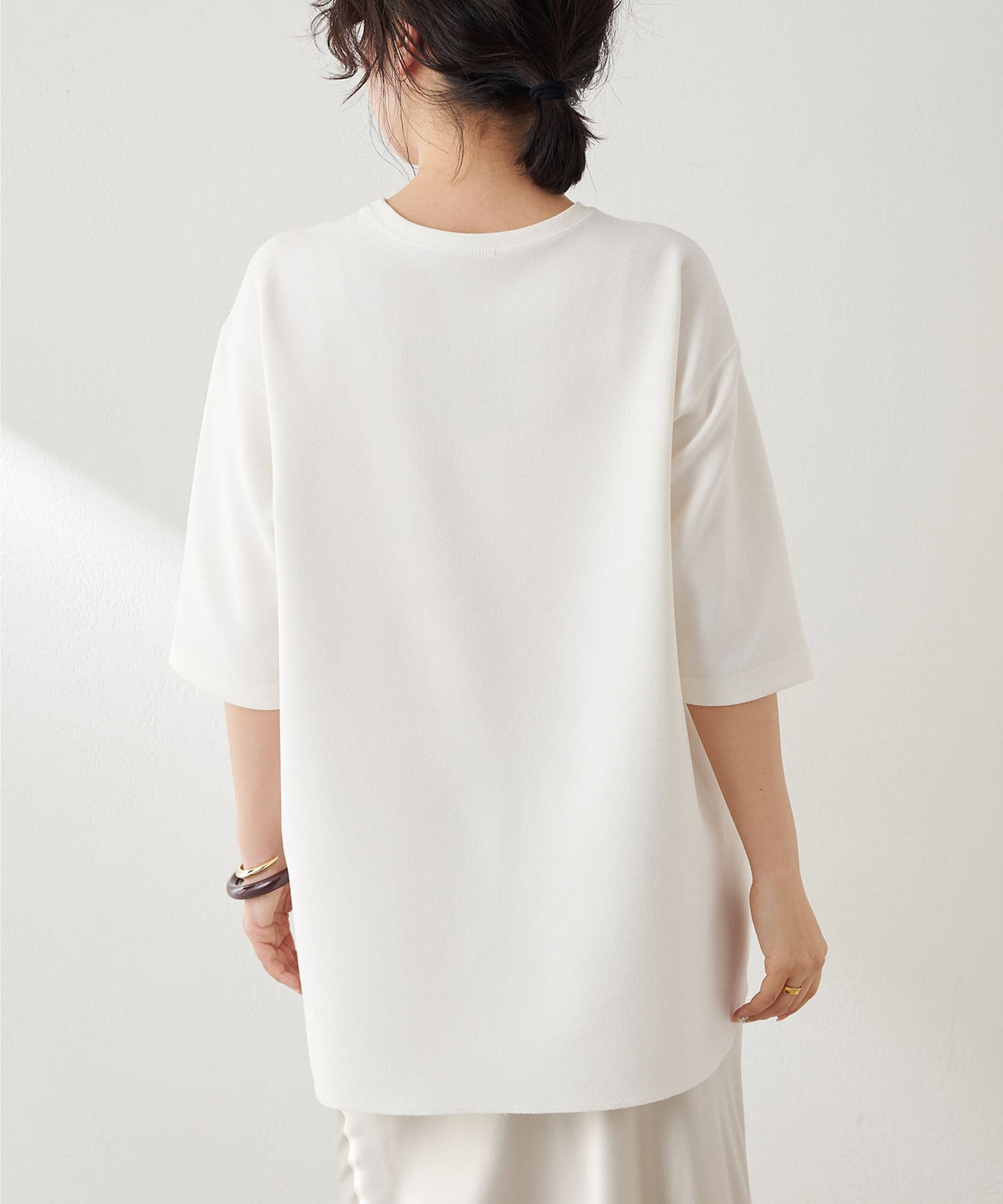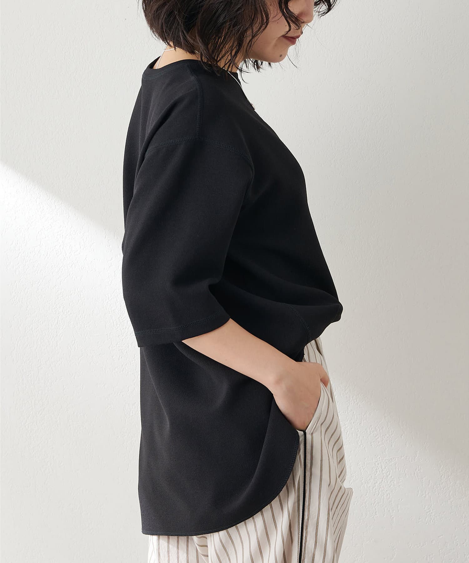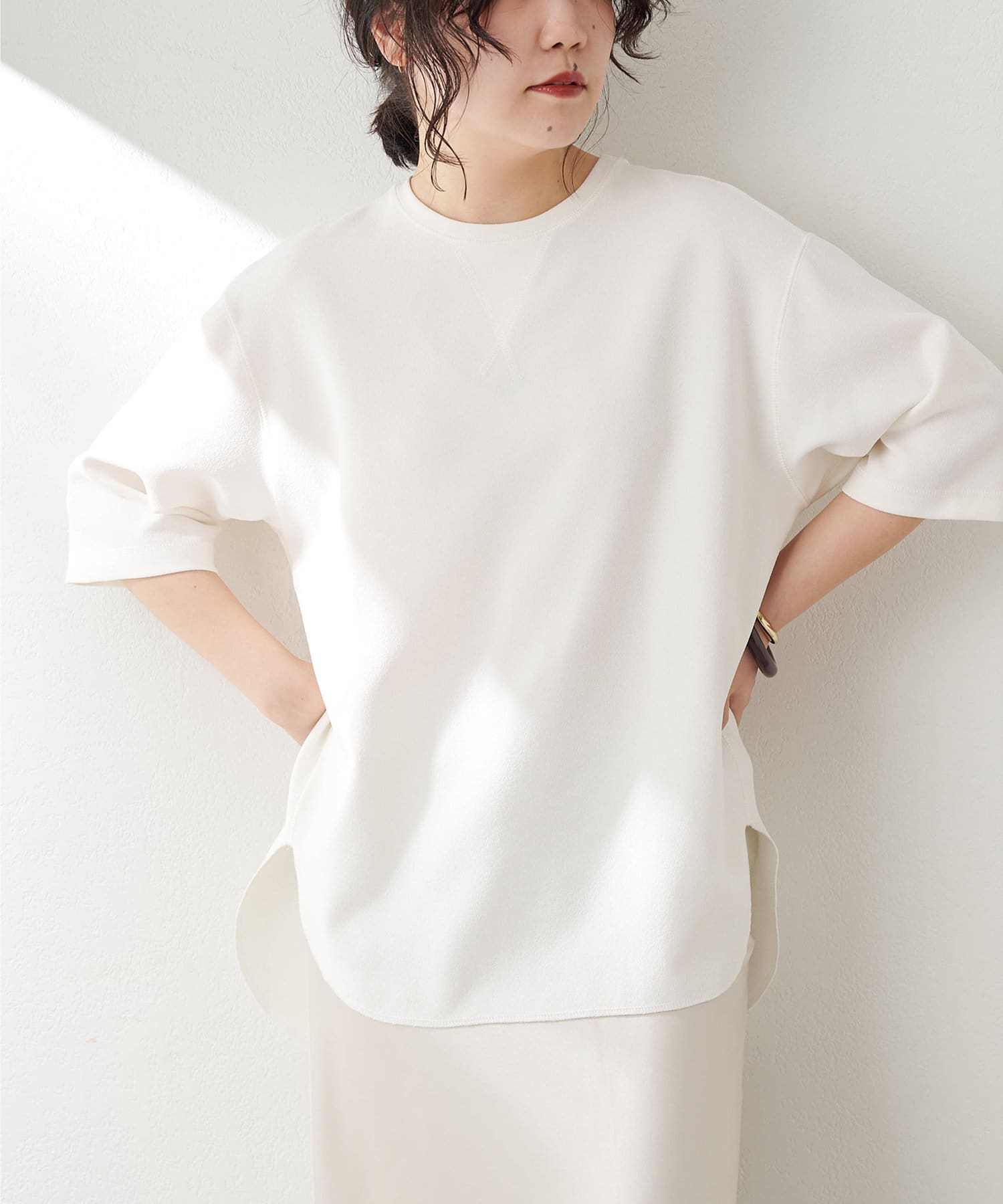 寬鬆舒適的廓形帶來微妙的不同。設計可隱藏肘部。根據下裝的不同,可享受內穿或外穿的樂趣。抗皺、洗後快乾的百搭上衣。一定能發揮積極作用!
