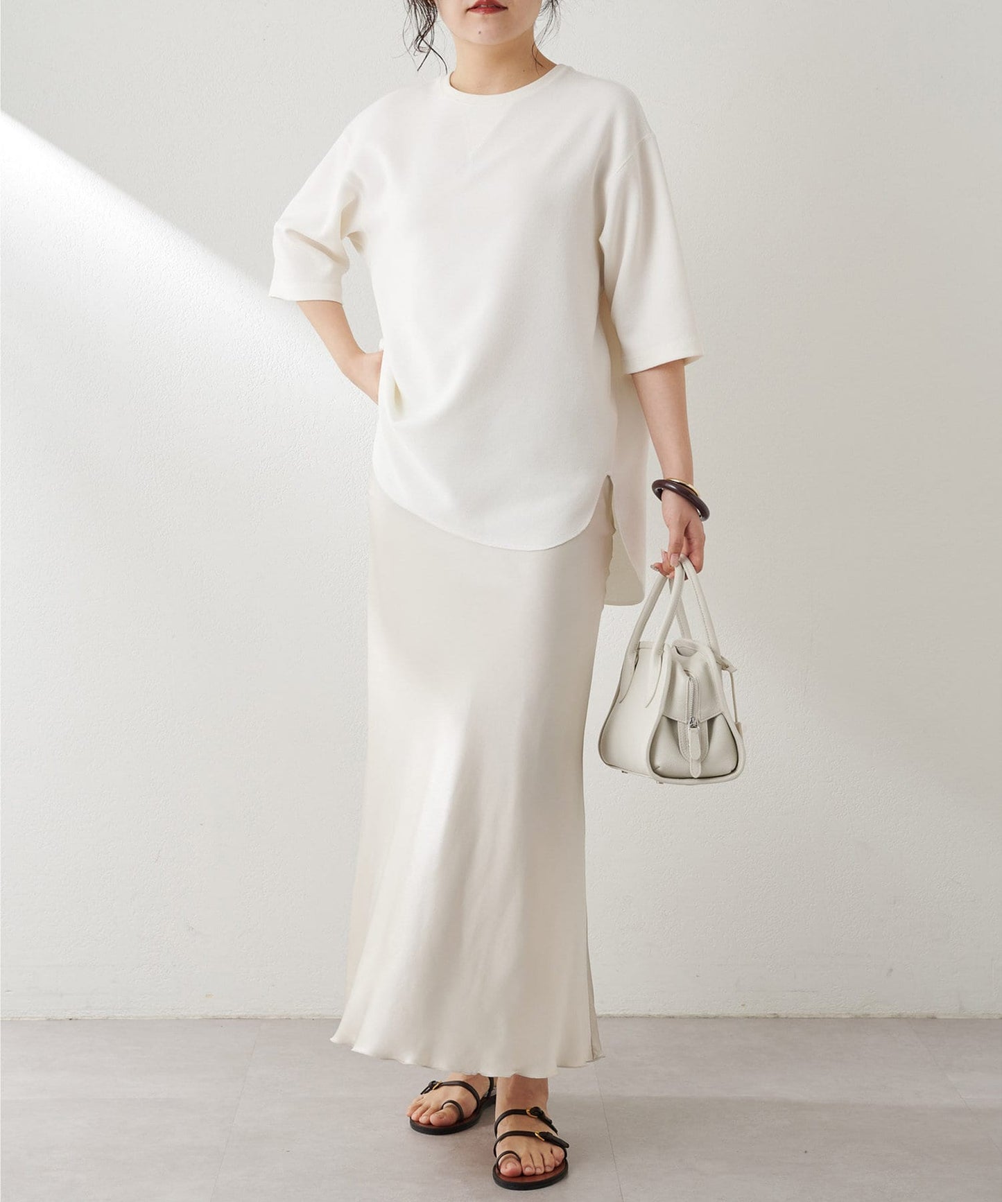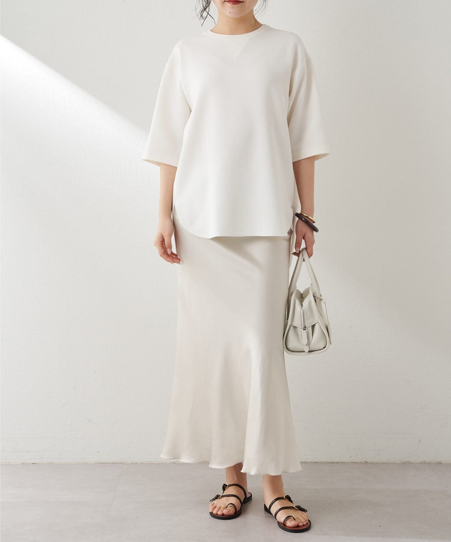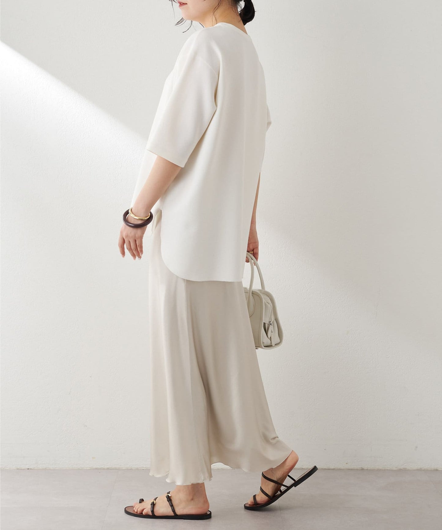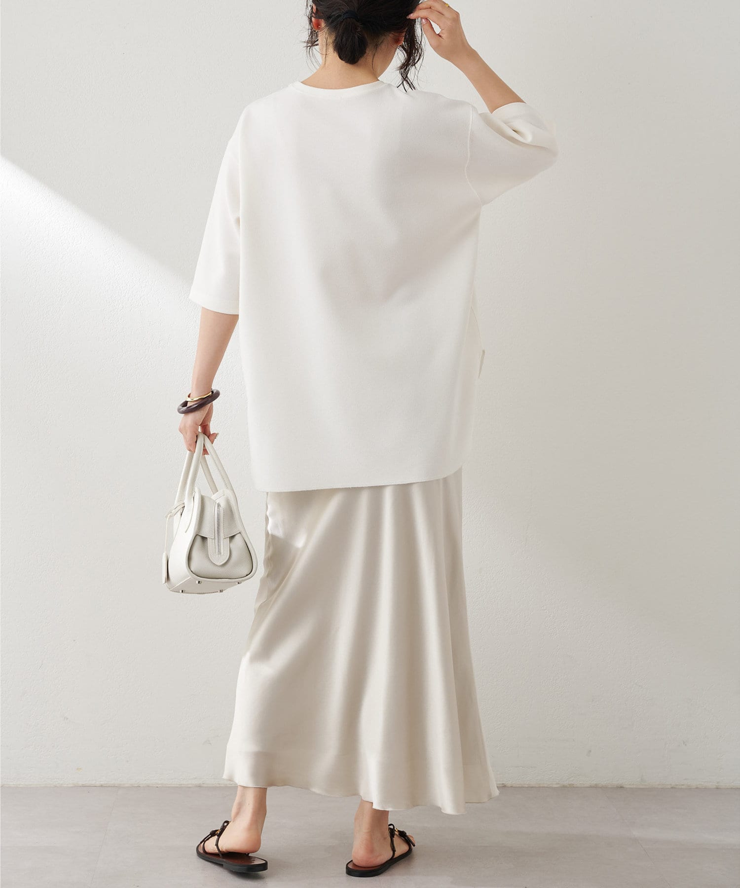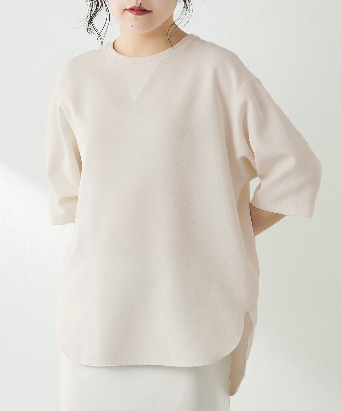 寬鬆舒適的廓形帶來微妙的不同。設計可隱藏肘部。根據下裝的不同,可享受內穿或外穿的樂趣。抗皺、洗後快乾的百搭上衣。一定能發揮積極作用!