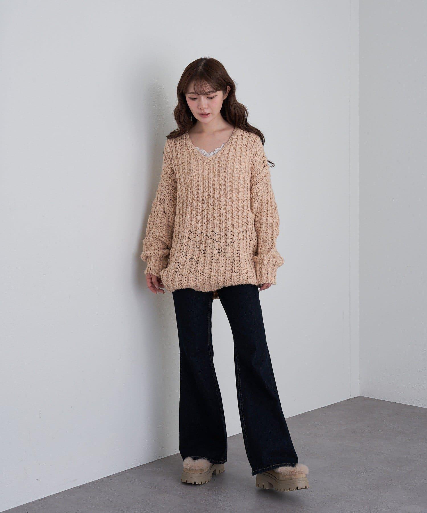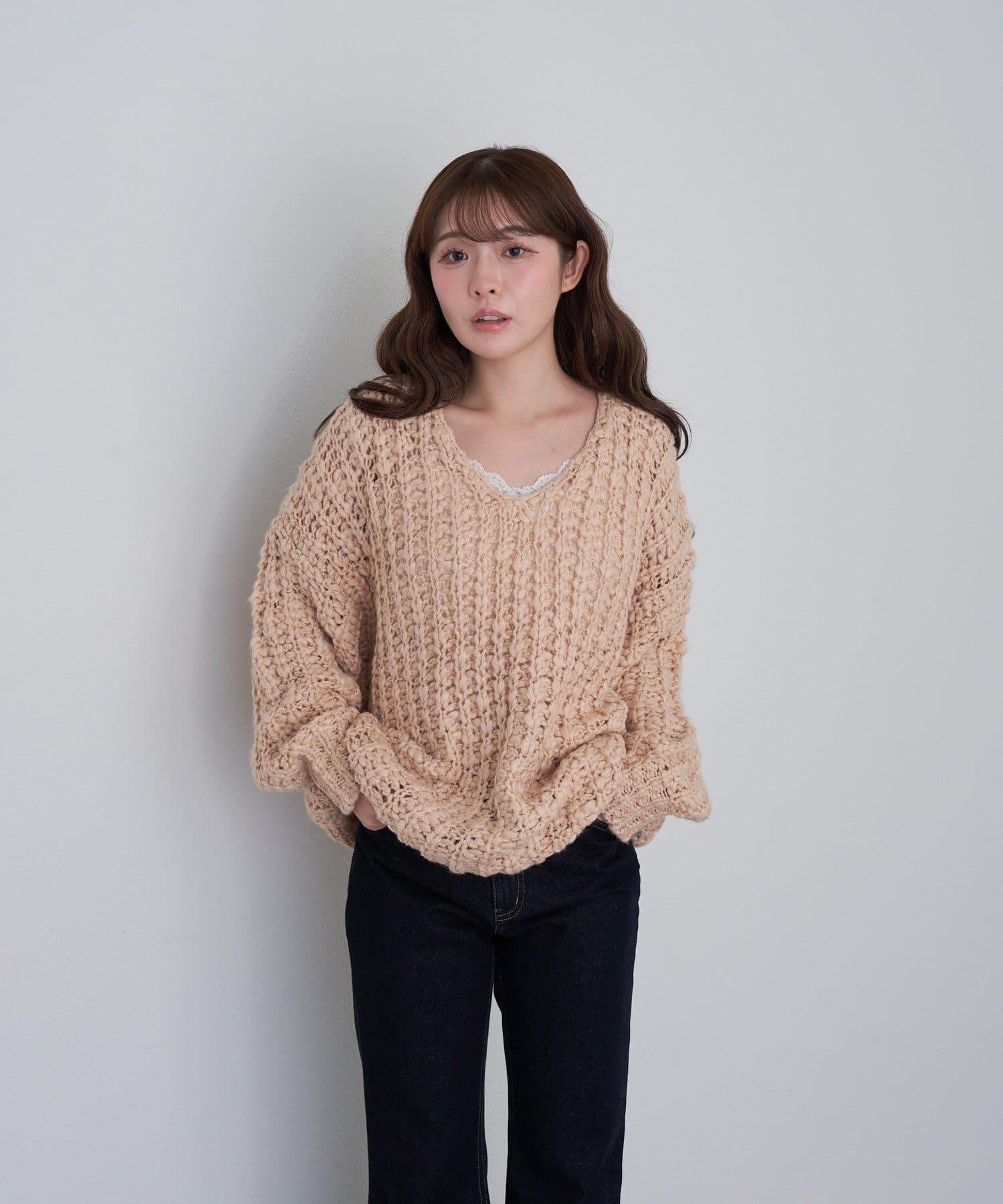 針織衫採用厚實的面料,但編織粗糙,因此根據內層的不同可以穿很長時間。