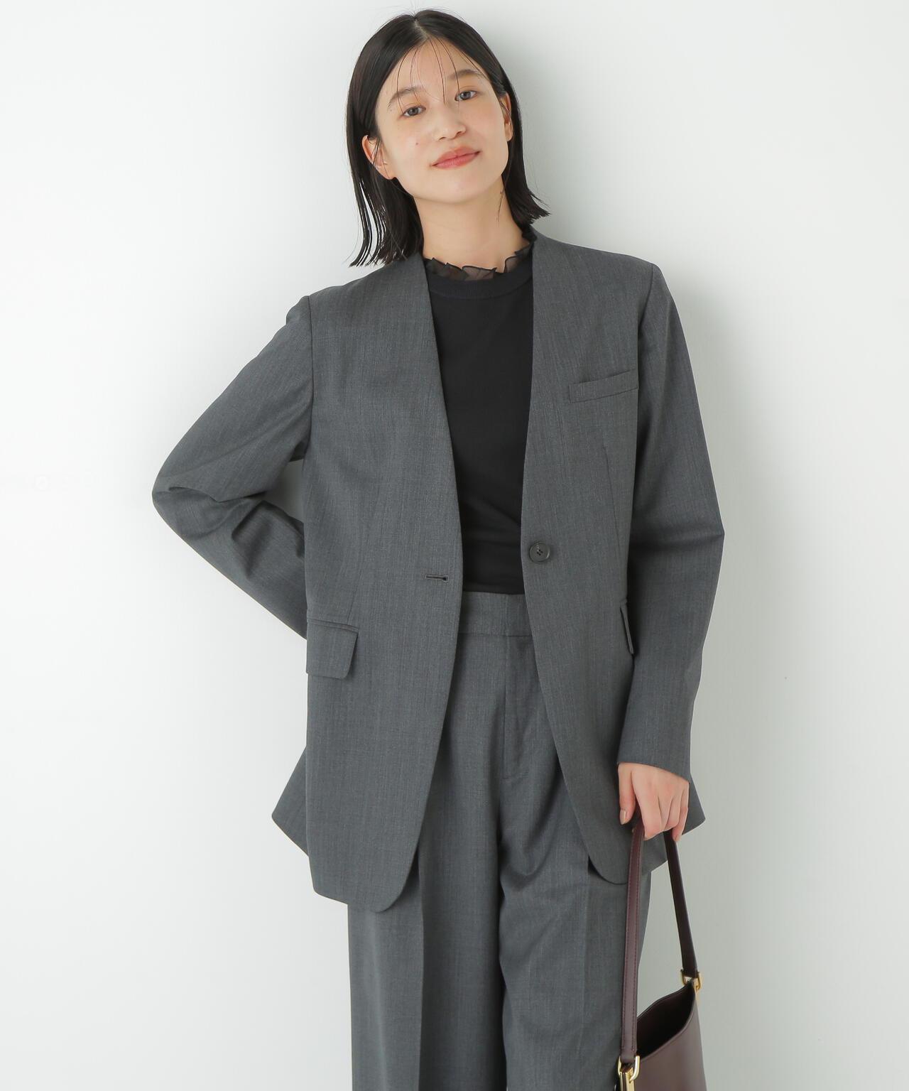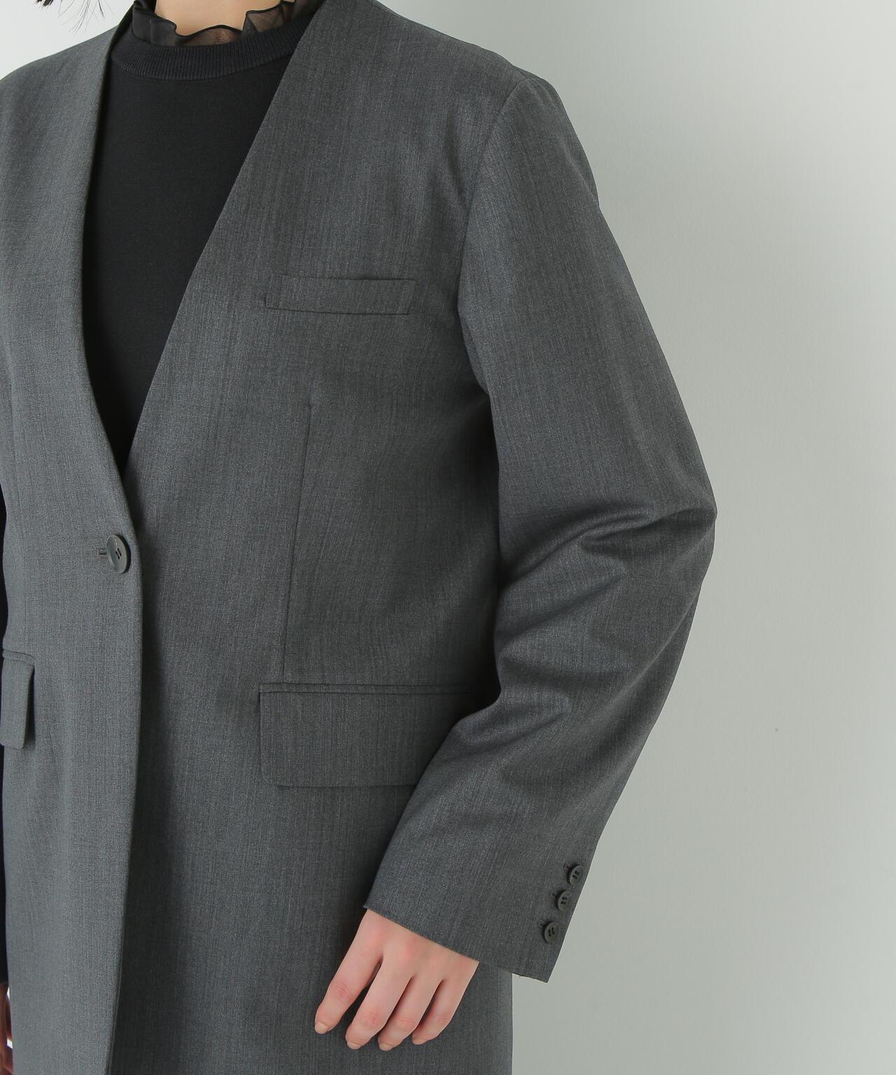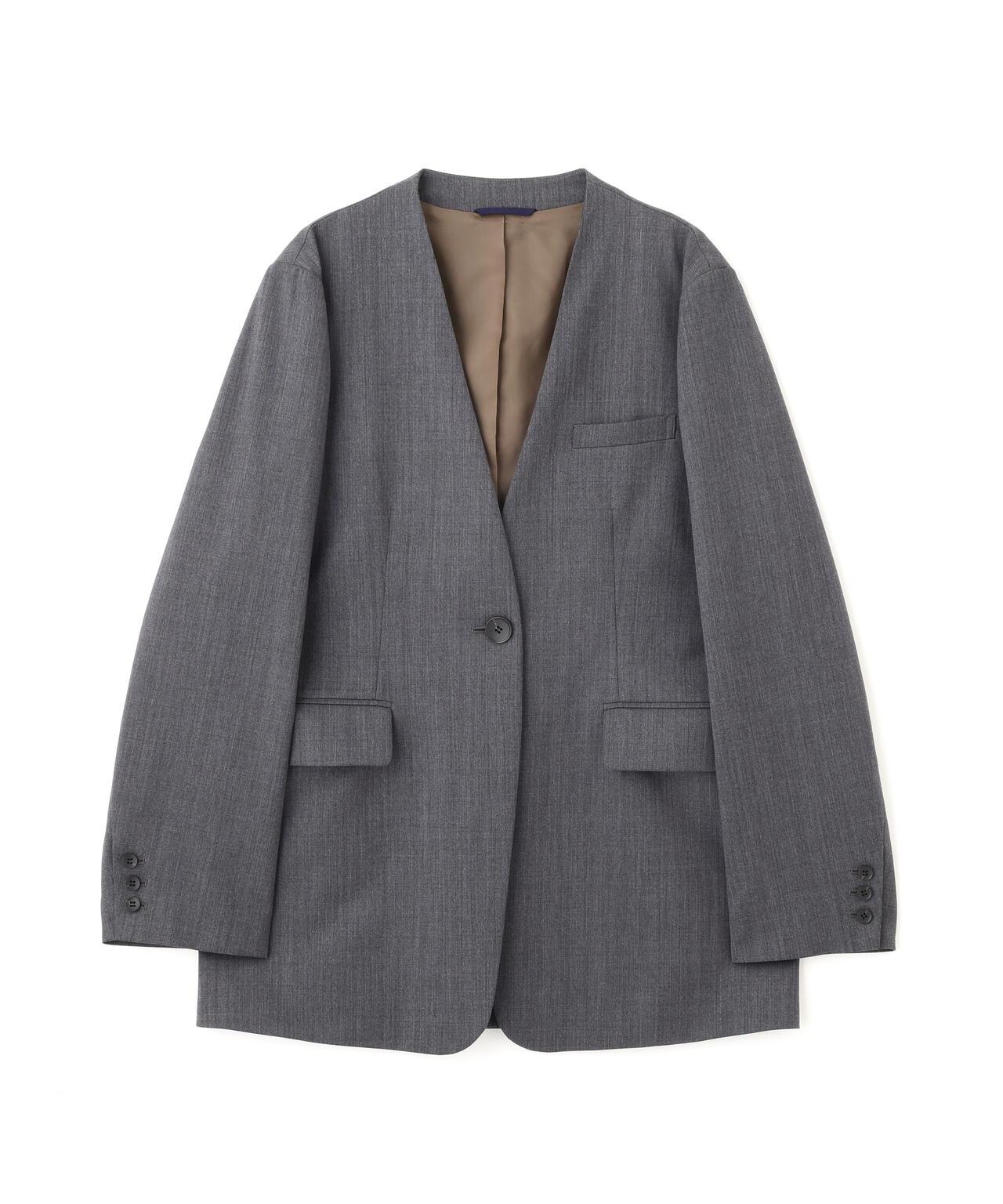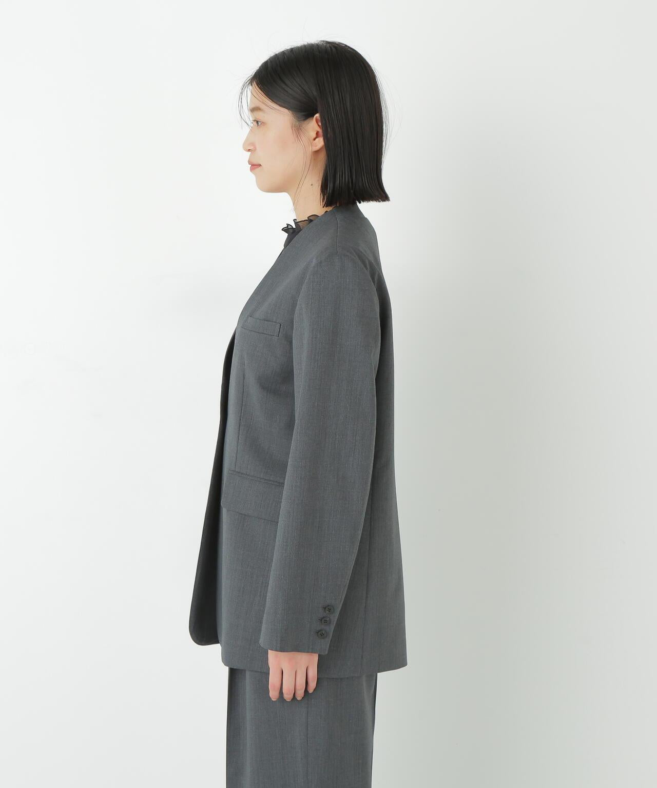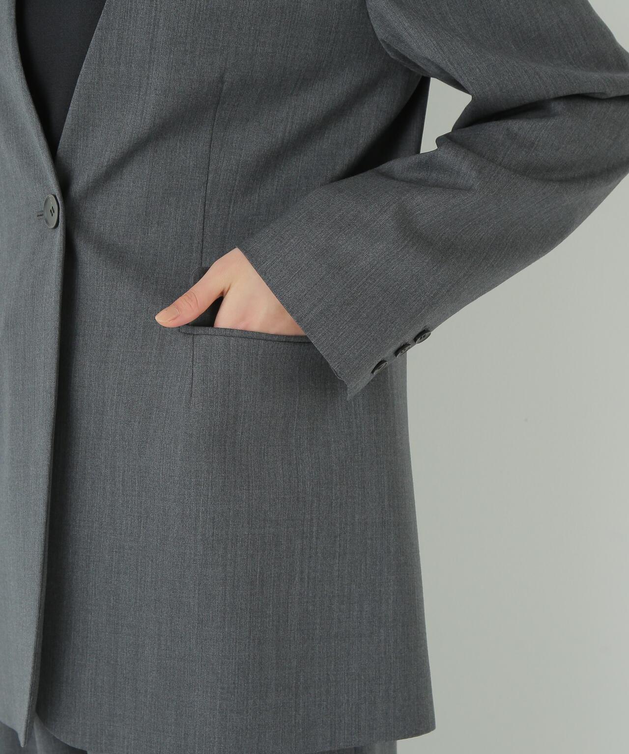 成人無領外套,帥氣十足 [設計要點] 簡單的 V 領無領外套。前襟設計簡潔,只有一顆紐扣。夾克是一款剪裁合體的夾克,袖子襯裡有條紋,內有口袋。夾克採用羊毛、彈力紗和回收聚酯紗混紡製成,具有極佳的形狀恢復性能,能很好地貼合身體。這款夾克也適合在秋冬季節搭配長褲穿著。建議搭配同樣材質的寬鬆長褲。