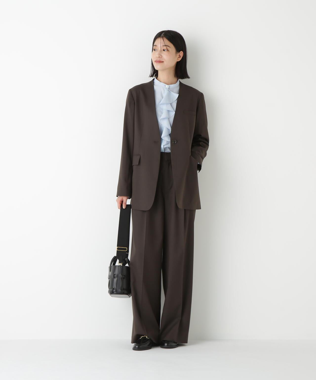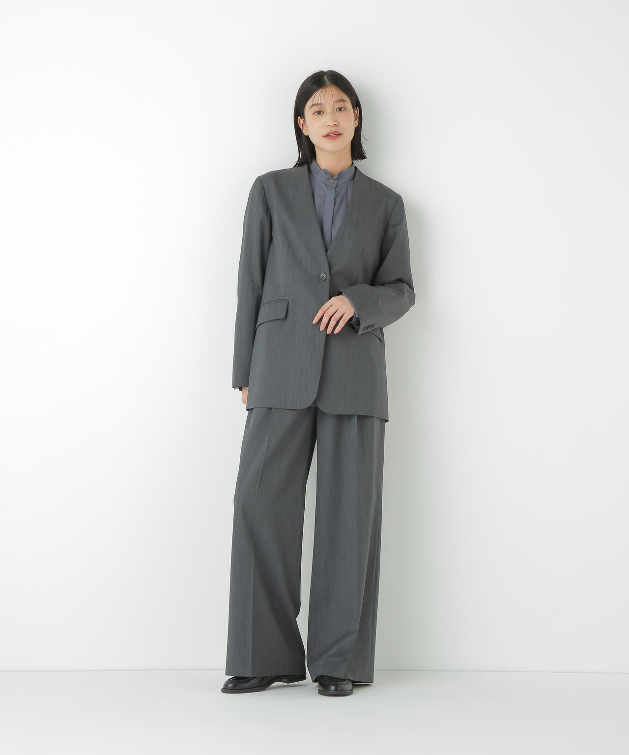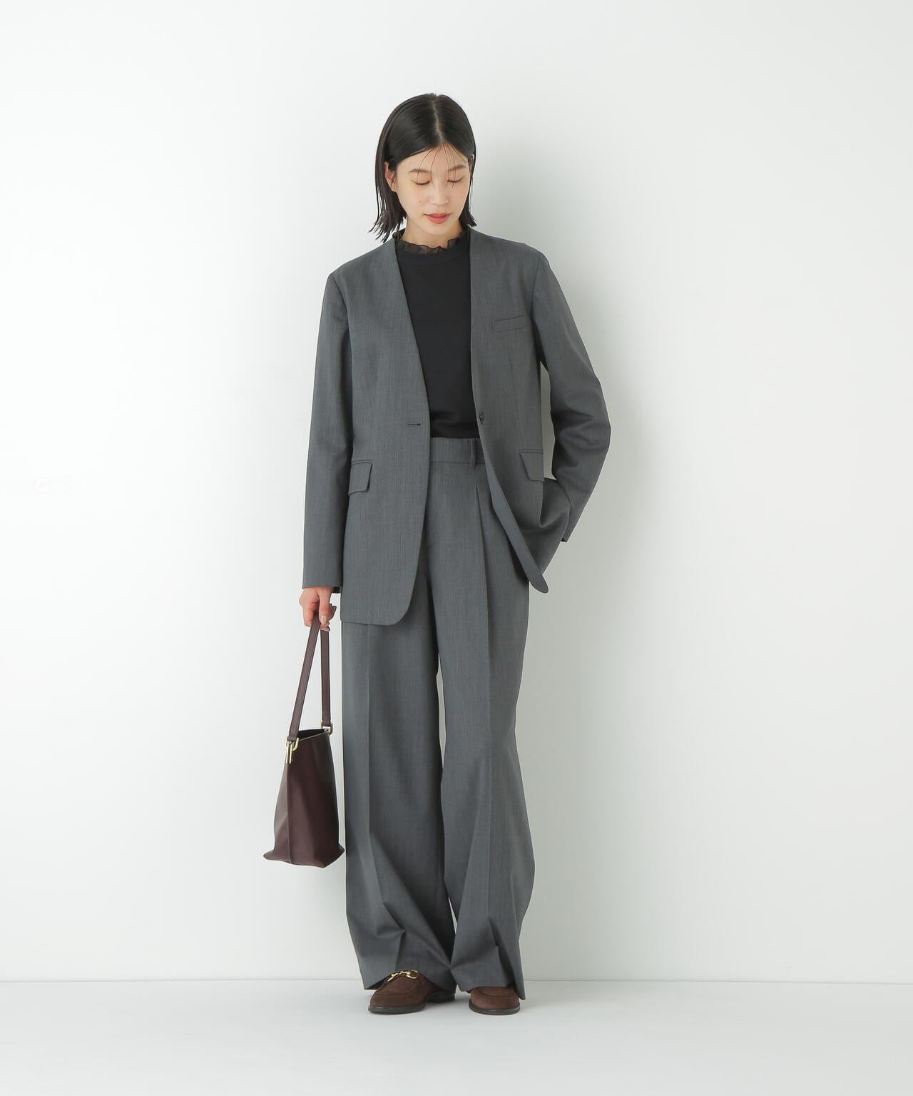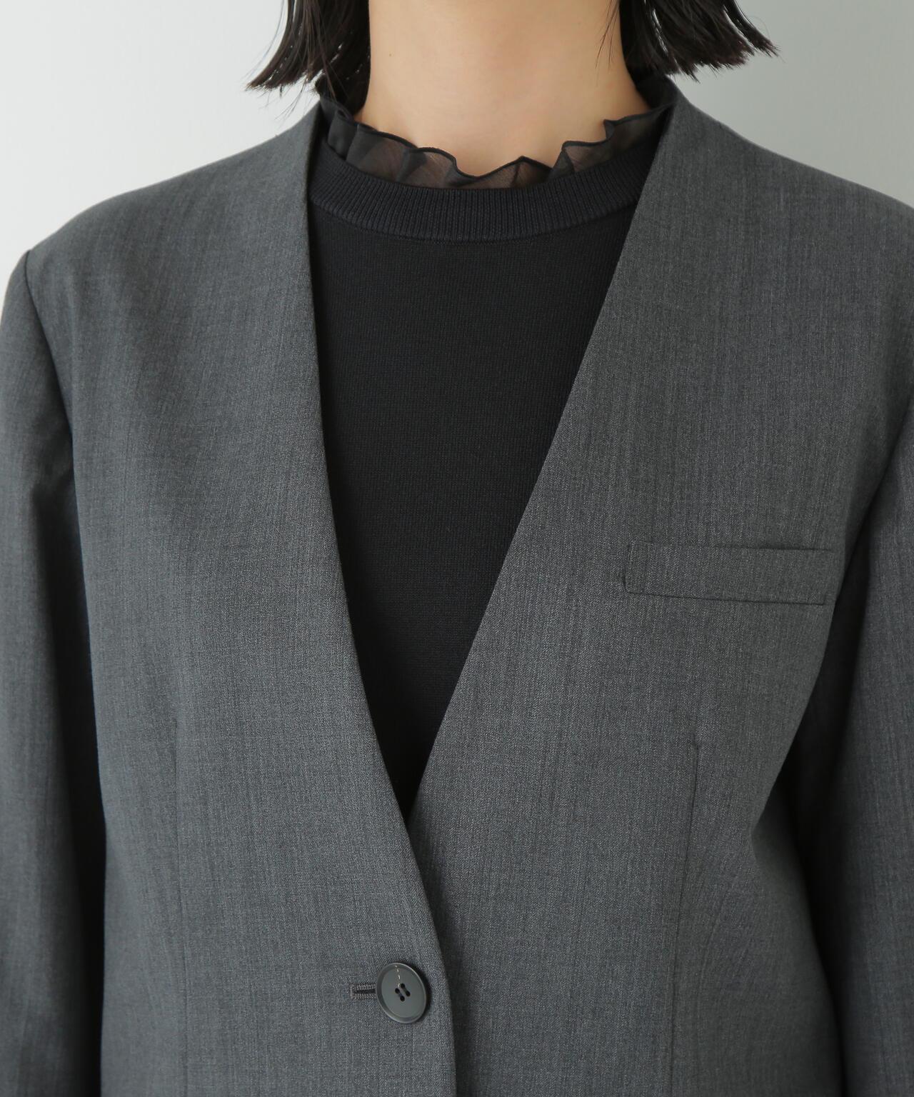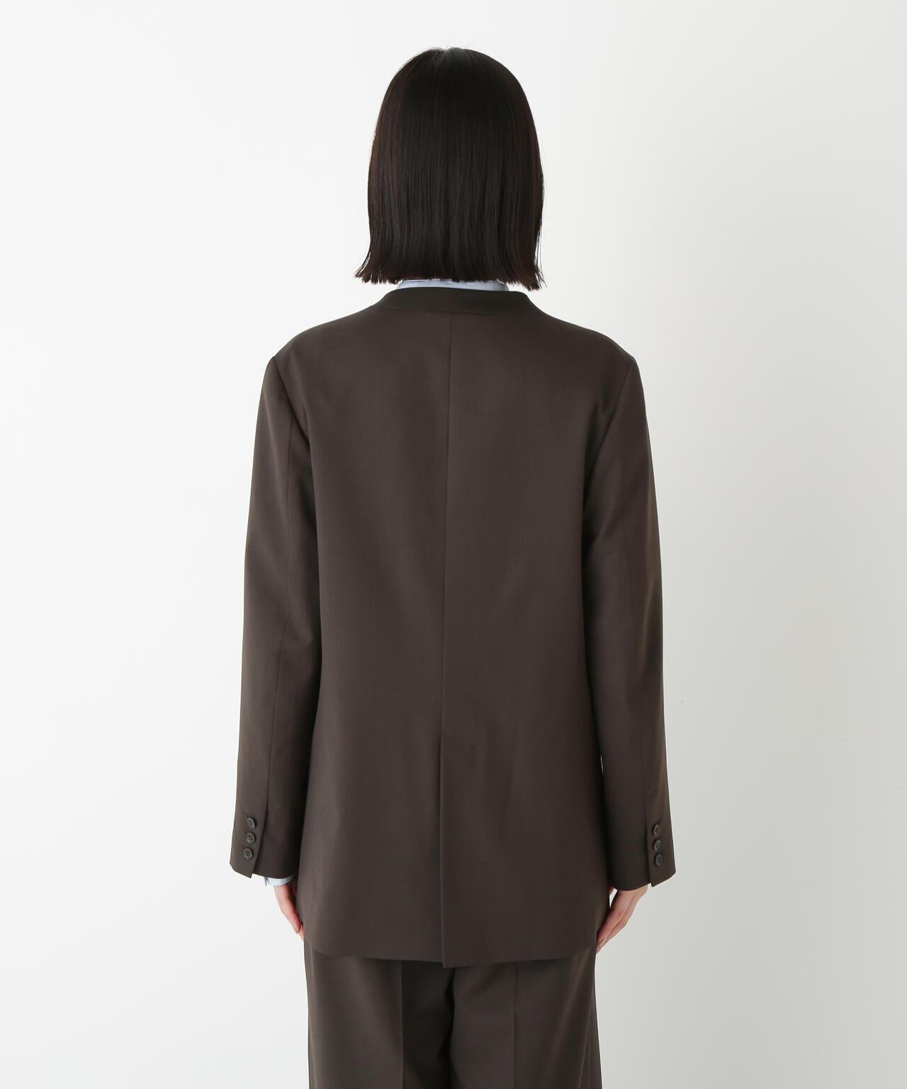 成人無領外套,帥氣十足 [設計要點] 簡單的 V 領無領外套。前襟設計簡潔,只有一顆紐扣。夾克是一款剪裁合體的夾克,袖子襯裡有條紋,內有口袋。夾克採用羊毛、彈力紗和回收聚酯紗混紡製成,具有極佳的形狀恢復性能,能很好地貼合身體。這款夾克也適合在秋冬季節搭配長褲穿著。建議搭配同樣材質的寬鬆長褲。