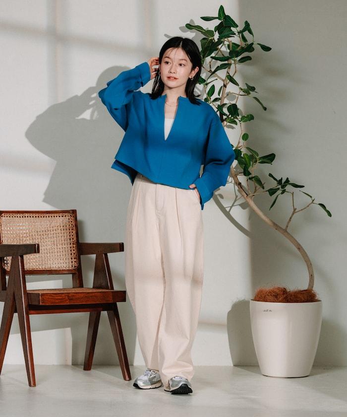 深 V 領設計讓您享受與內搭疊穿的樂趣。