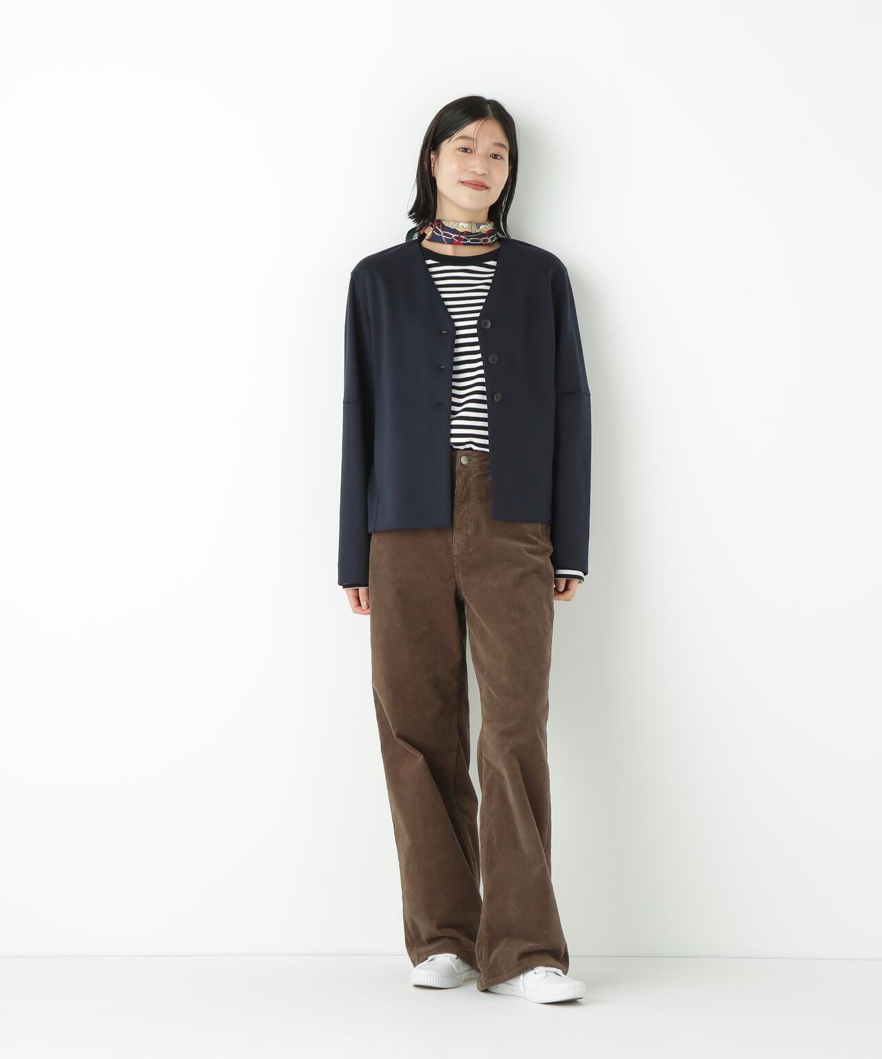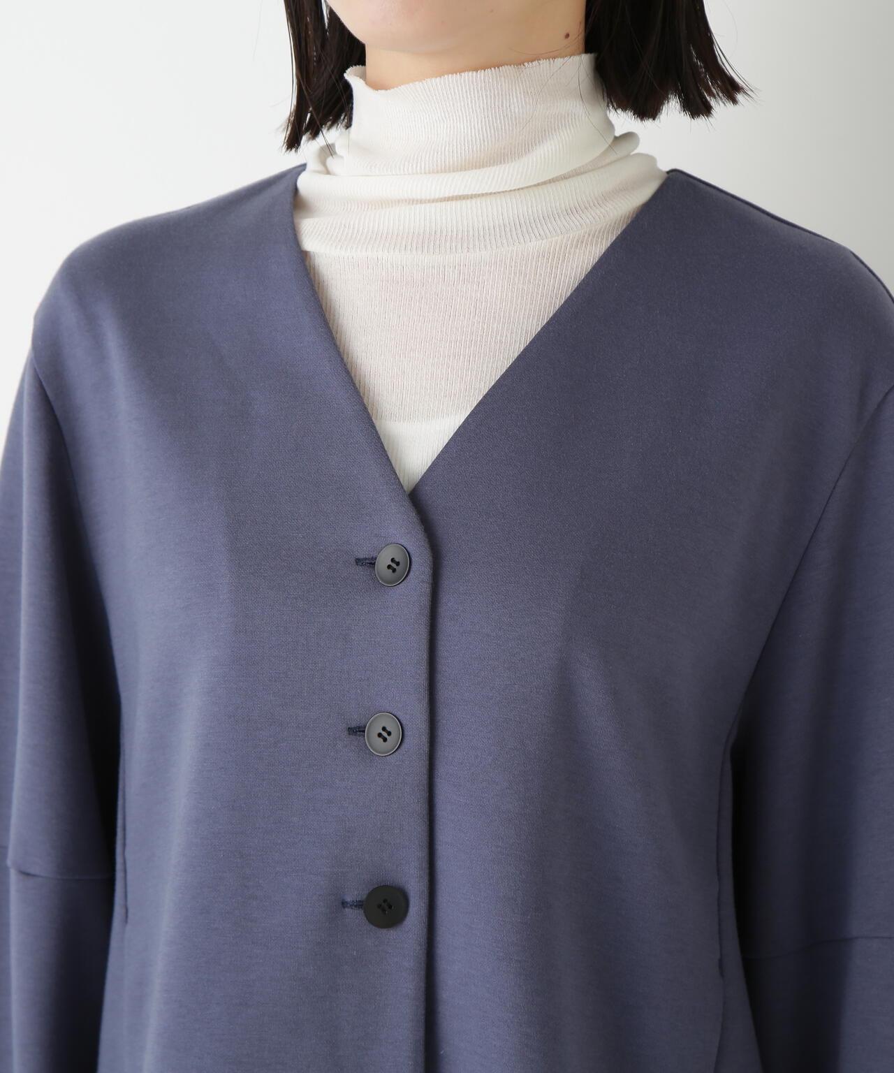 V 領開衫,細膩的外觀 [設計特色] 剪裁縫製的 V 領開衫,搭配細膩的繭型袖。前襟的金屬紐扣也是一大特色。這款開衫採用有機棉和回收聚酯纖維製成,是一種輕薄的紙板面料,具有恰到好處的彈力和豐滿度。推薦搭配:這件開衫長度適中,可搭配各種廓形的下裝。簡潔的 V 領設計讓您可以根據自己的內搭來安排脖子上的印花。作為一款輕盈的編織物,它是一款四季變換的百搭單品。