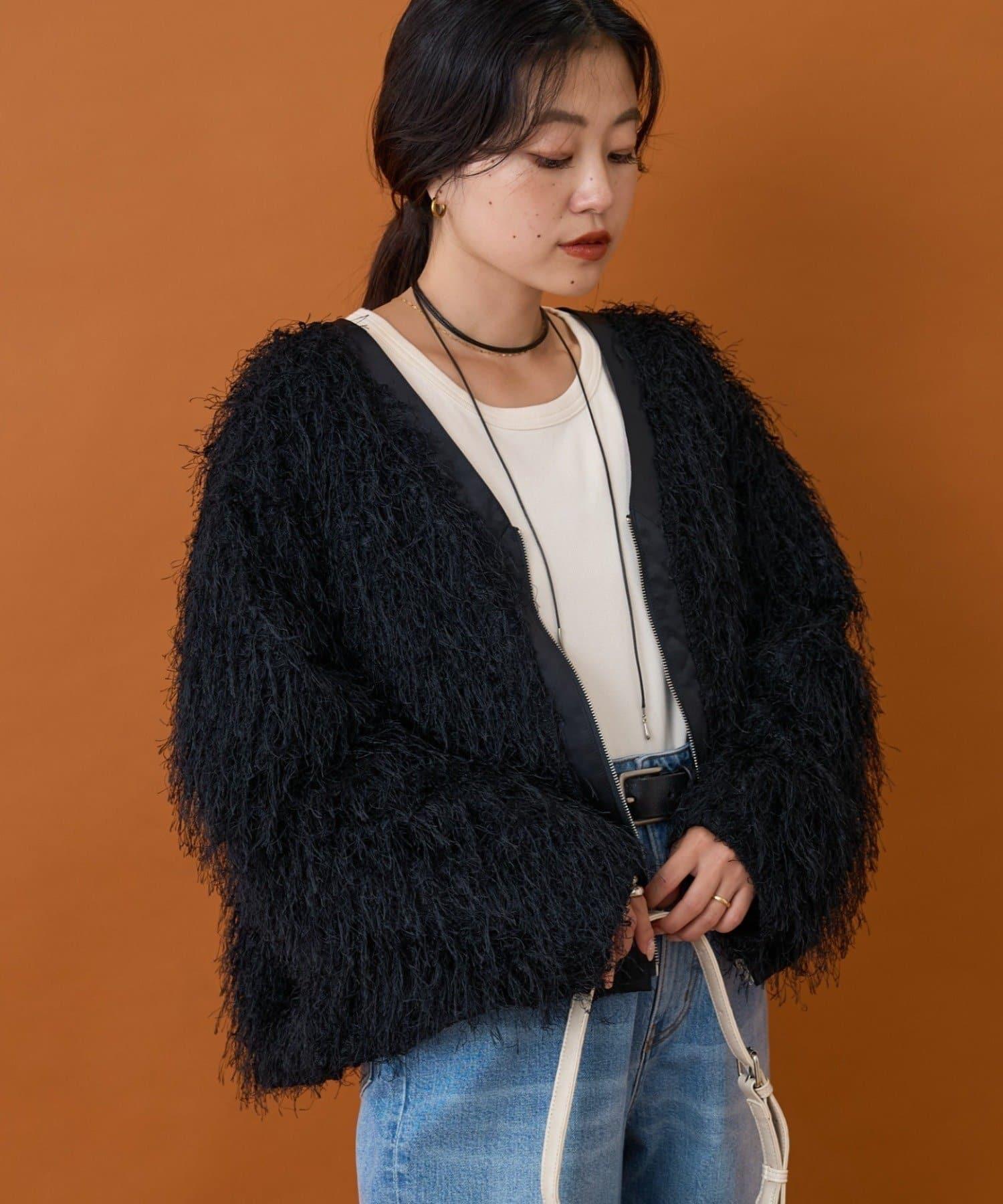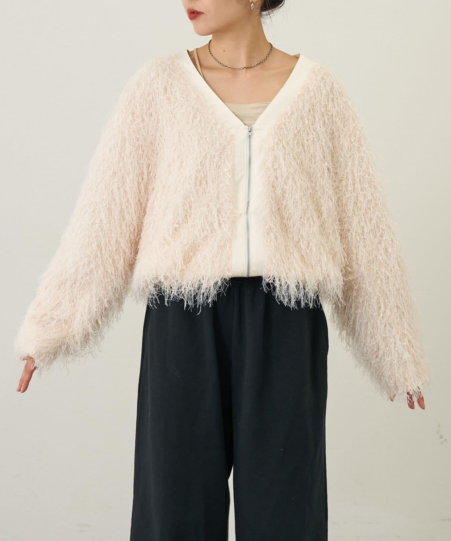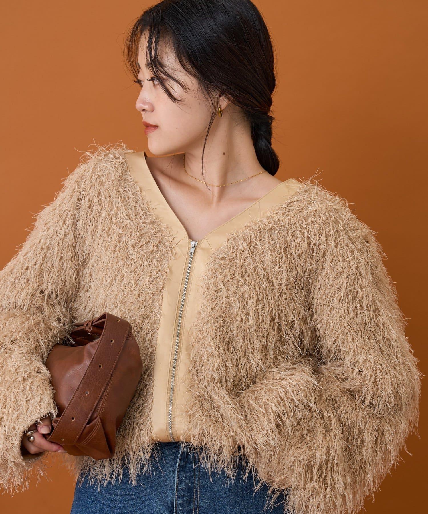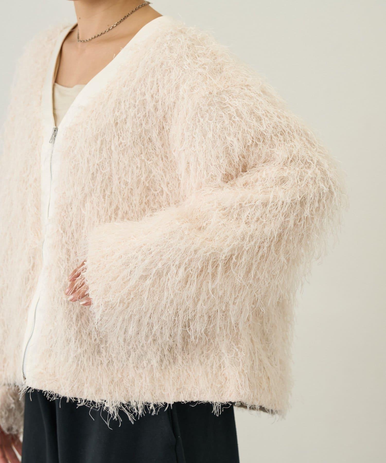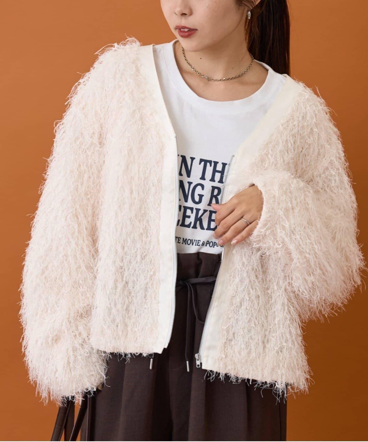 拉鍊夾克,蓬鬆的長毛羽毛讓人眼前一亮!