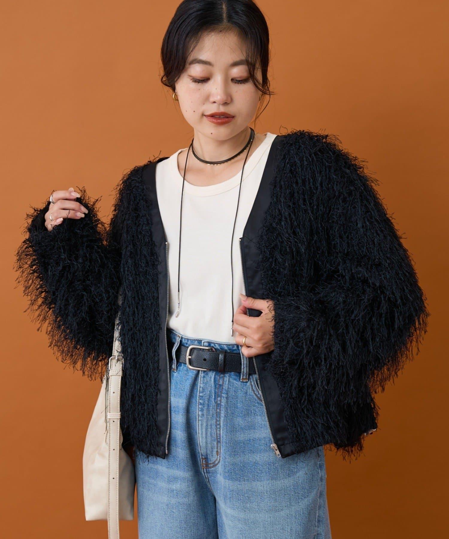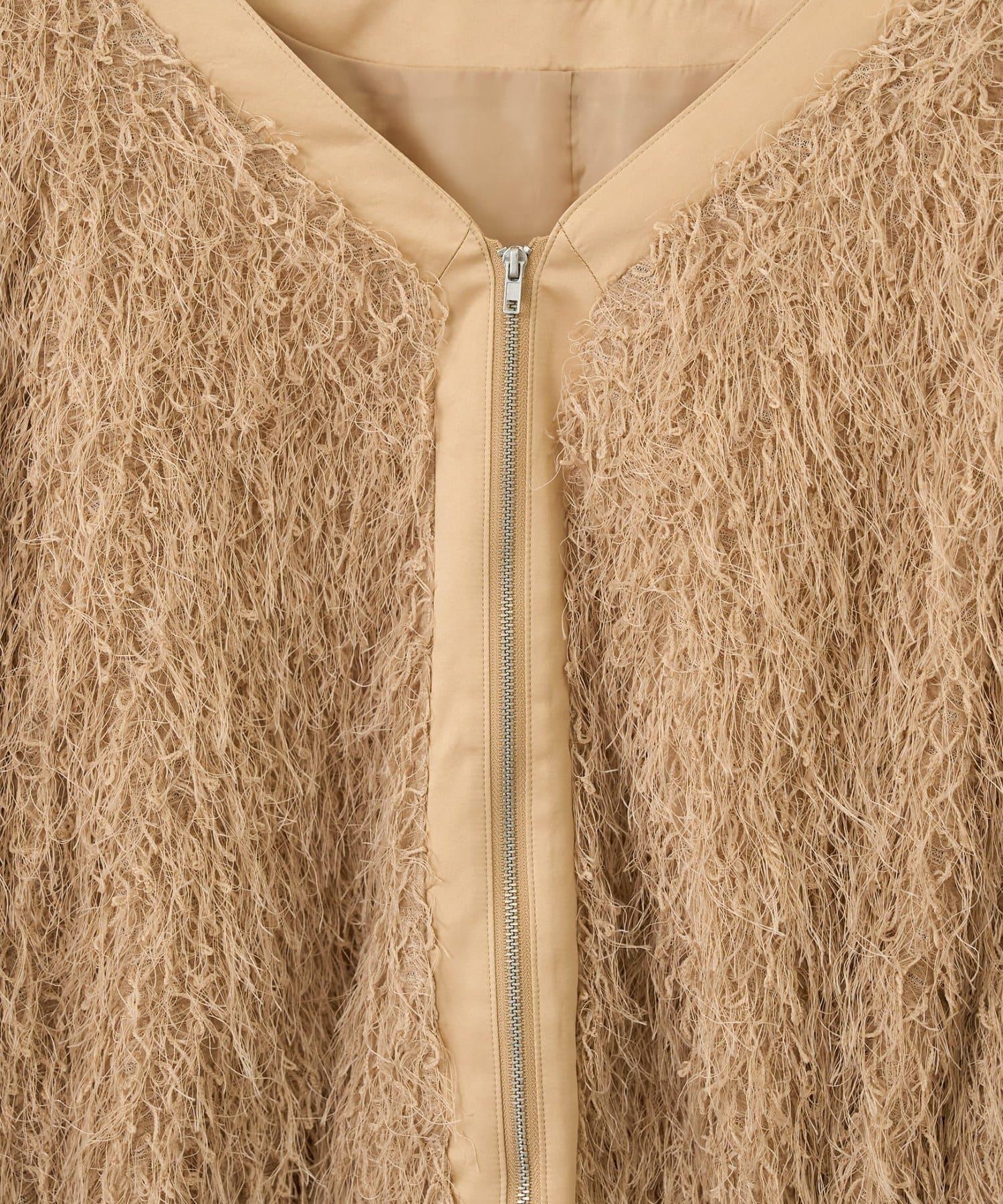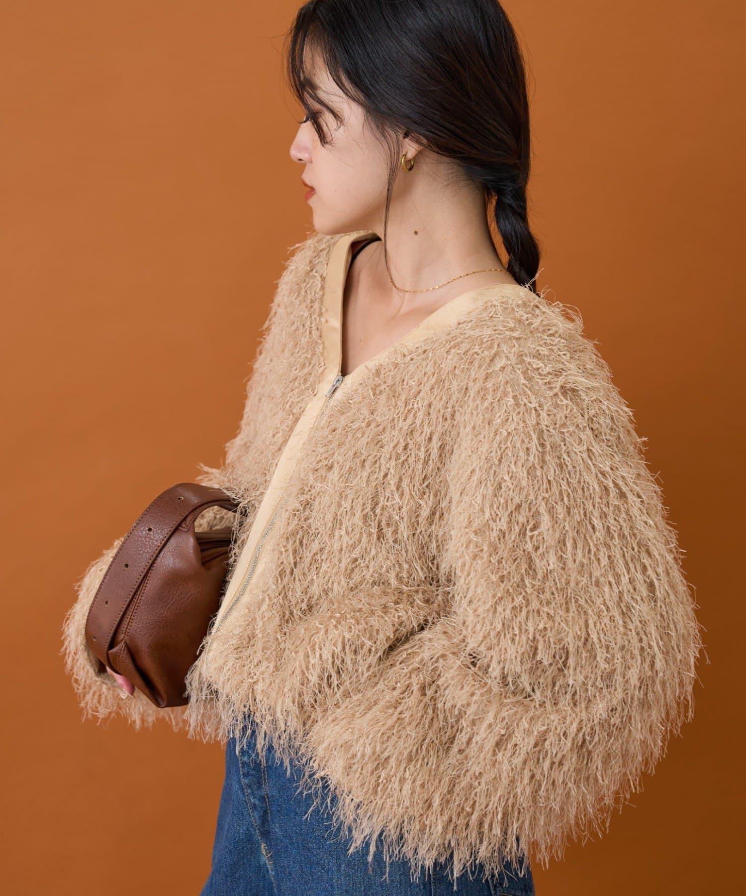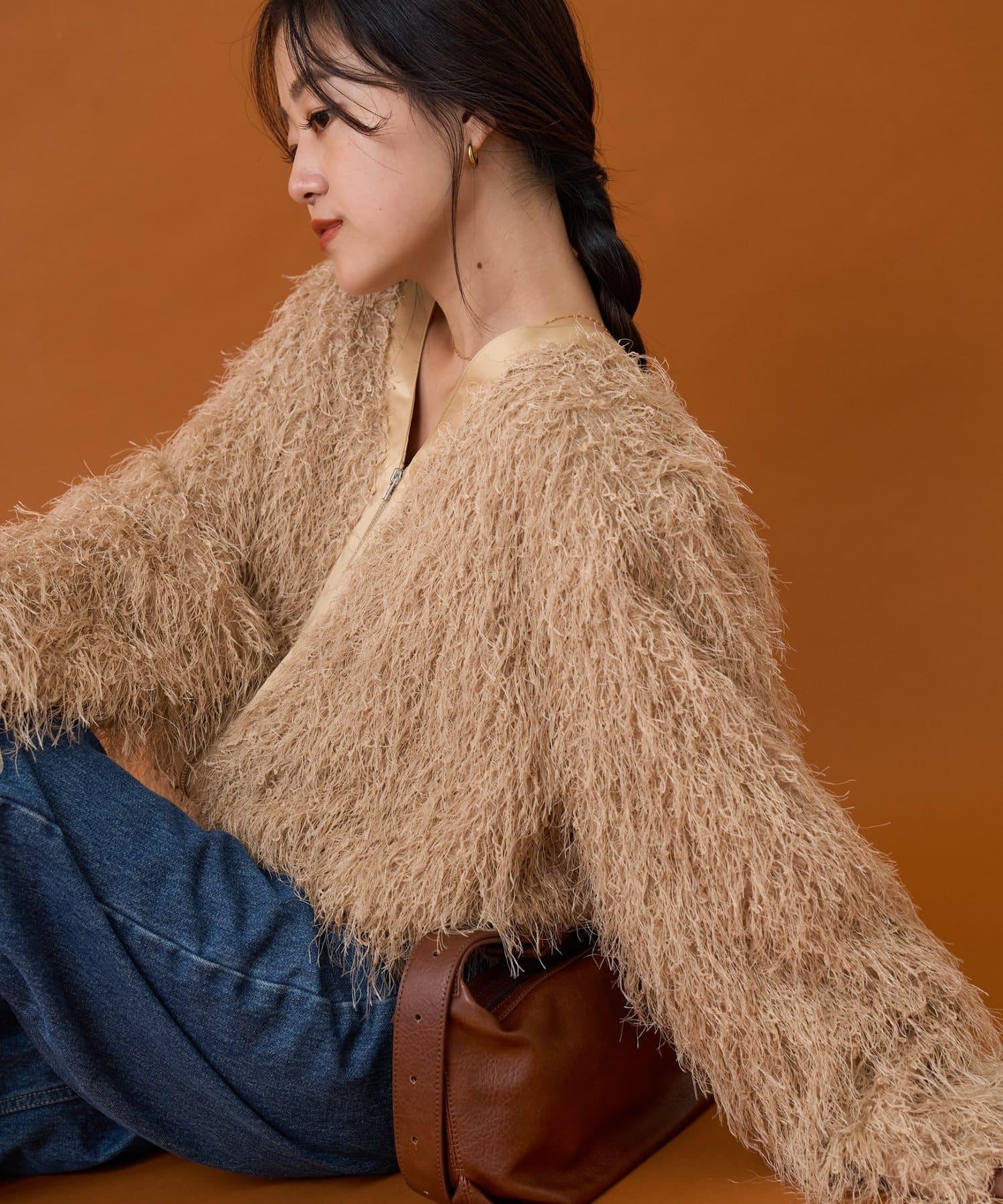 拉鍊夾克,蓬鬆的長毛羽毛讓人眼前一亮!