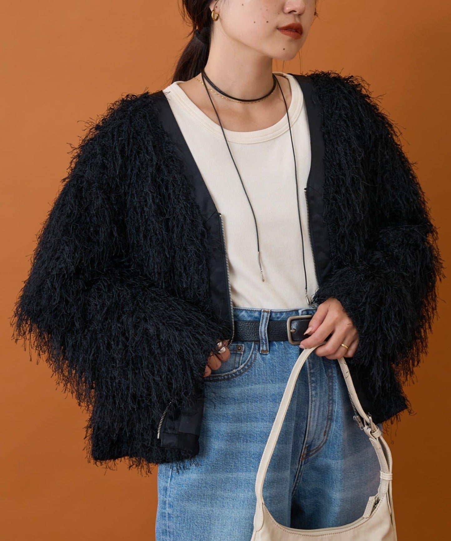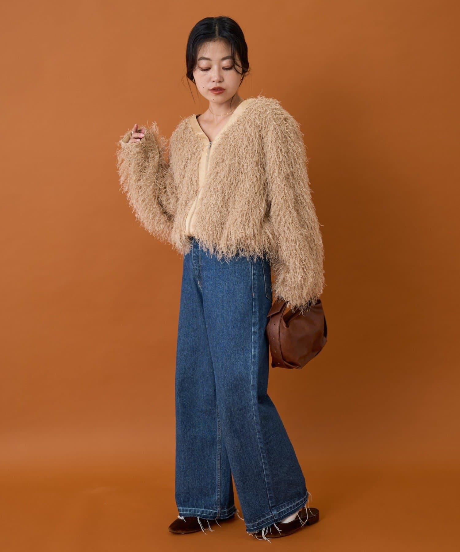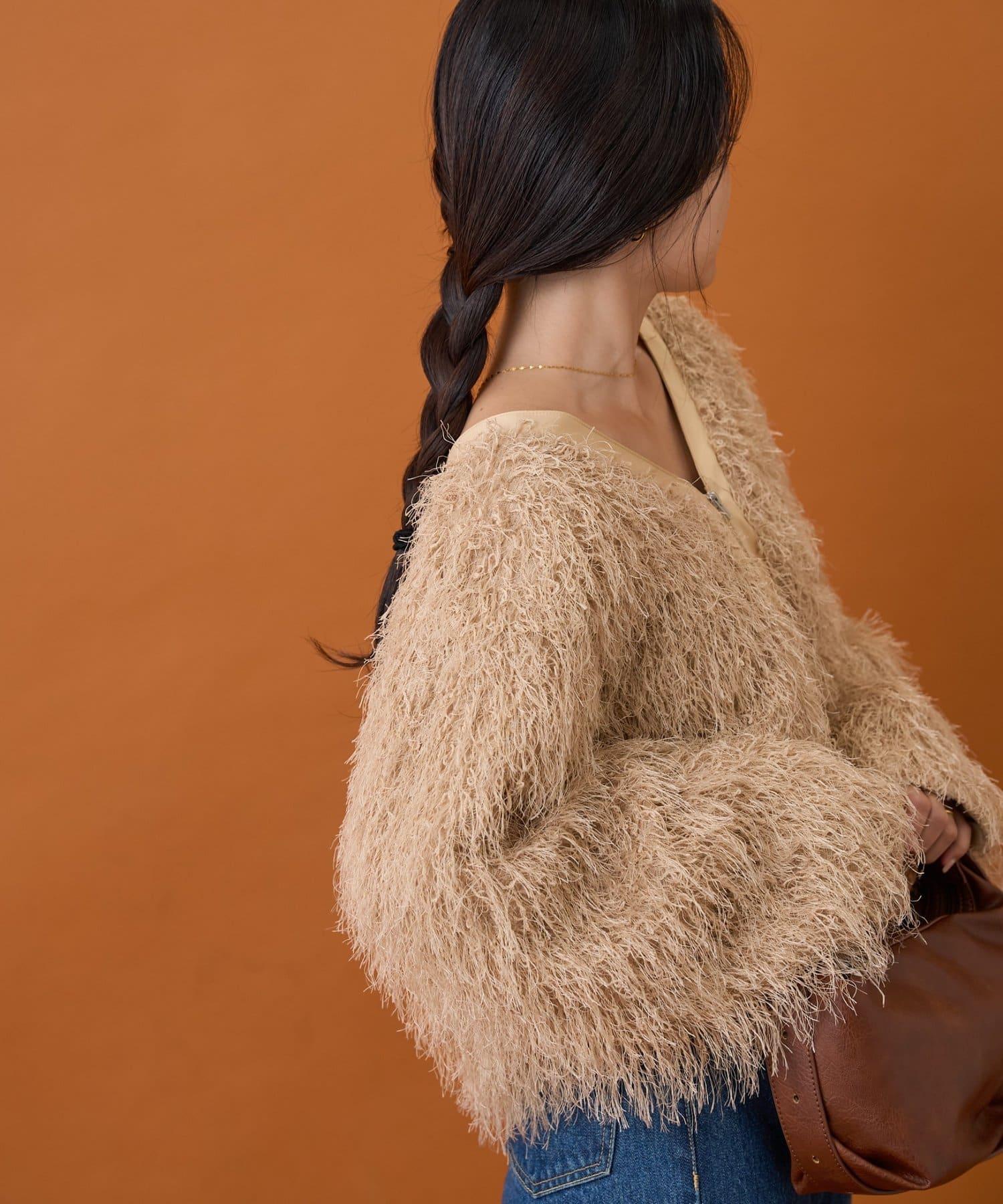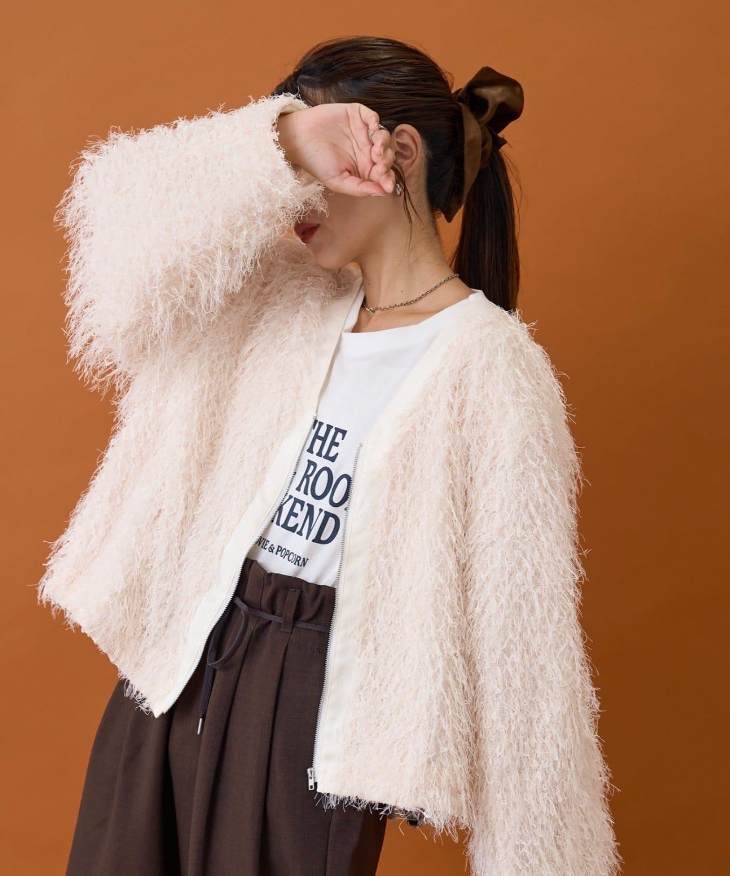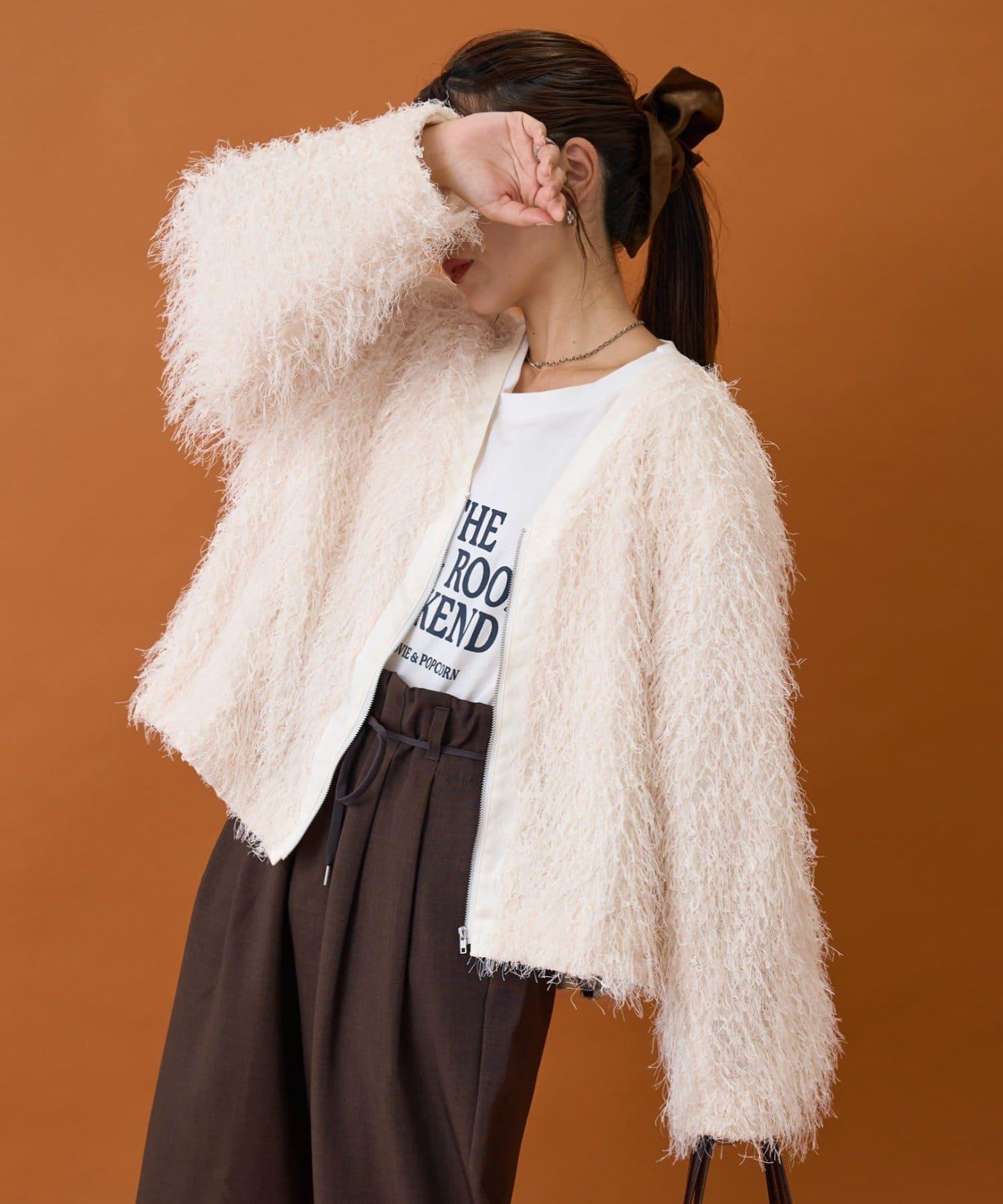 拉鍊夾克,蓬鬆的長毛羽毛讓人眼前一亮!