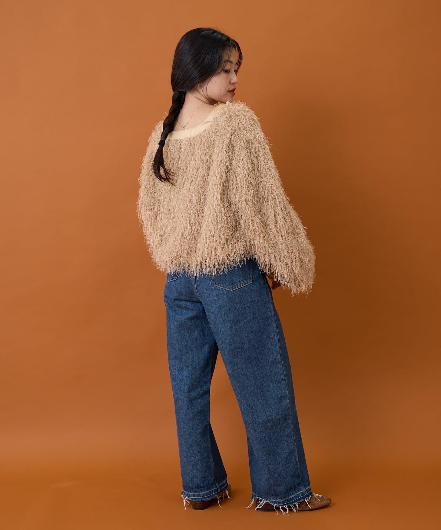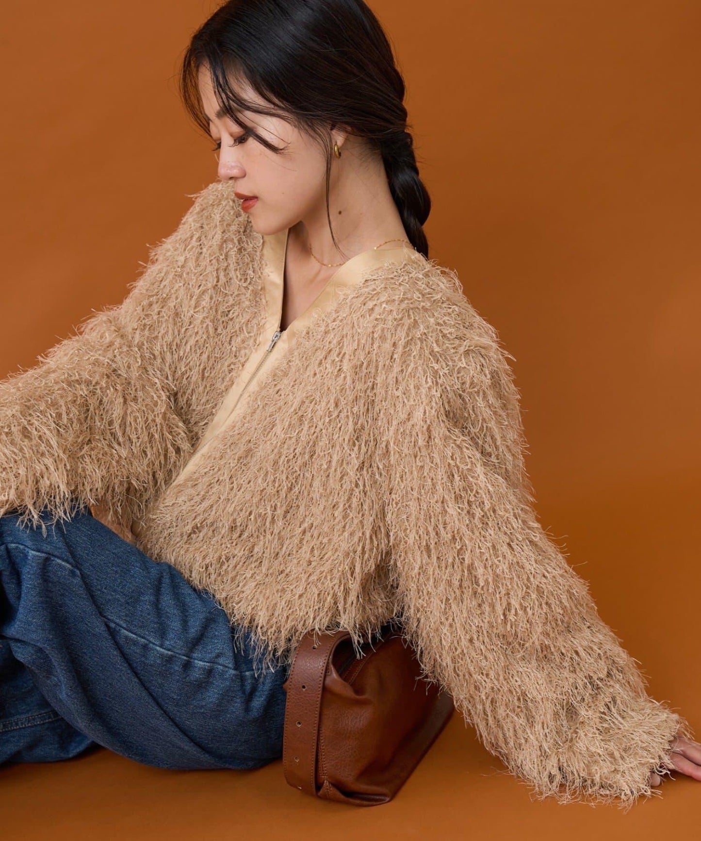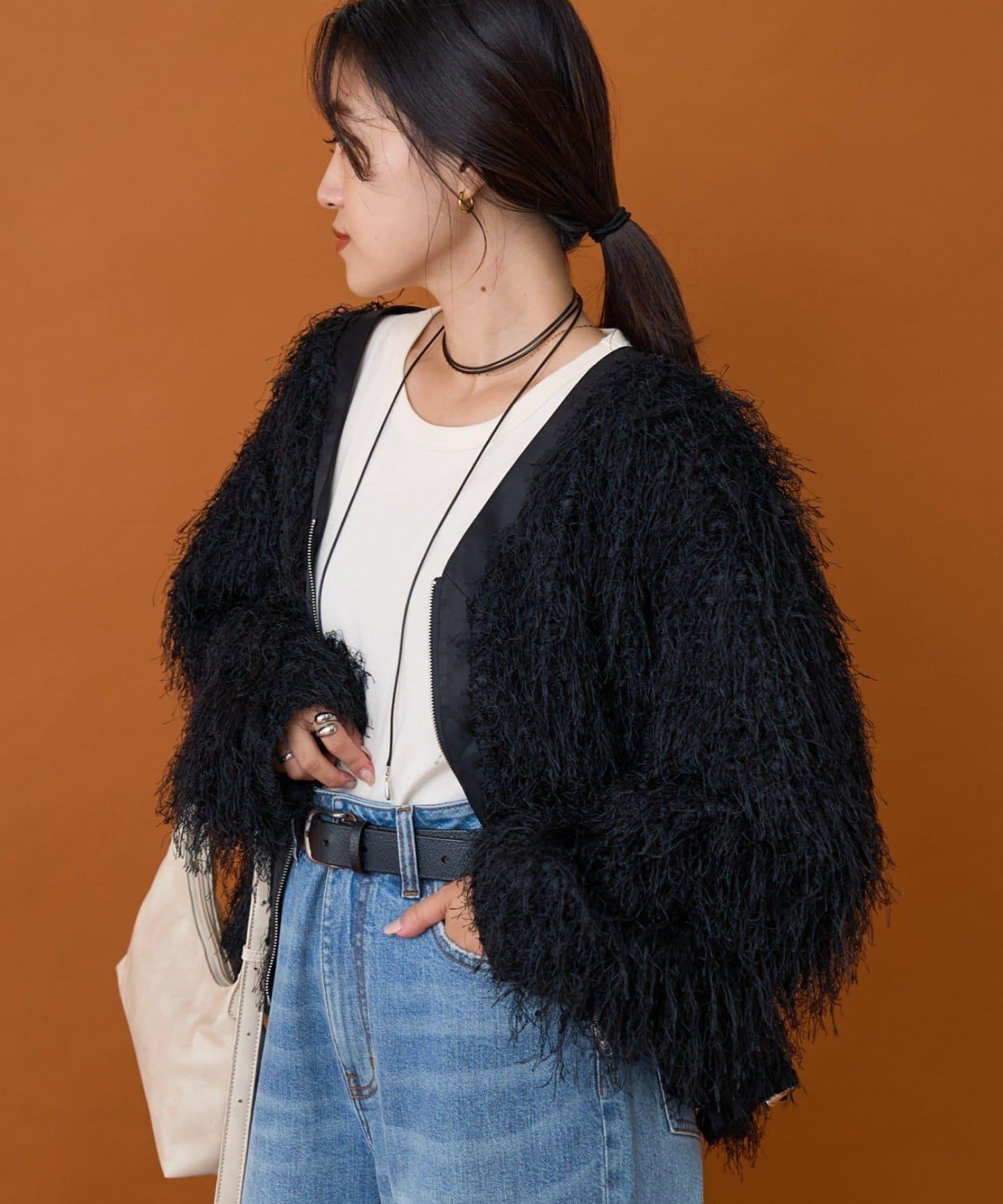 只要穿上它,你就可以出發了!時髦的長毛絨面料會讓你立刻擁有時髦的造型。