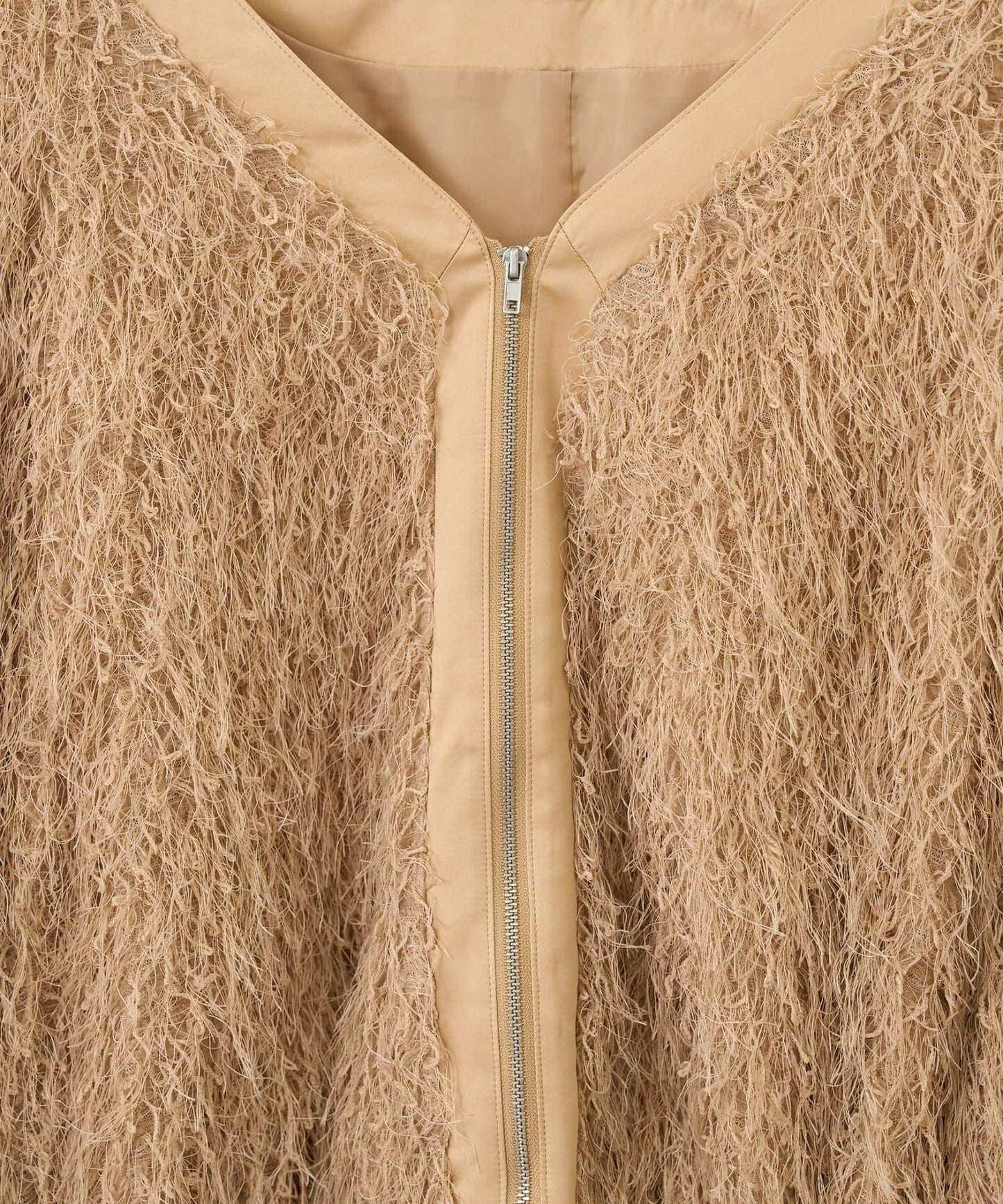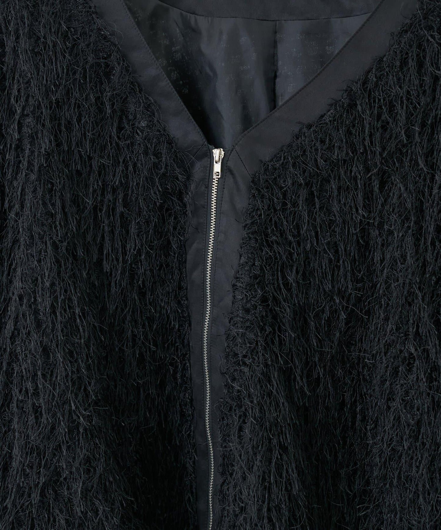 V領羽毛拉鍊夾克
