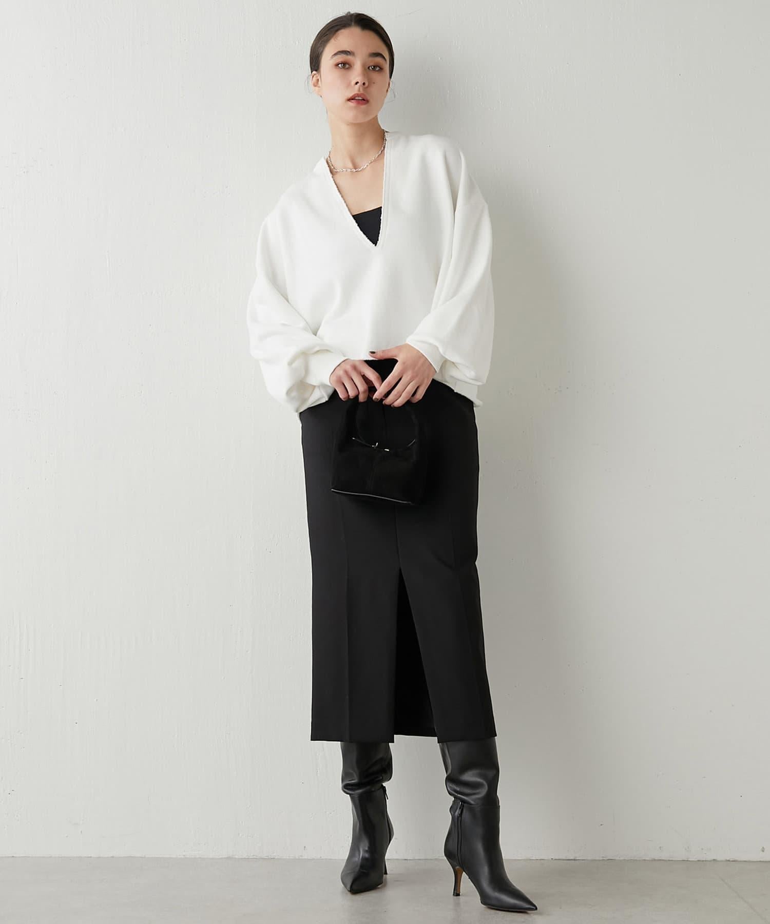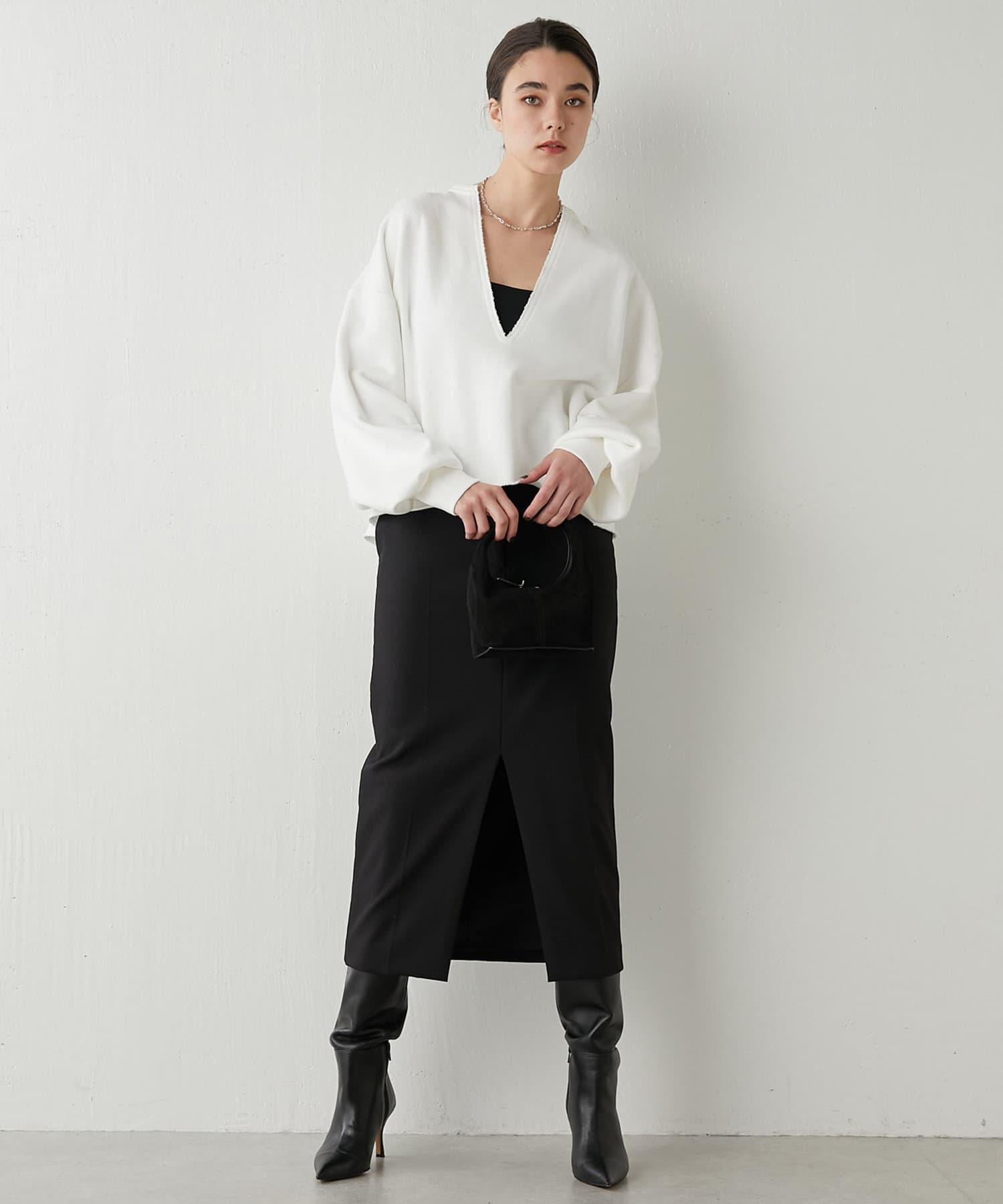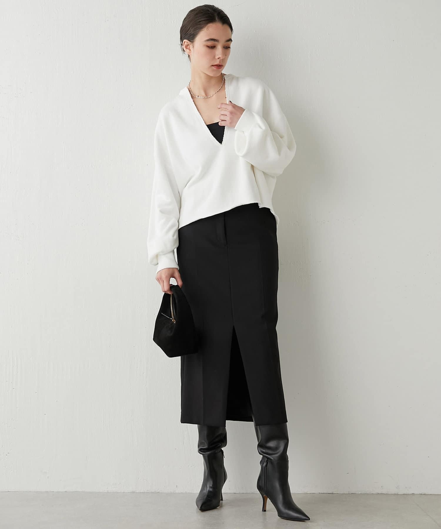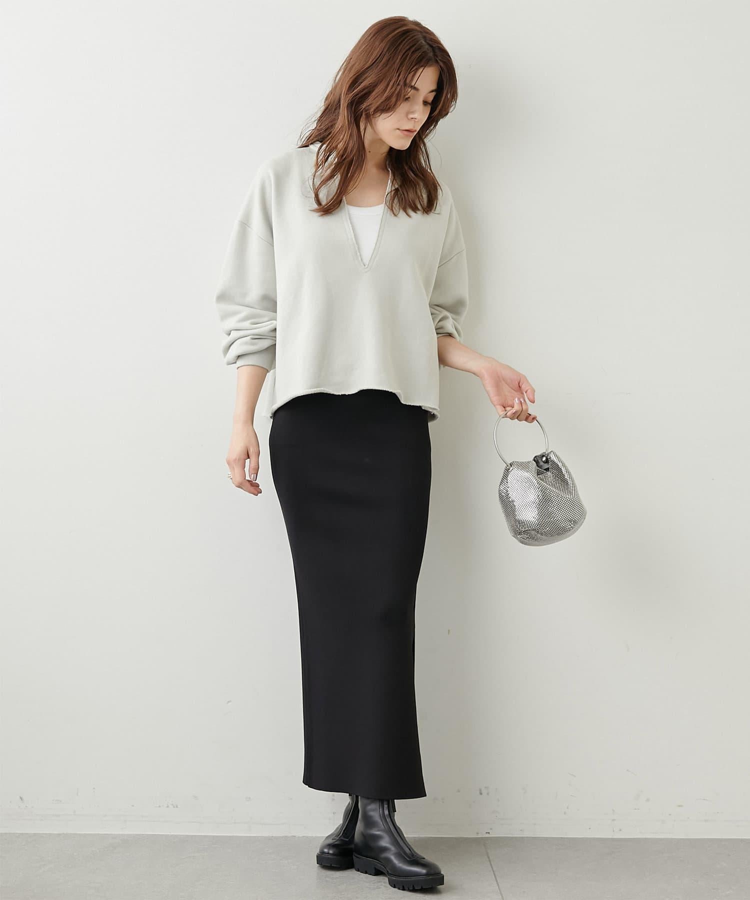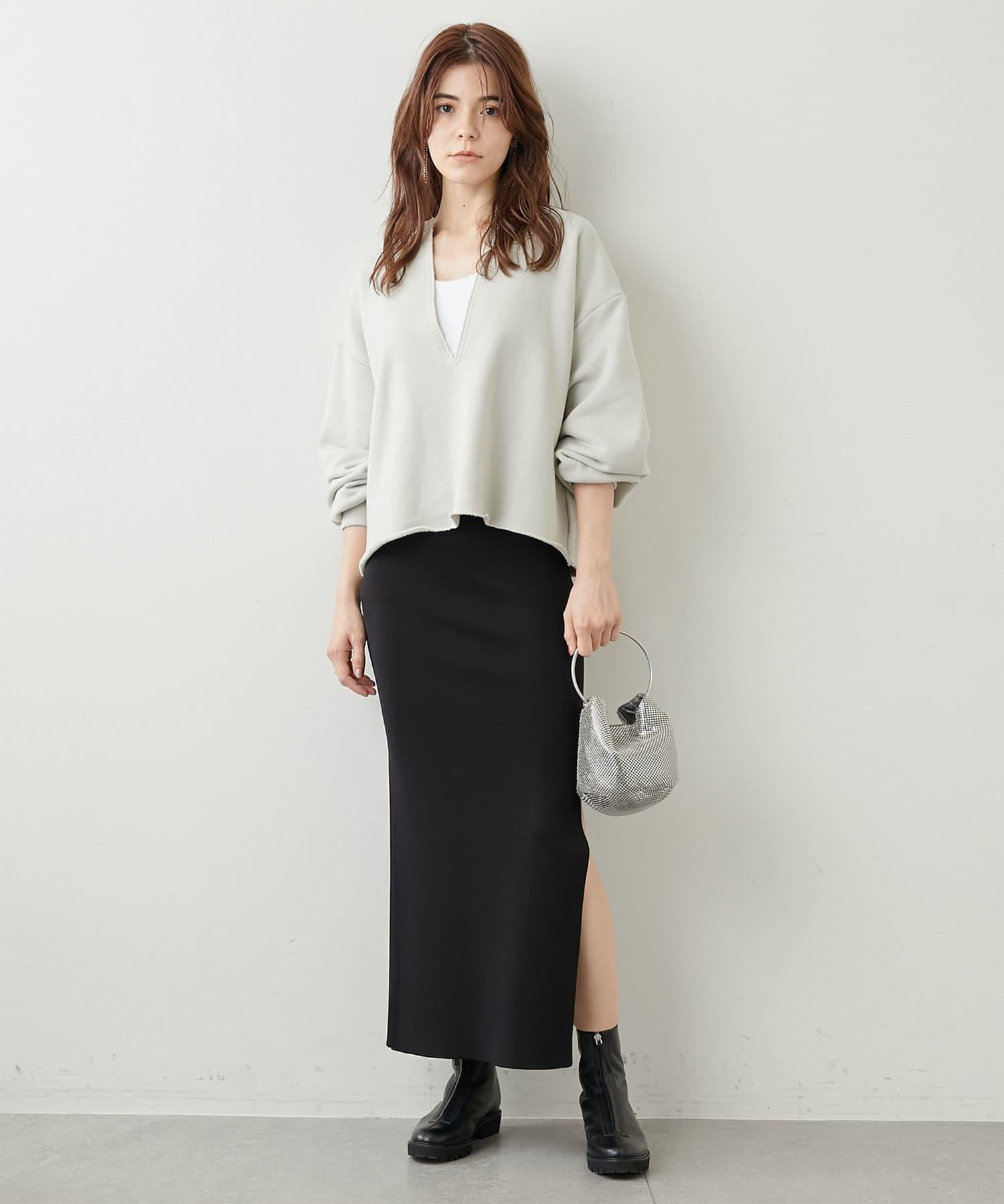 在商店裡非常受歡迎的運動衫。深 V 領設計,可與 T 恤、高領毛衣等不同內搭搭配穿著。