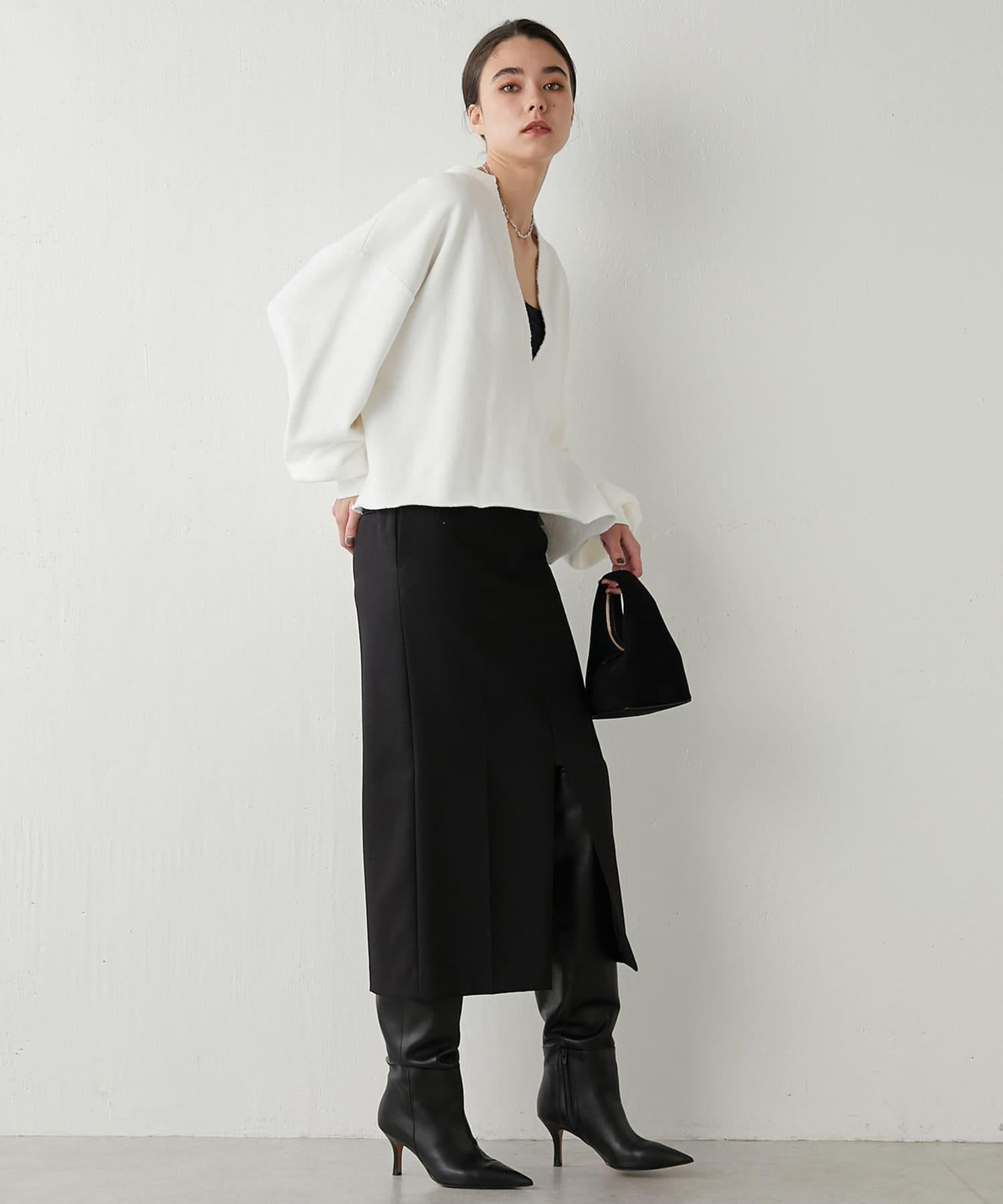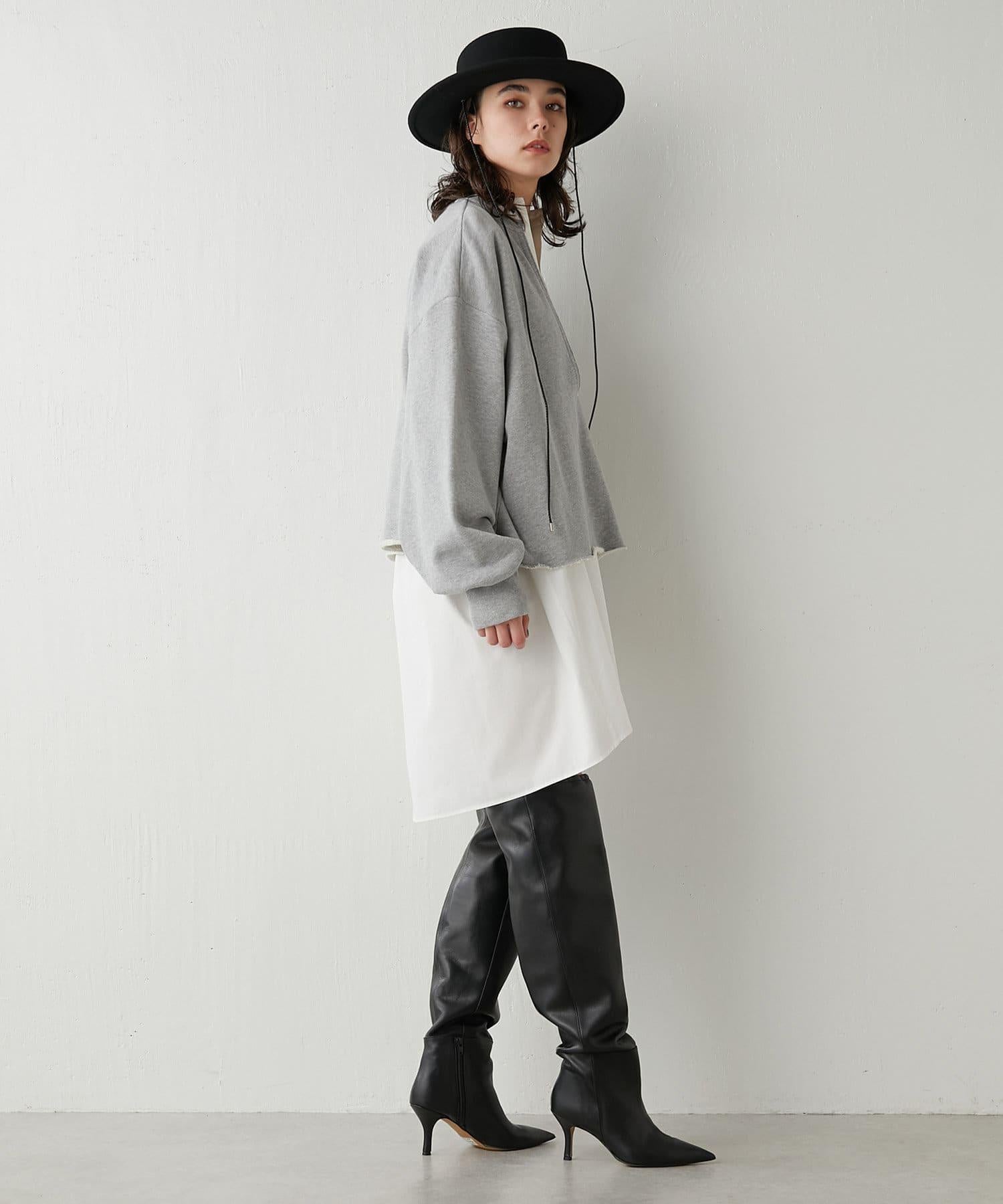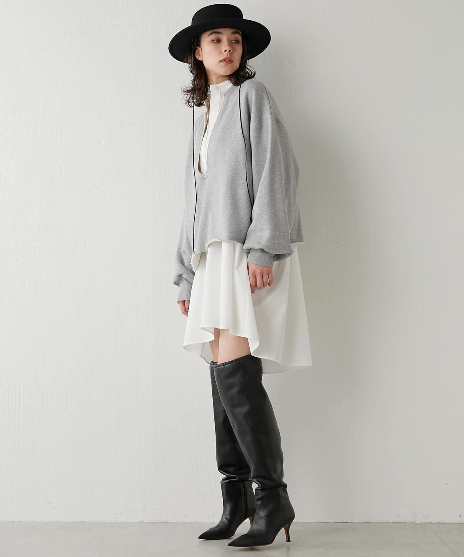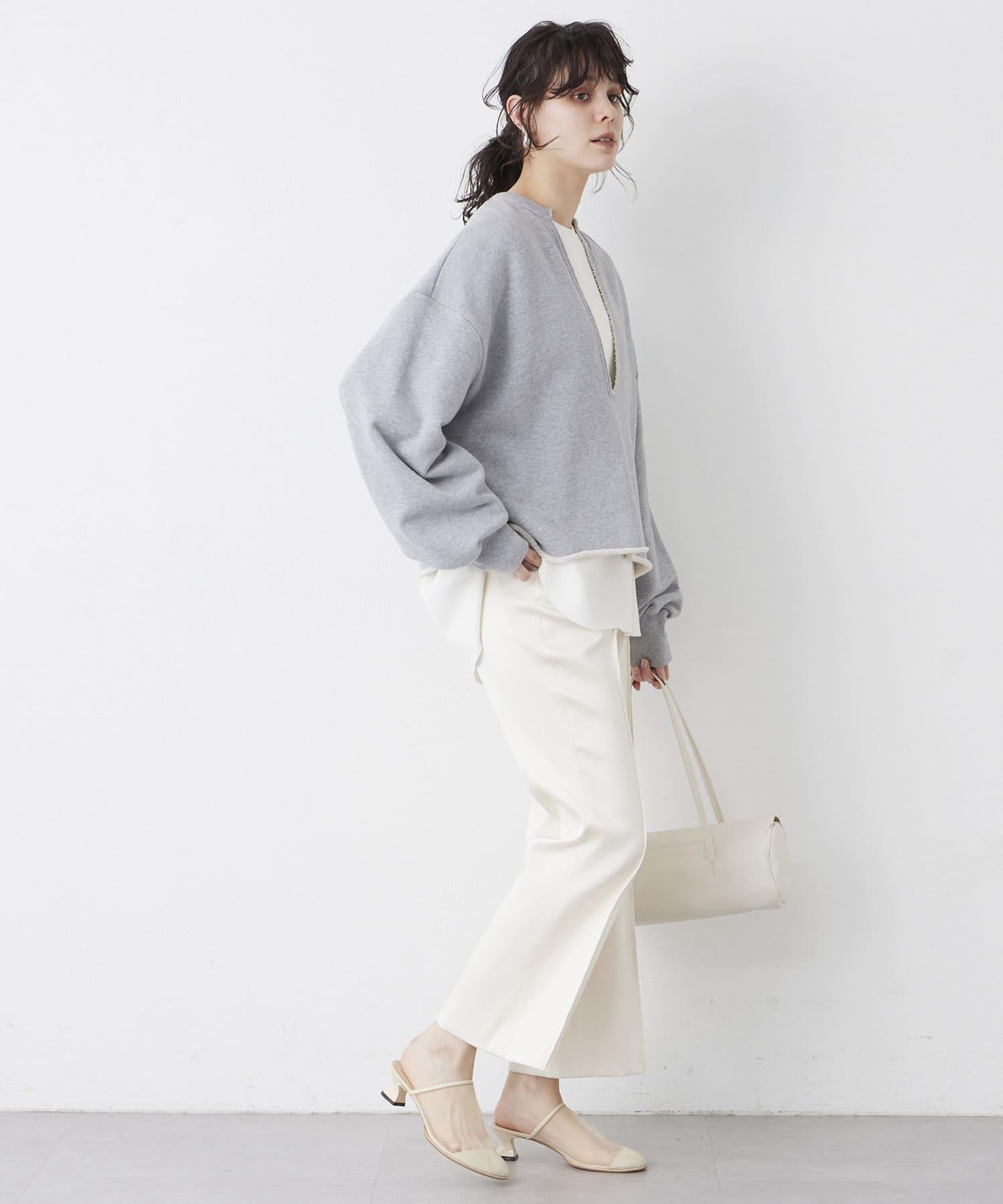 在商店裡非常受歡迎的運動衫。深 V 領設計,可與 T 恤、高領毛衣等不同內搭搭配穿著。