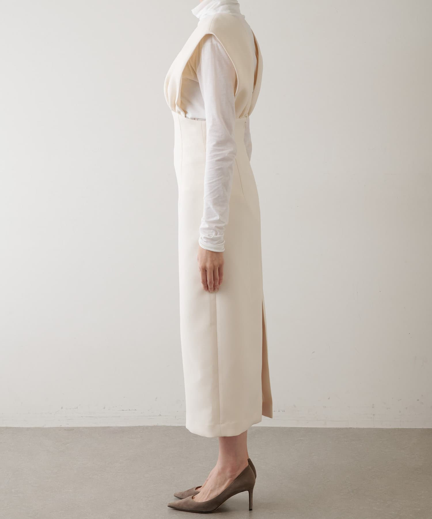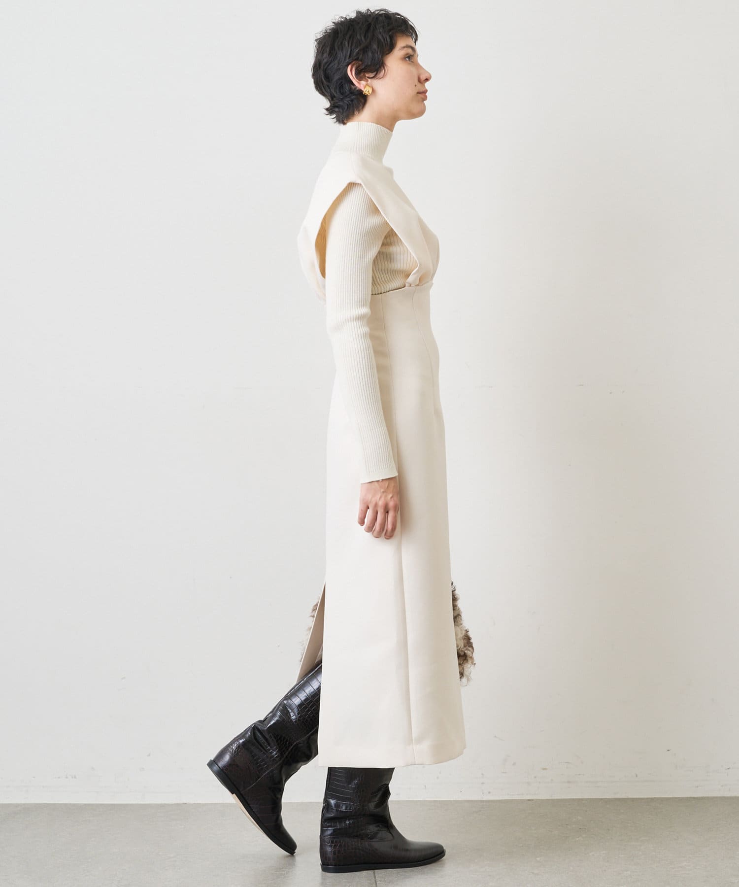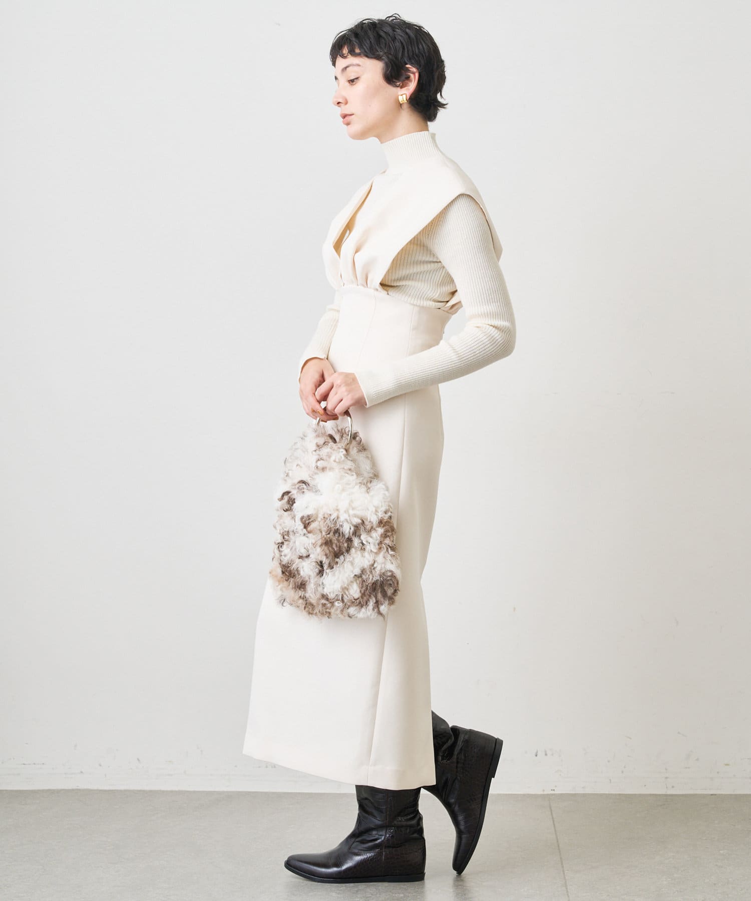 高腰的位置讓它很容易塑形。適度結實的面料給人以安全感。長長的長度和深深的縫隙與靴子風格很搭。