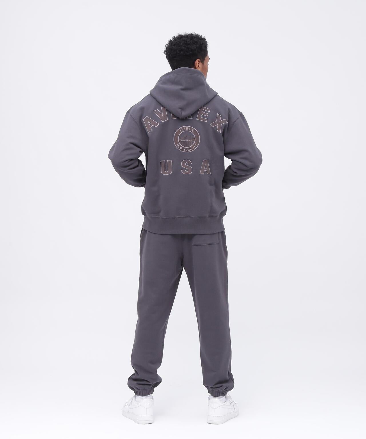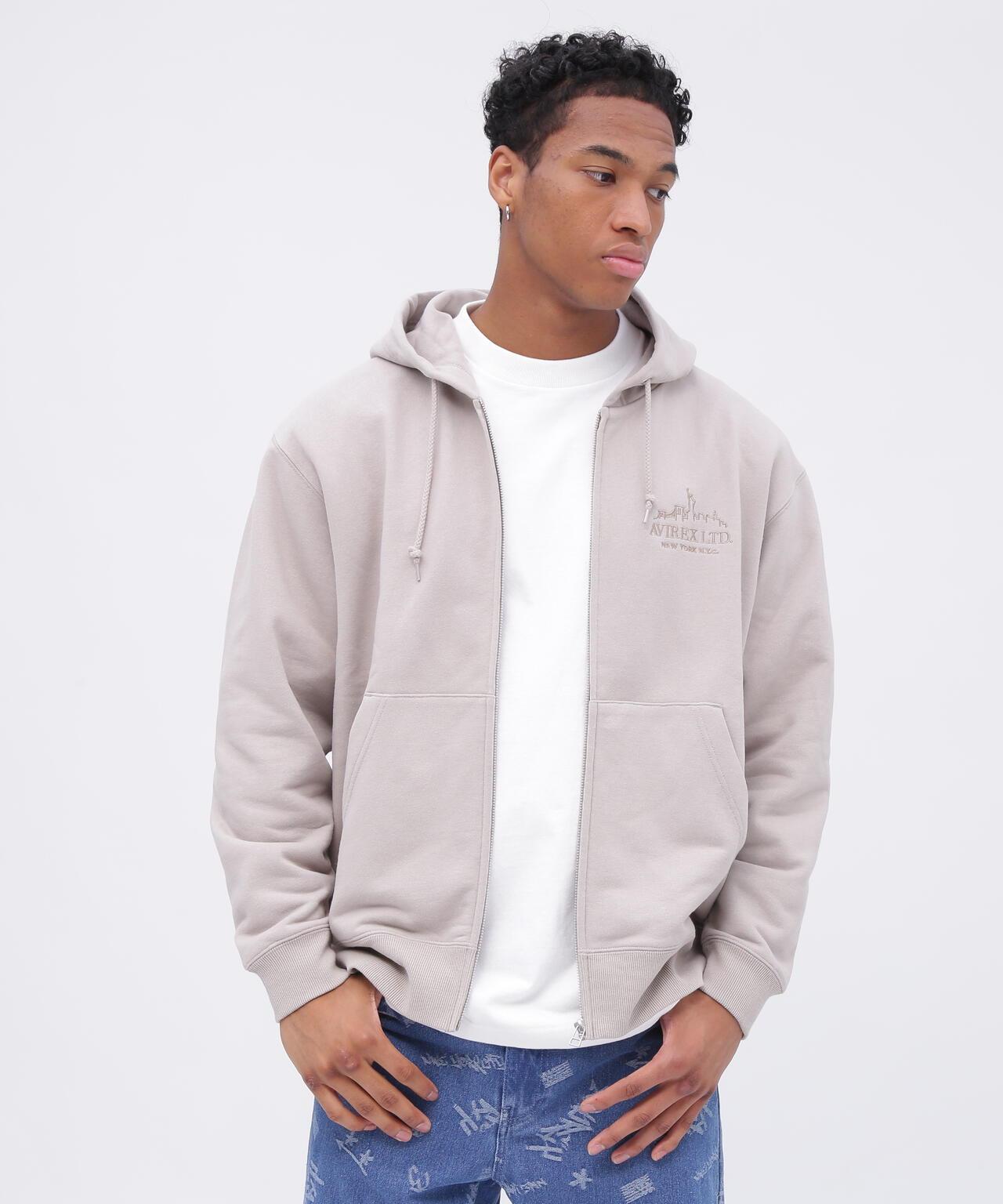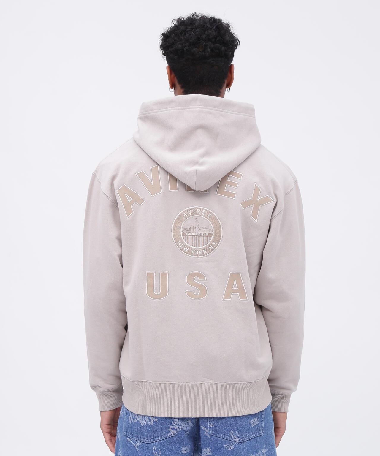 VARSITY LOGO ZIP SWEAT PARKA NYC<產品詳情> - 標準厚度拉鍊連帽衫,反面採用起絨排汗面料,徽標顏色與主體顏色相近,背部標誌性品牌徽標採用毛氈貼布,具有立體效果。貼布設計靈感源自曼哈頓街頭,有米色、薩克斯風色和木炭色可供選擇,版型適中寬鬆。