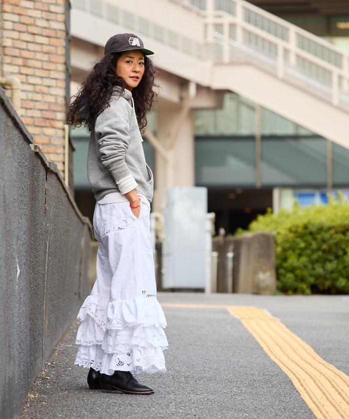 下襬荷葉邊的 A 字廓形設計,讓腰部和大腿看起來更簡潔,因此推薦給那些擔心腰部過緊的人。