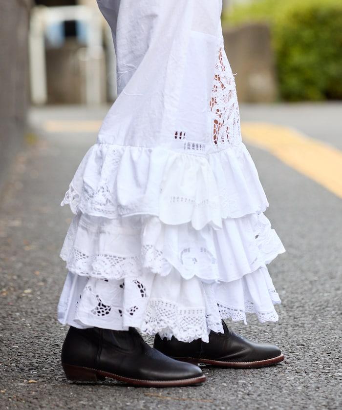 本產品是使用復古材料重新制作的產品。因此,每件衣服的顏色和圖案都會有所不同。質地也存在個體差異。