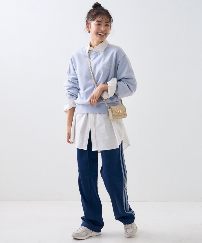衣身寬度寬鬆,但長度約為腰部,易於平衡輪廓。