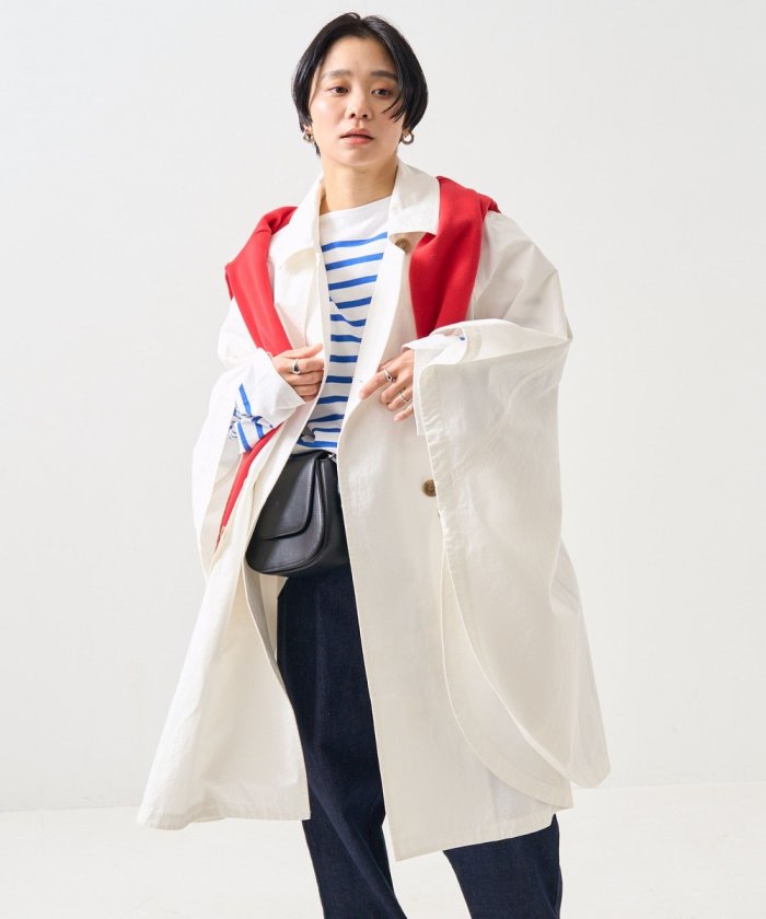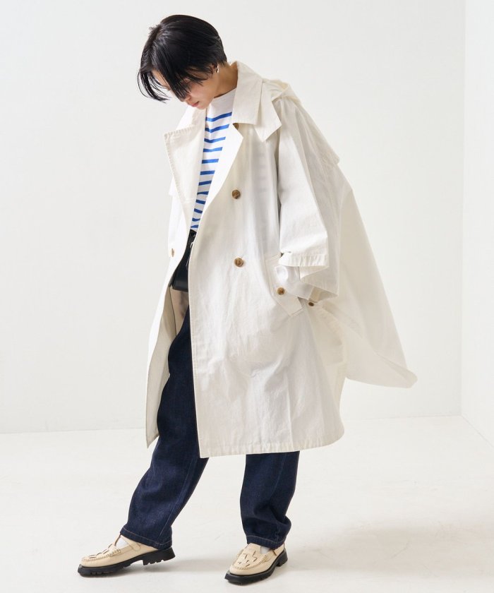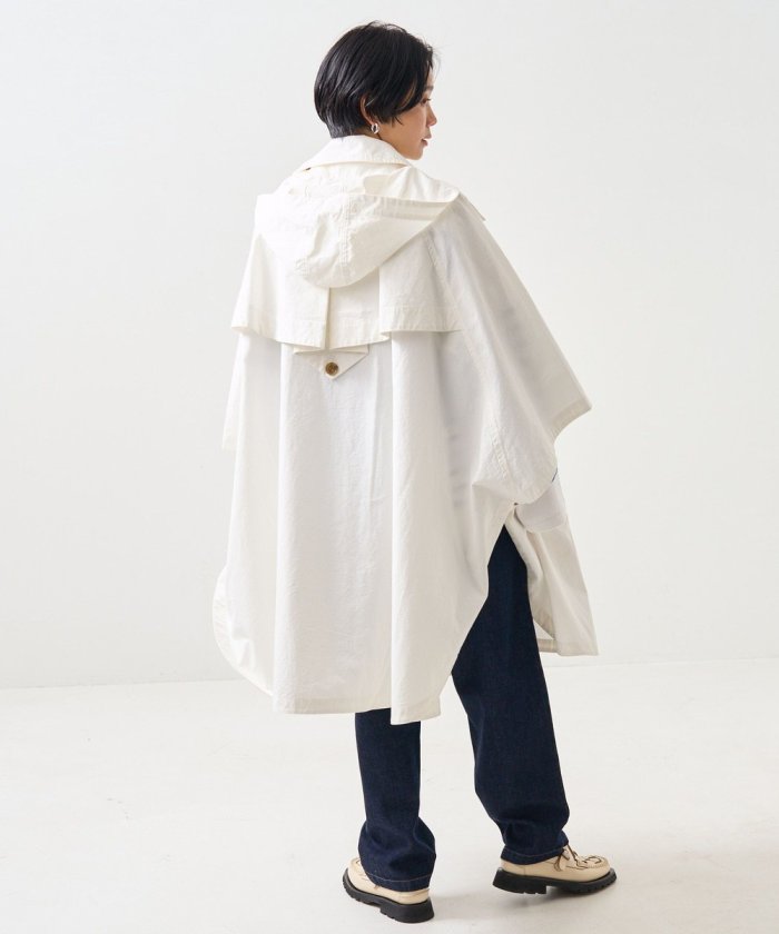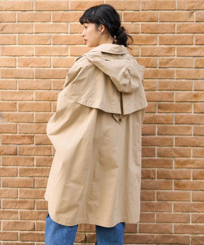 正面有一個像風衣一樣的雙重規格。此外,它還帶有兜帽,合上頸部的紐扣後可以像立領一樣穿著。