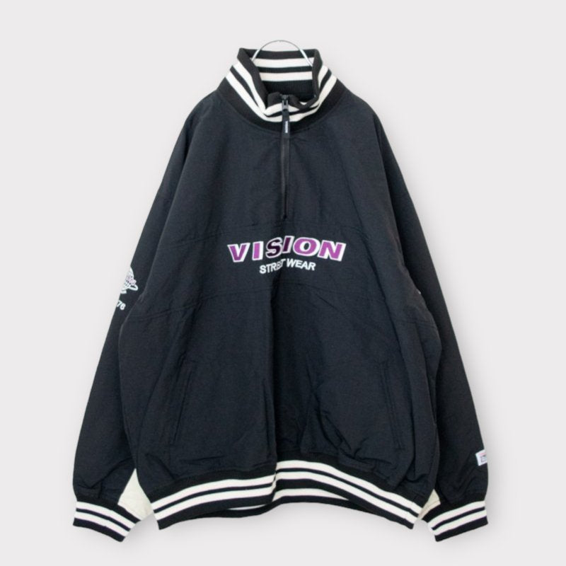 VISION STREET WEAR <男女通用>半拉鍊尼龍套頭衫 黑色[特價] (CT6888BK)