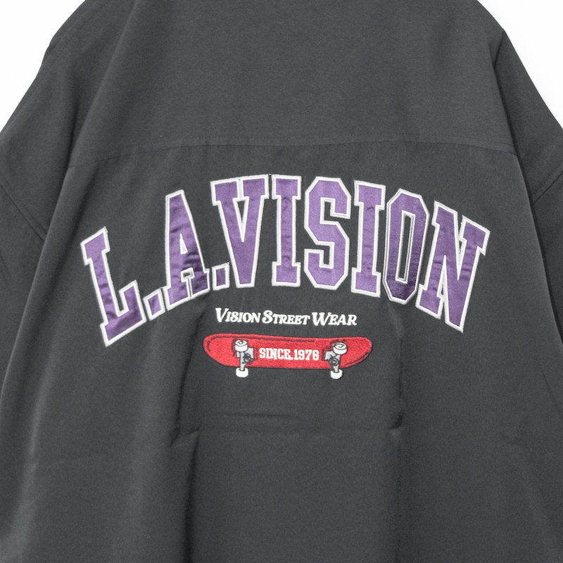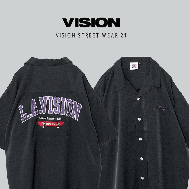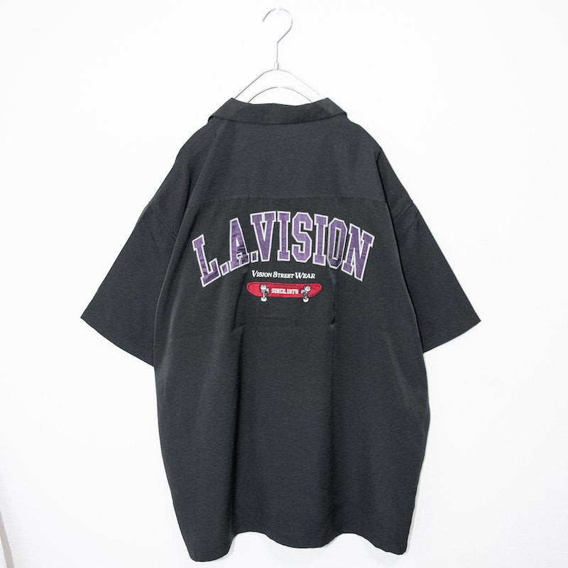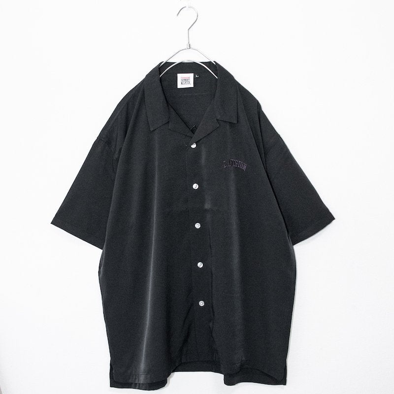 VISION STREET WEAR 綢緞徽章開襟短袖襯衫 黑色【特價】 (CT6224BK)