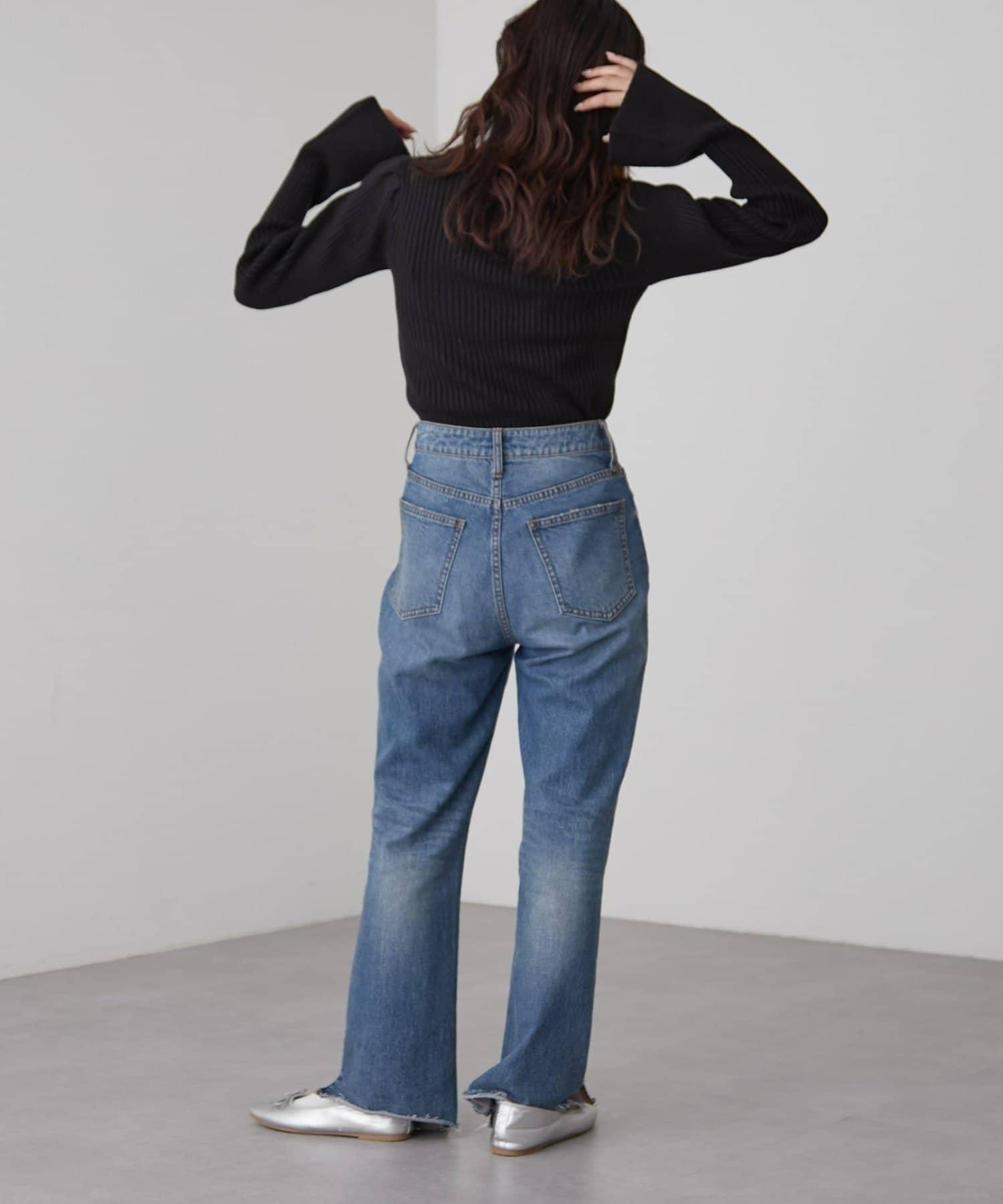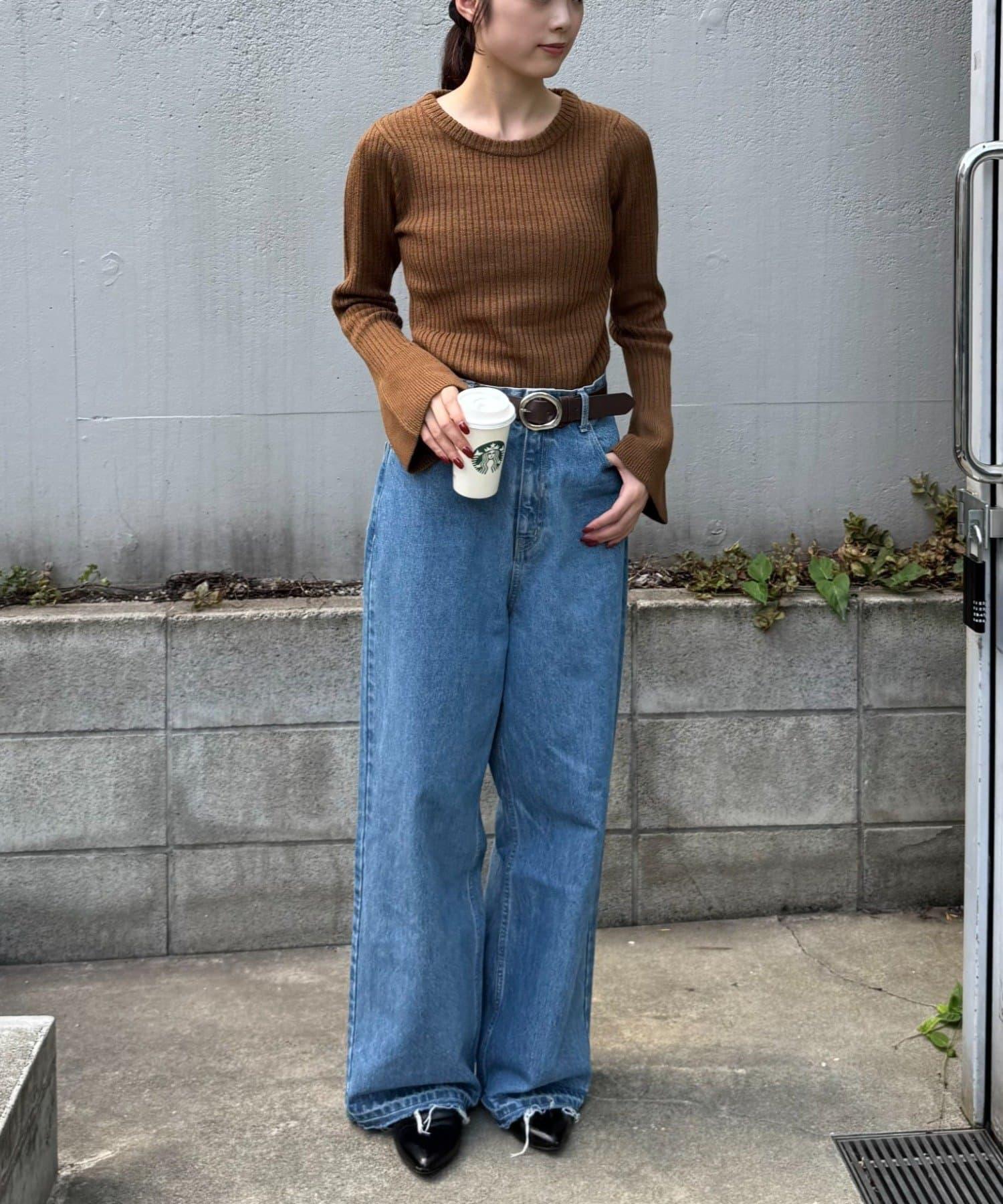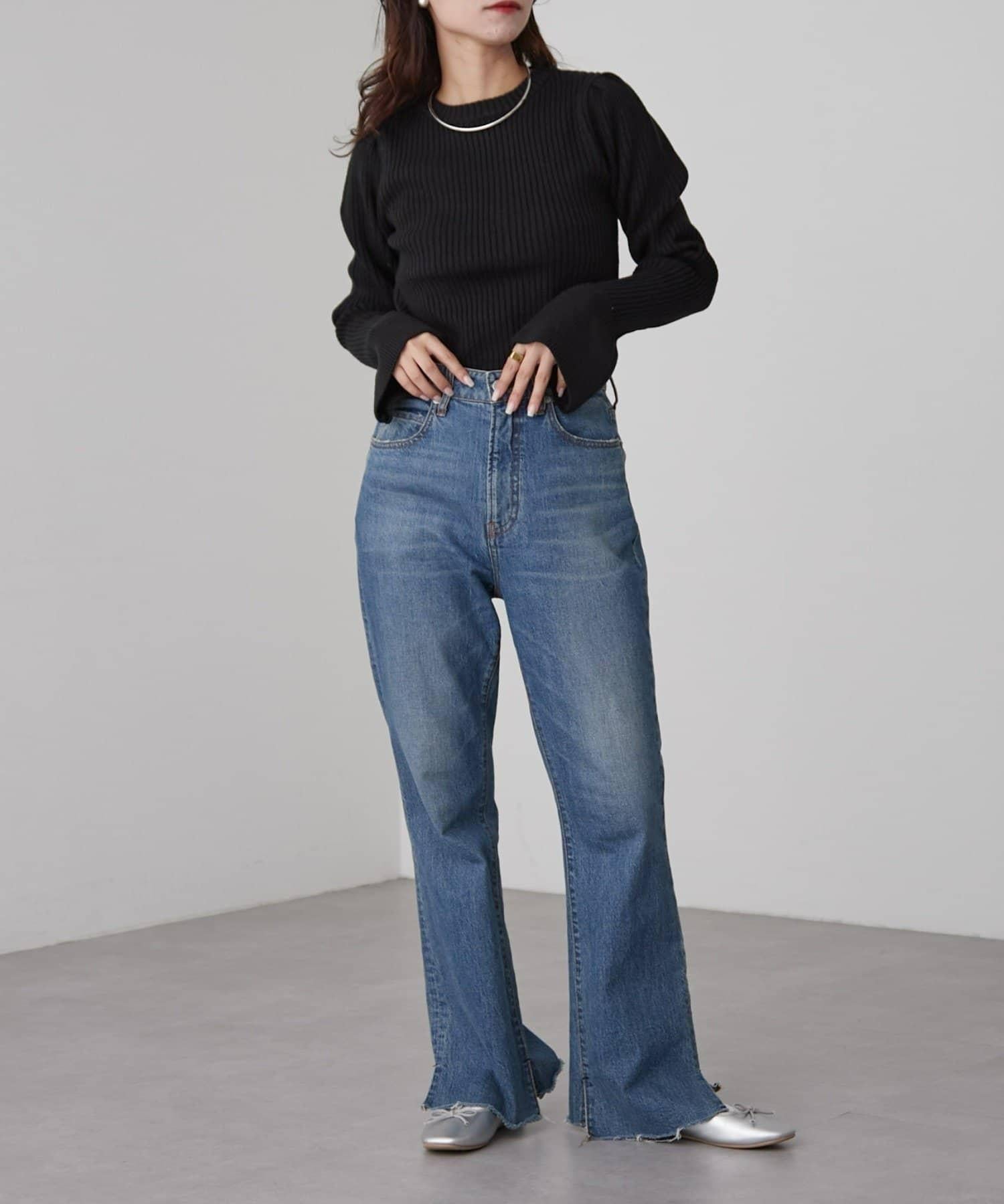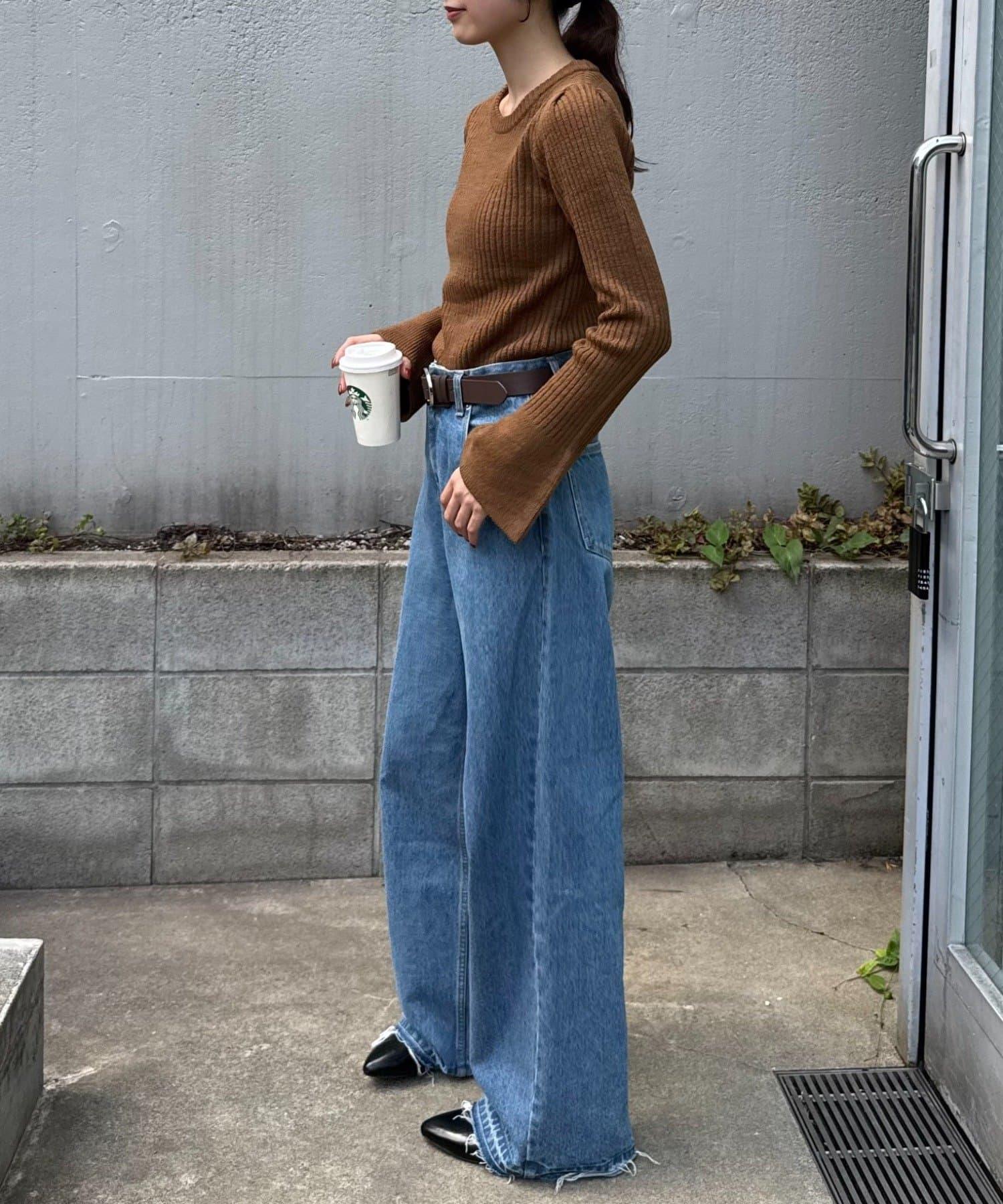 即使隨意搭配牛仔褲,喇叭袖也能自然而然地散發出女性魅力。