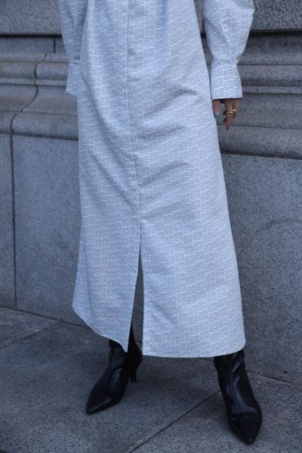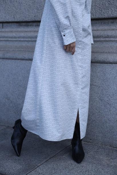MIX 獨創了 ESIÓ 的字母圖案,並將其印製在面料上。 這是一款具有本季典型風格的連衣裙。 黑色配以銀色紐扣,顯得格外突出。