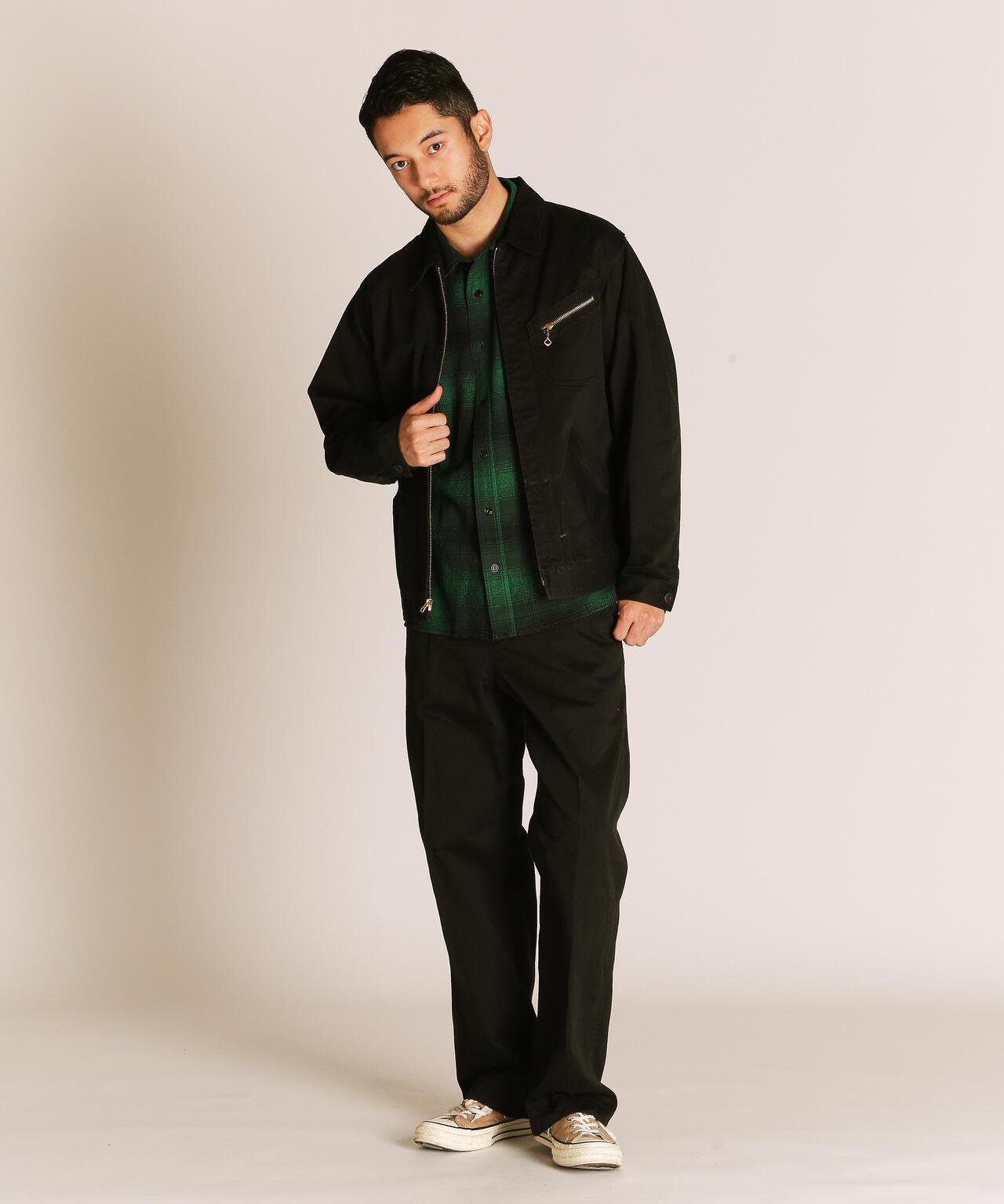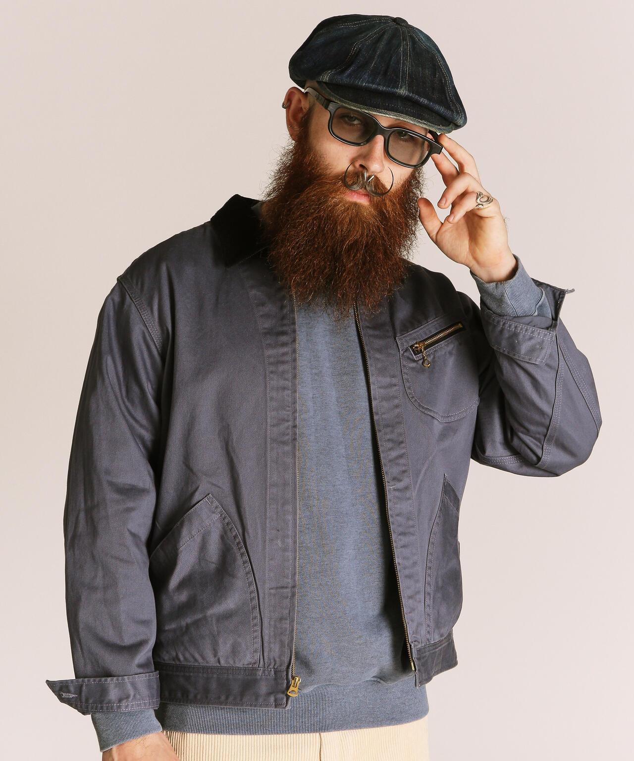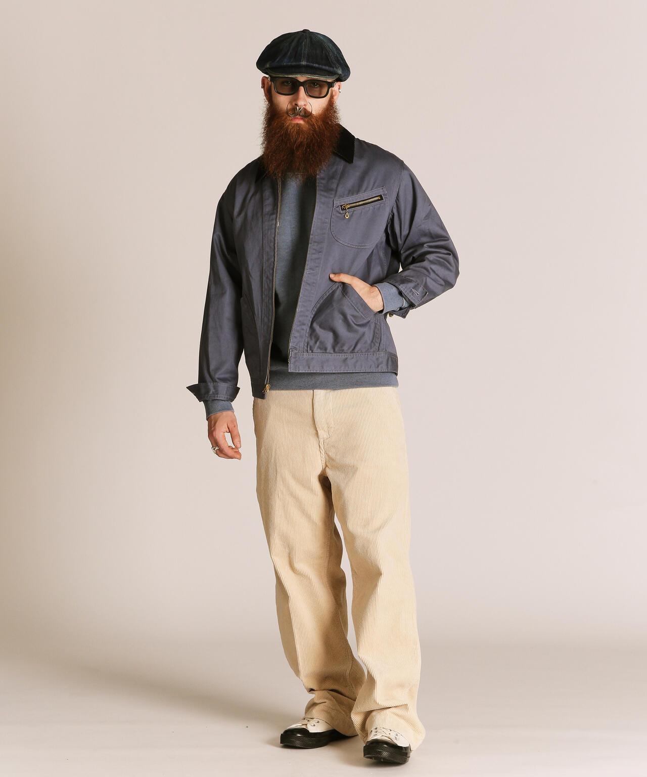 這種重磅斜紋編織面料是通過研究 20 世紀 50 年代的軍褲面料製成的,忠實再現了當時的質感。除了使用雙紗之外,面料還經過了比一般面料更嚴格的打漿處理,使其具有堅韌挺括的質感。這是一件可以穿很多年的衣服,既有粗獷的外觀,又經久耐用。在設計方面,採用了 50 年代風格的人物口袋,追求復古風格。胸前口袋拉鍊採用復古鏈條拉頭,更顯尊貴,注重細節。樸實的表面處理營造出粗獷而精緻的印象。既有工裝的功能性,又有復古的魅力。推薦給經典風格愛好者。