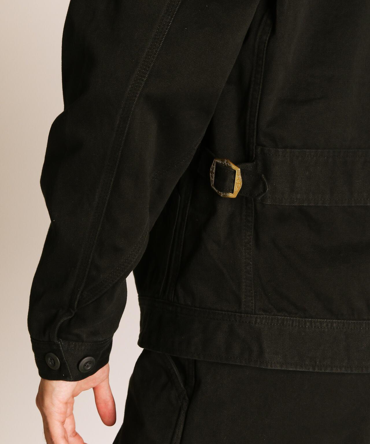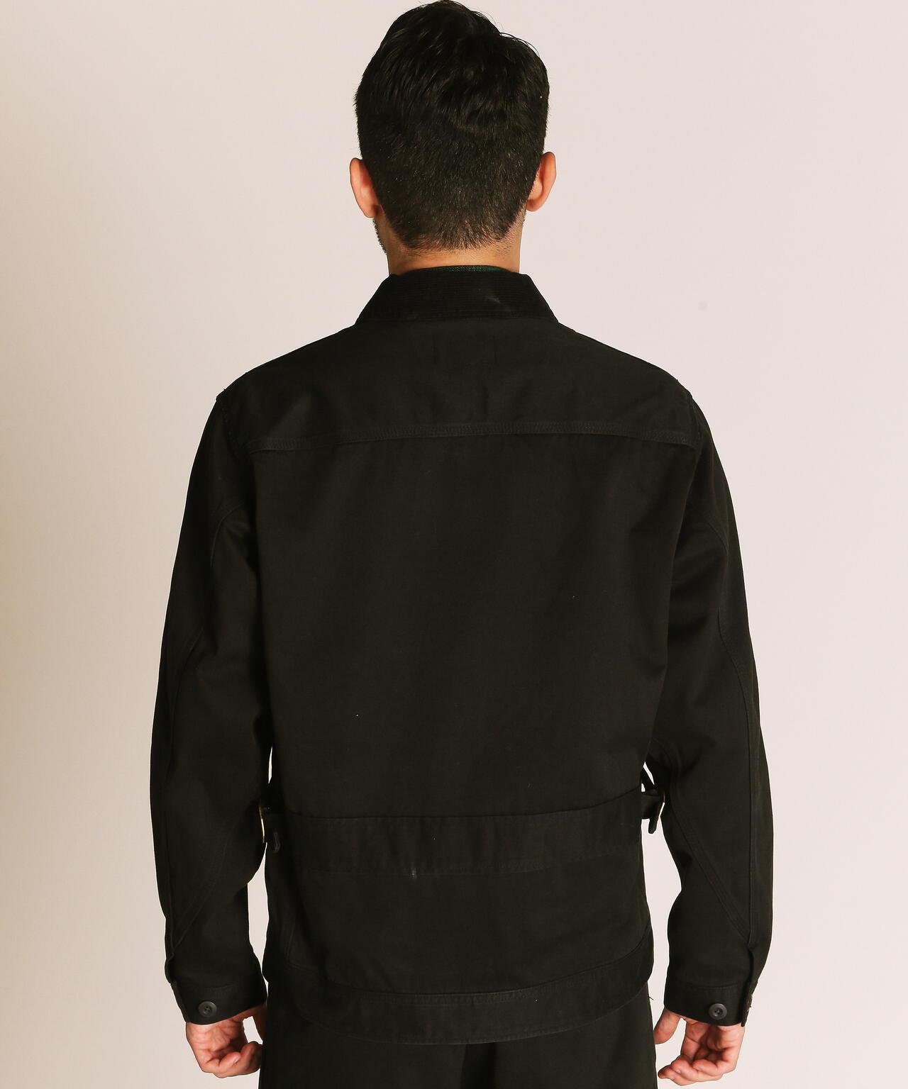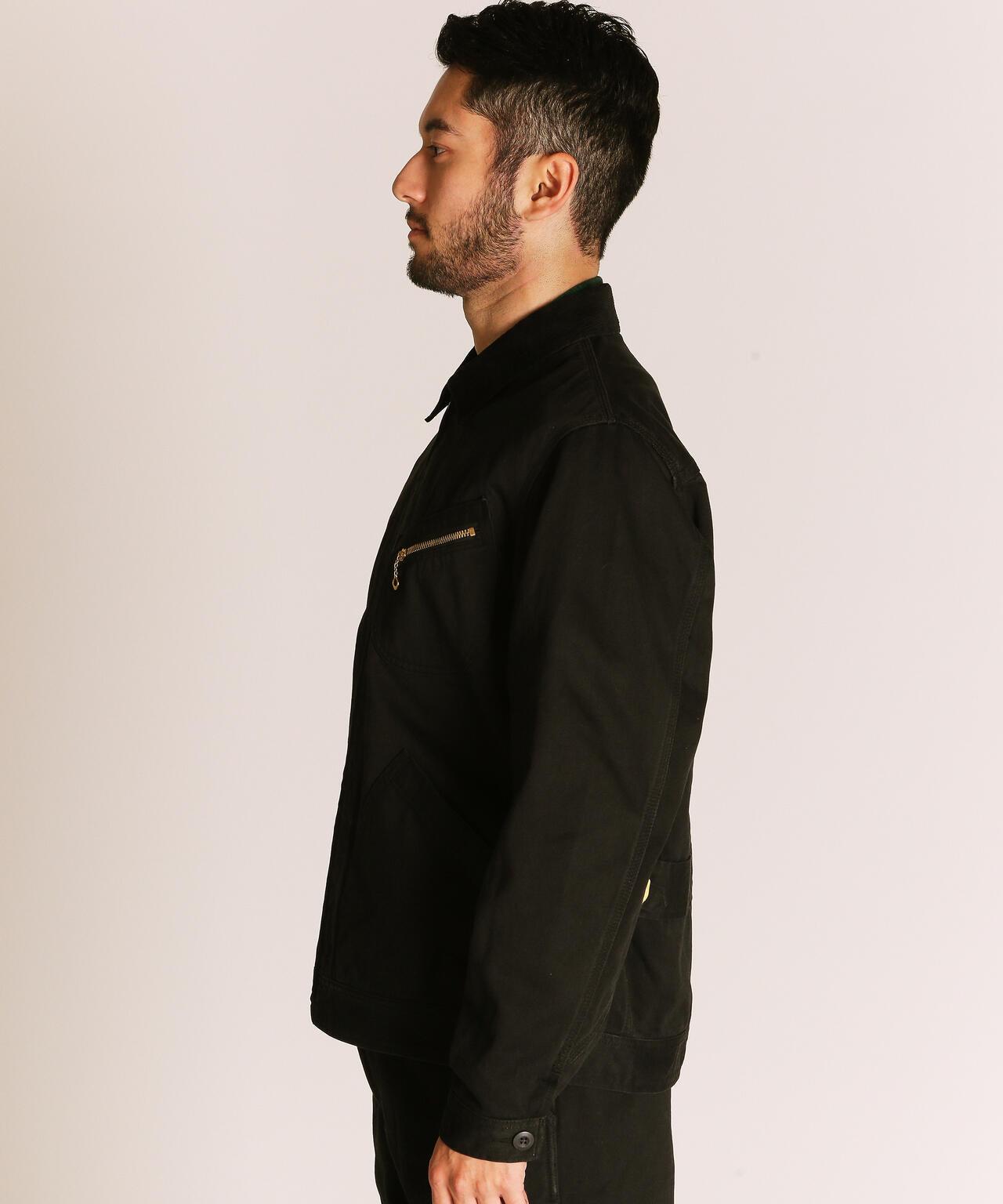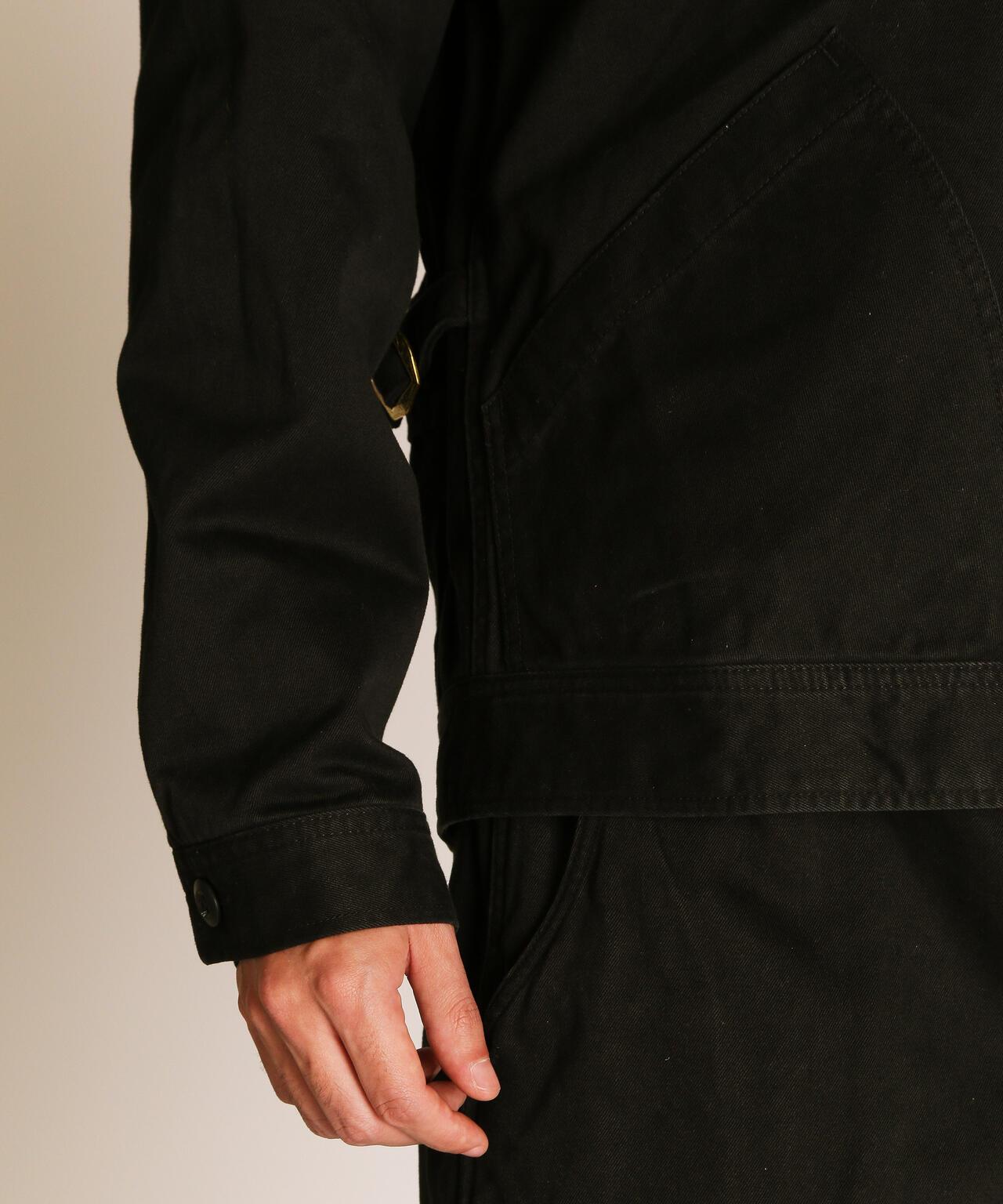 這種重磅斜紋編織面料是通過研究 20 世紀 50 年代的軍褲面料製成的,忠實再現了當時的質感。除了使用雙紗之外,面料還經過了比一般面料更嚴格的打漿處理,使其具有堅韌挺括的質感。這是一件可以穿很多年的衣服,既有粗獷的外觀,又經久耐用。在設計方面,採用了 50 年代風格的人物口袋,追求復古風格。胸前口袋拉鍊採用復古鏈條拉頭,更顯尊貴,注重細節。樸實的表面處理營造出粗獷而精緻的印象。既有工裝的功能性,又有復古的魅力。推薦給經典風格愛好者。