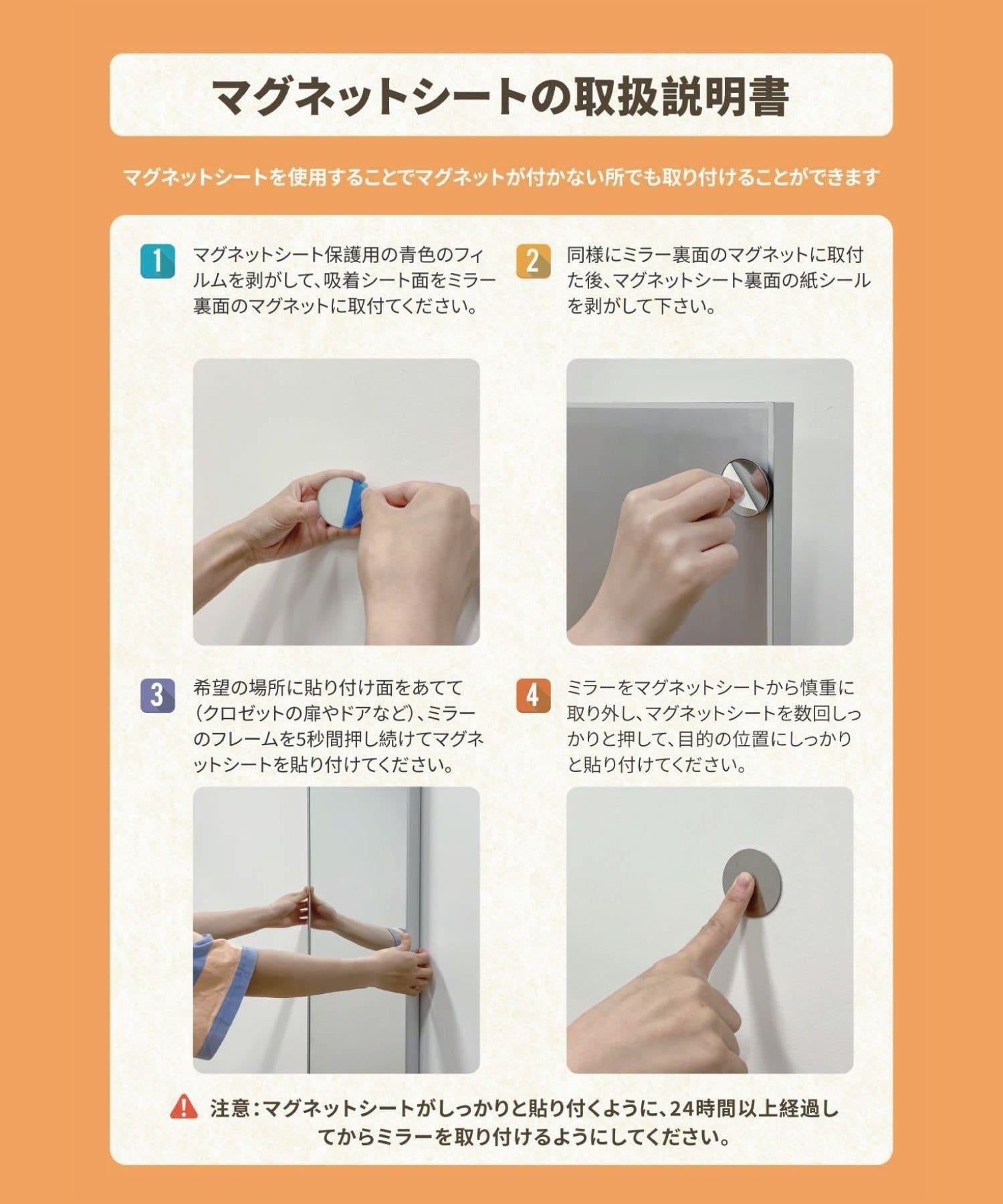 將鏡子粘貼到磁鐵無法粘貼的地方時,請使用隨附的磁鐵輔助板。