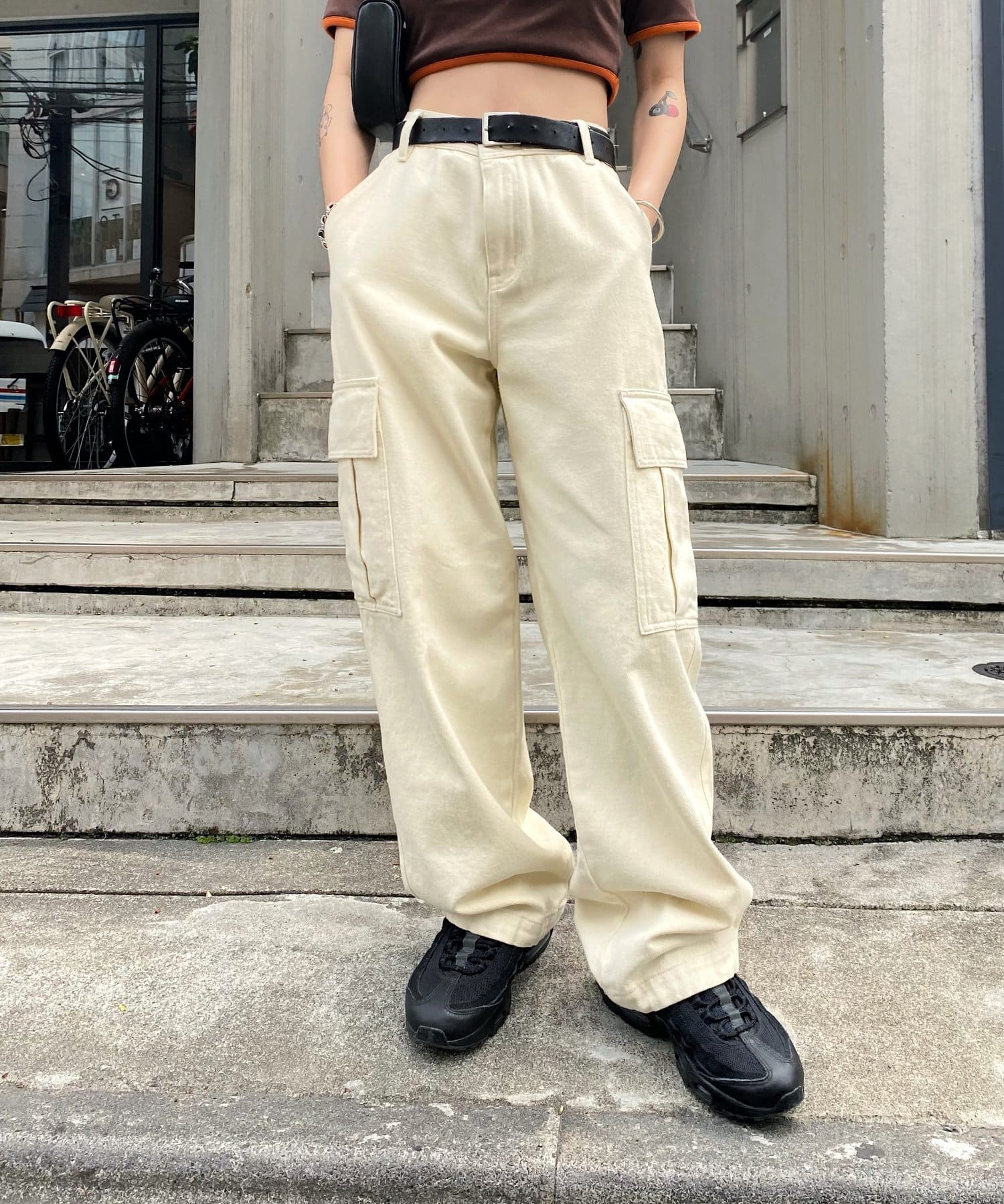 類似於男士的貨褲,具有時尚的協調平衡。