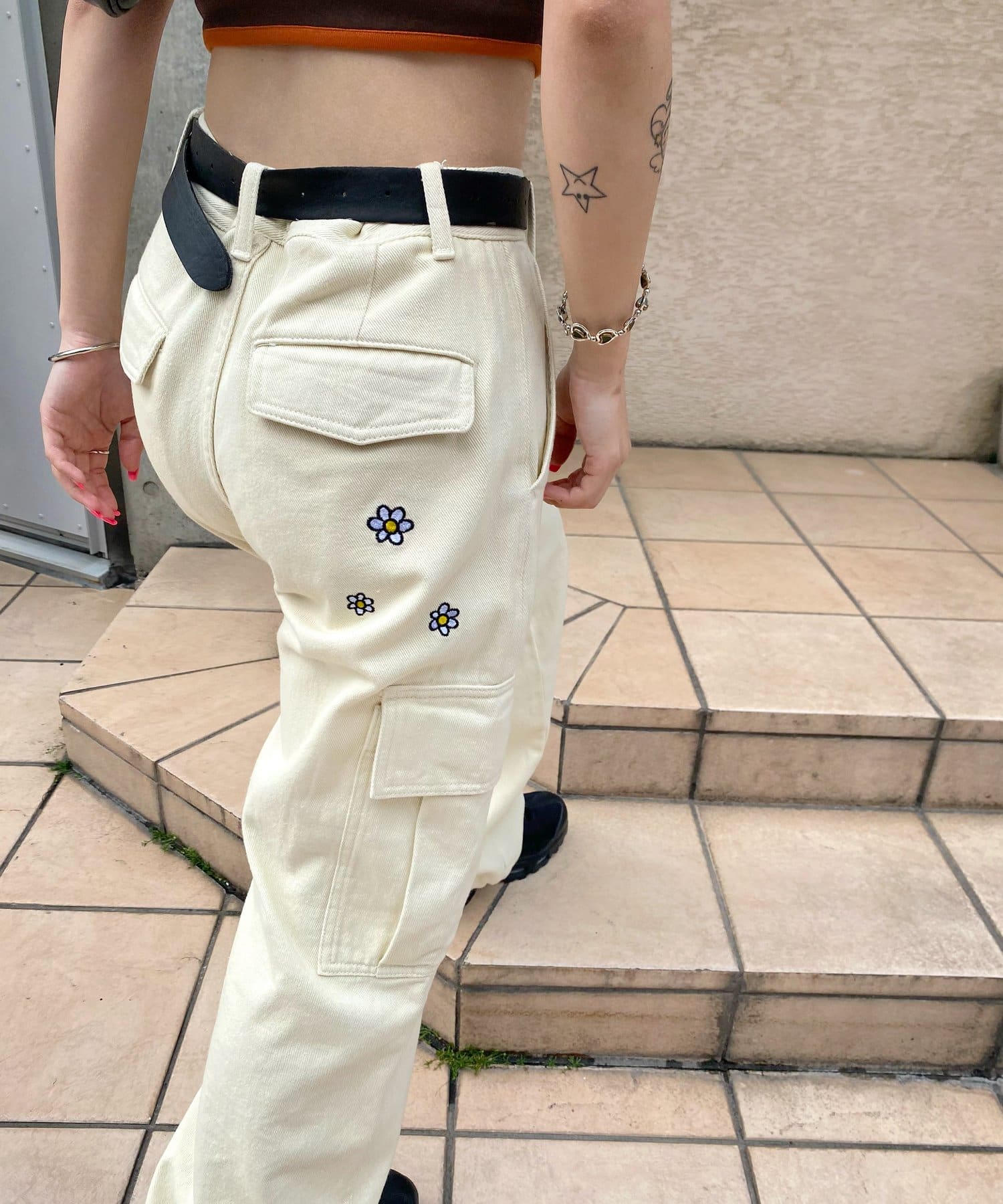 花刺繡軍裝褲