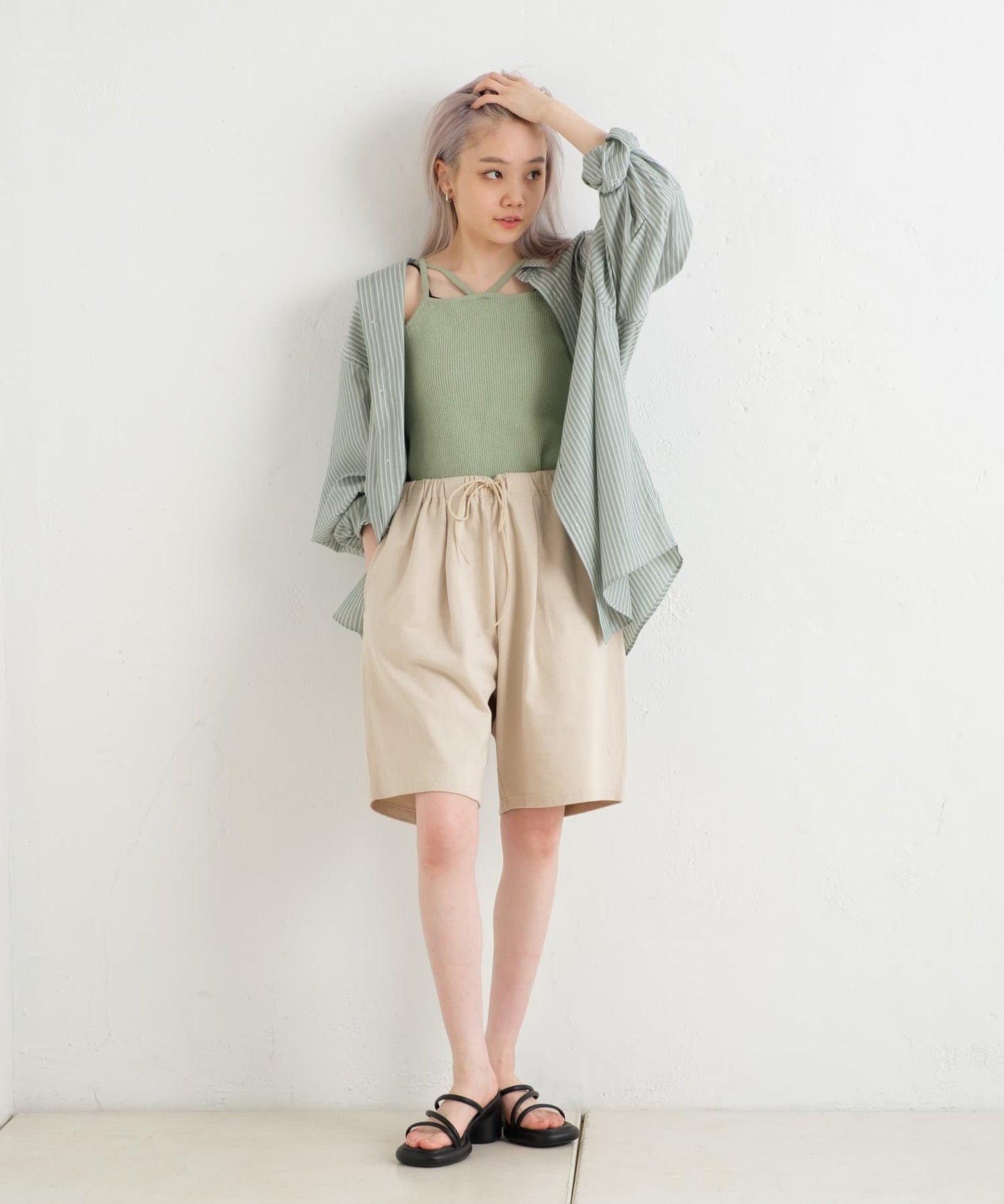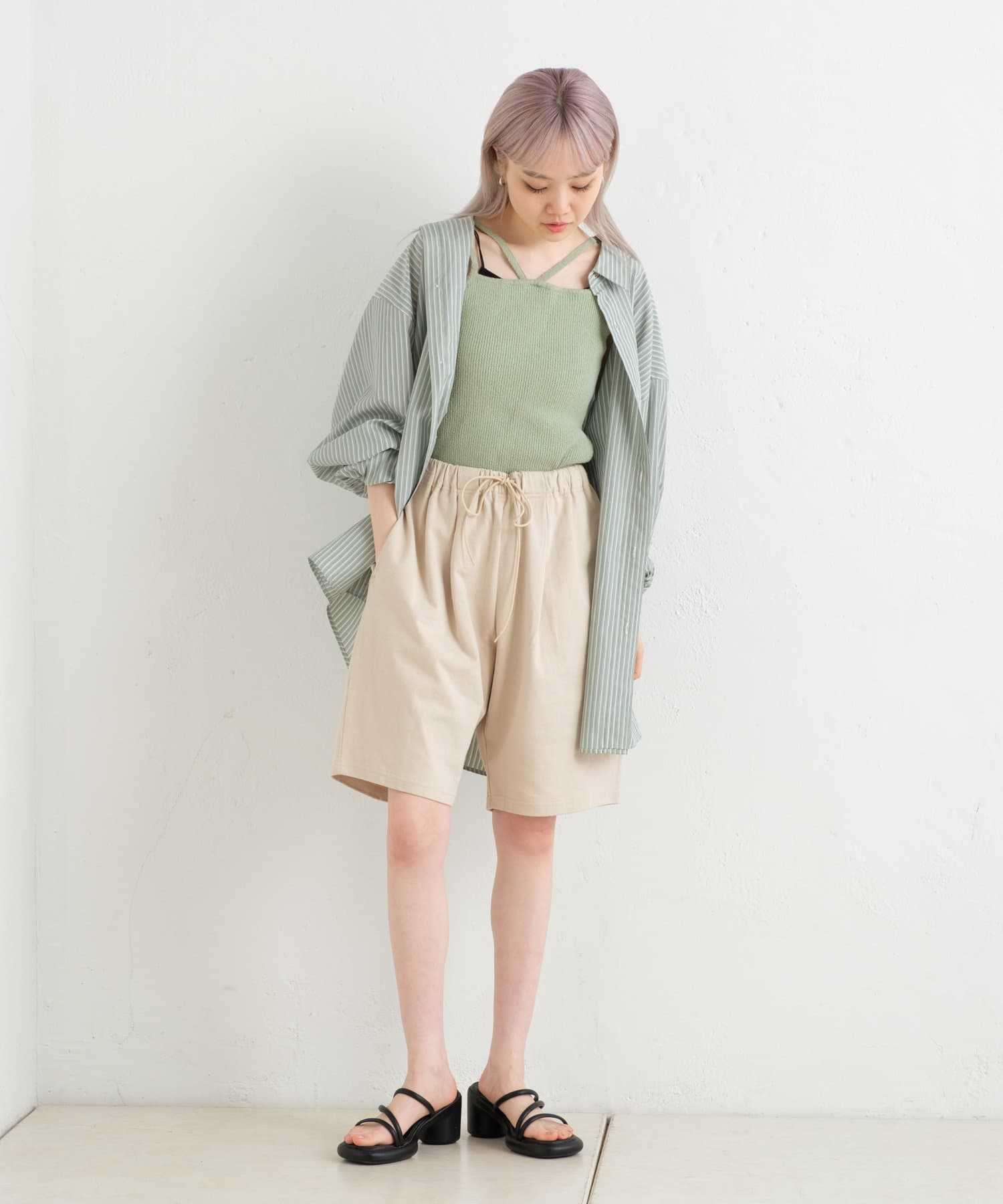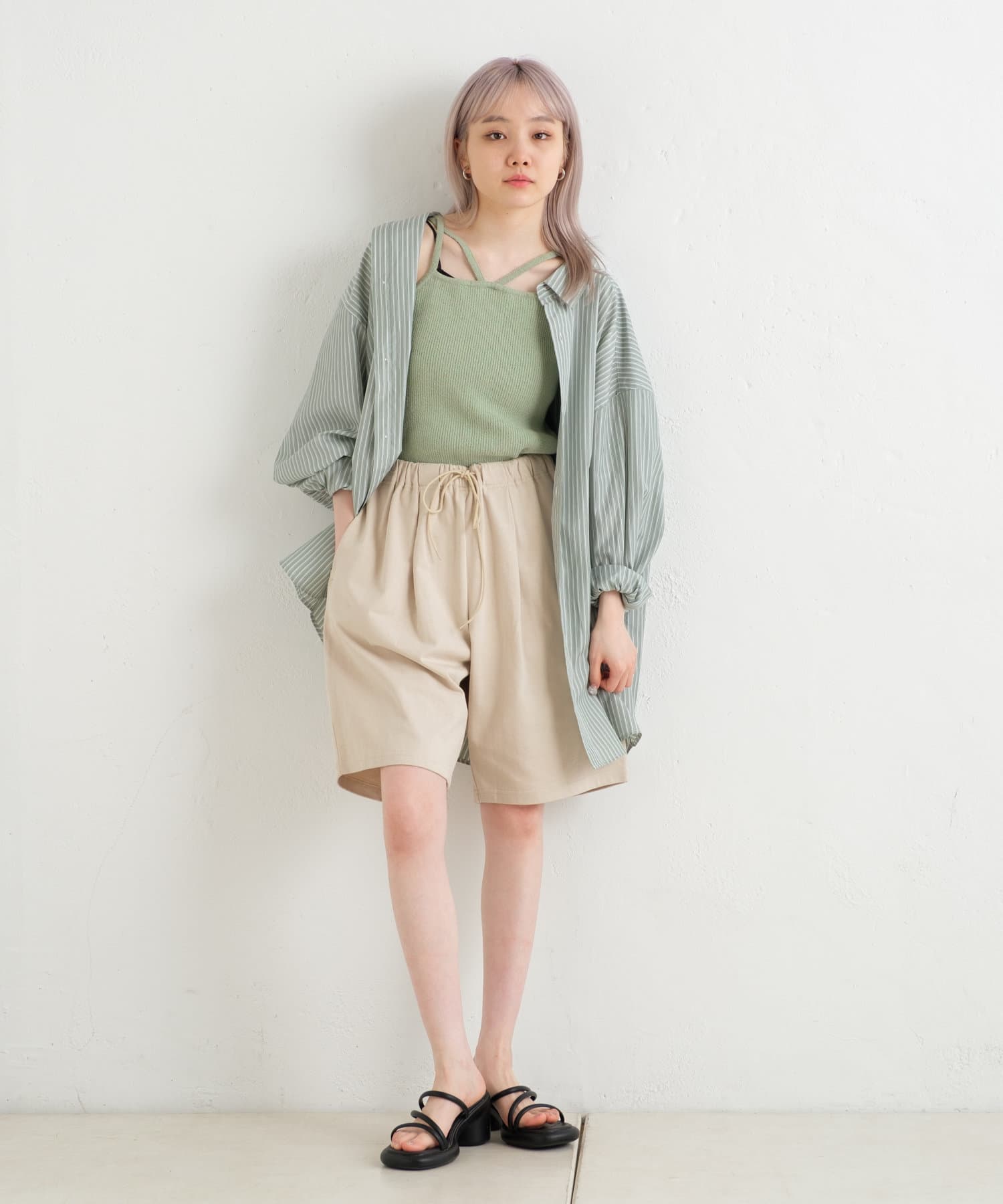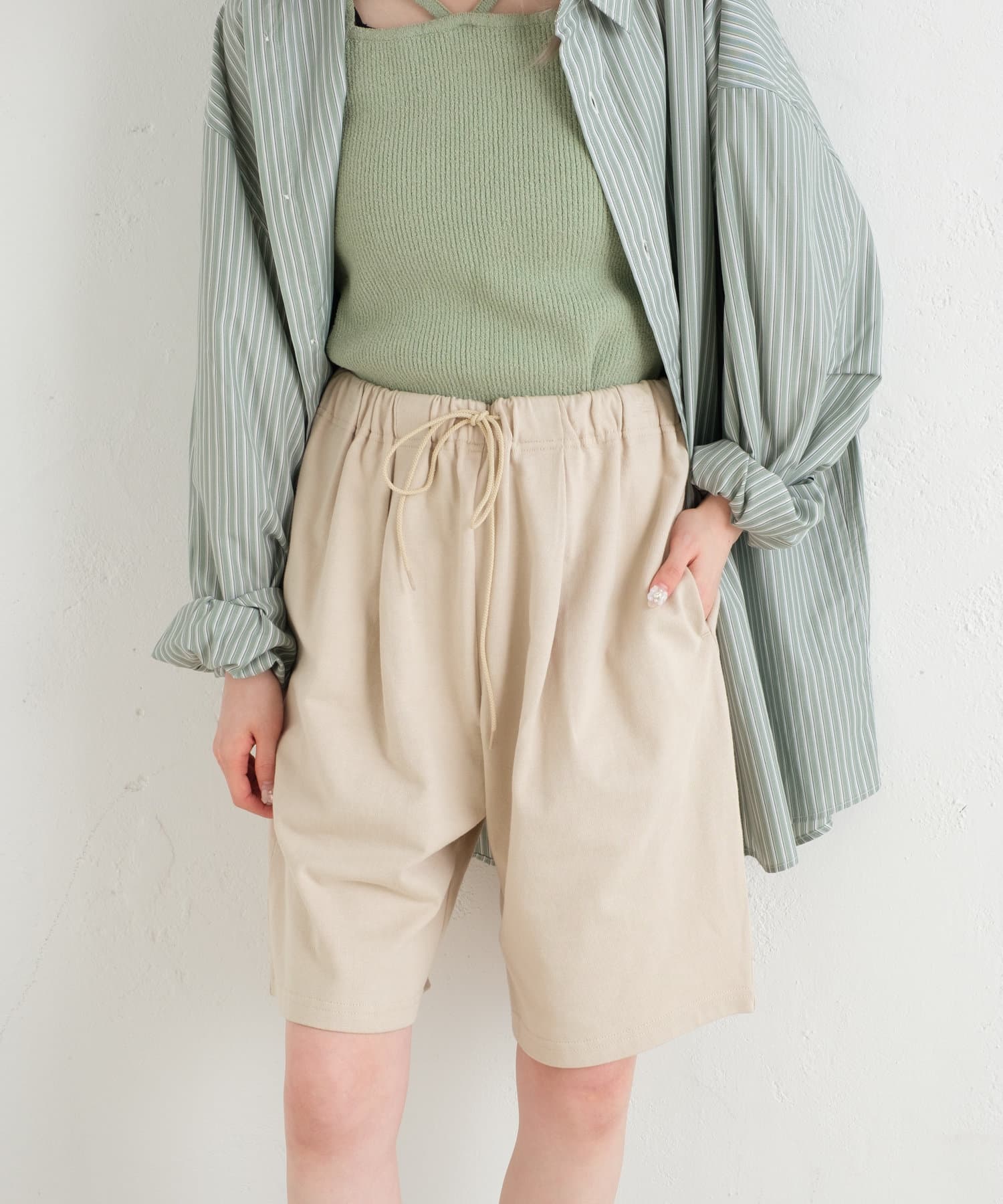 長度和腰部可以用腰部軸線進行調整。它很容易與鞋子平衡,並且可以與各種上衣如T恤和襯衫搭配,是一個多功能的物品。