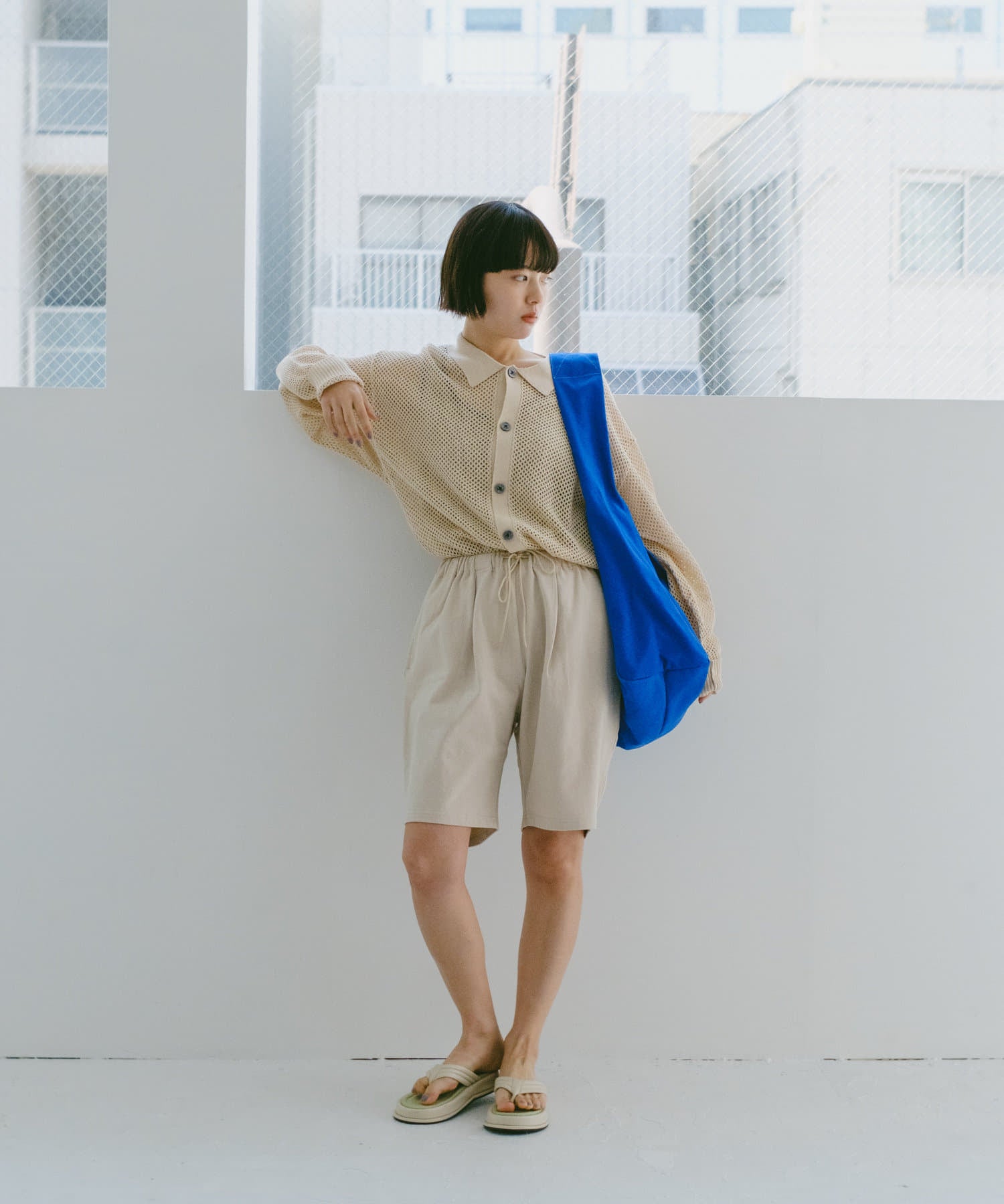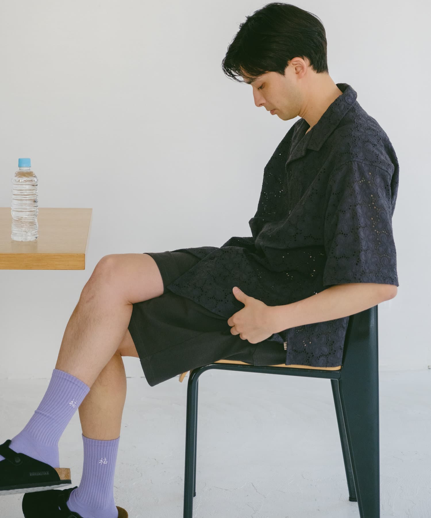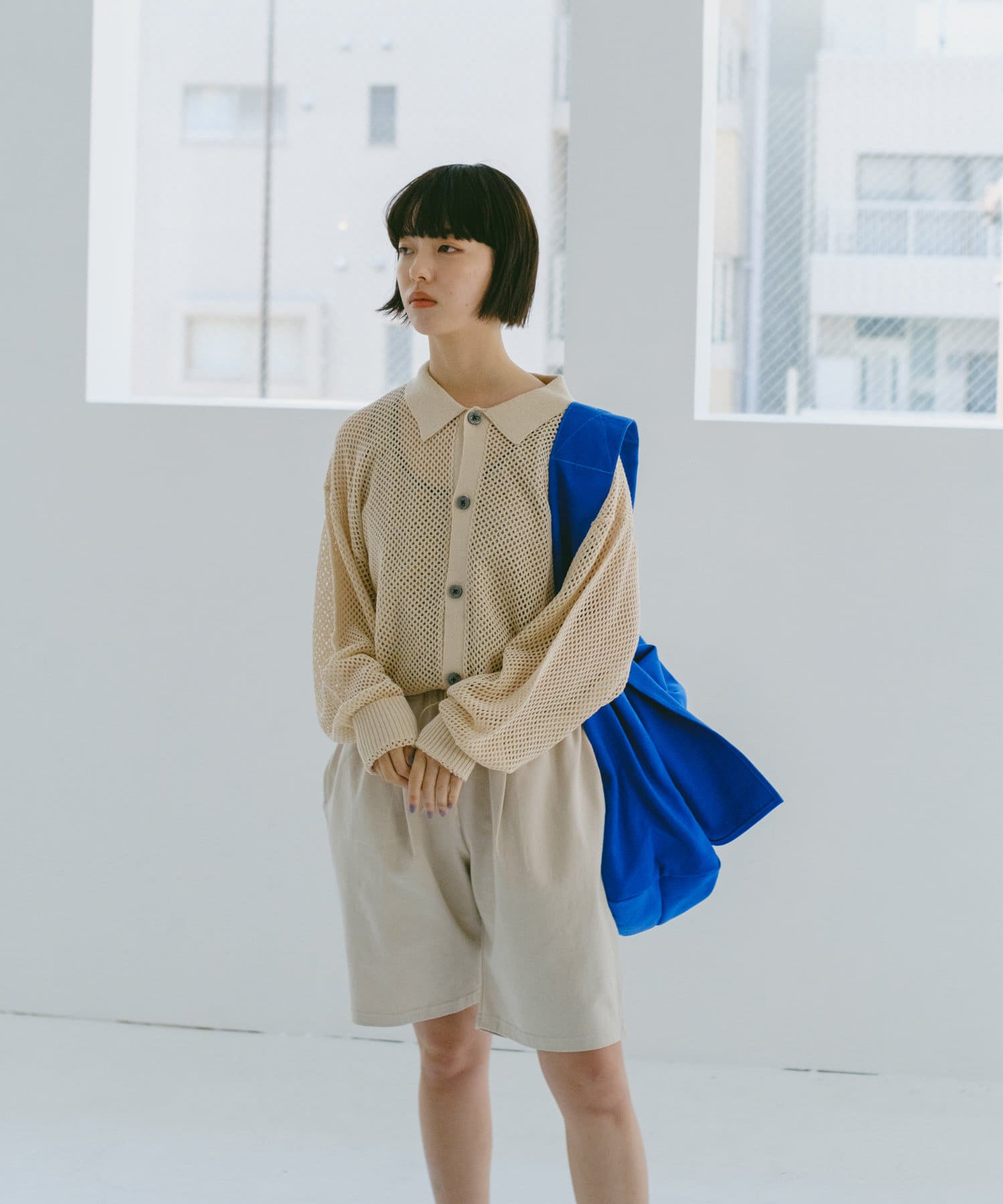 這些剪裁和縫製的短褲使用了重量級的度數填充的針織品,真實地表達了老化引起的咬合和曬傷。