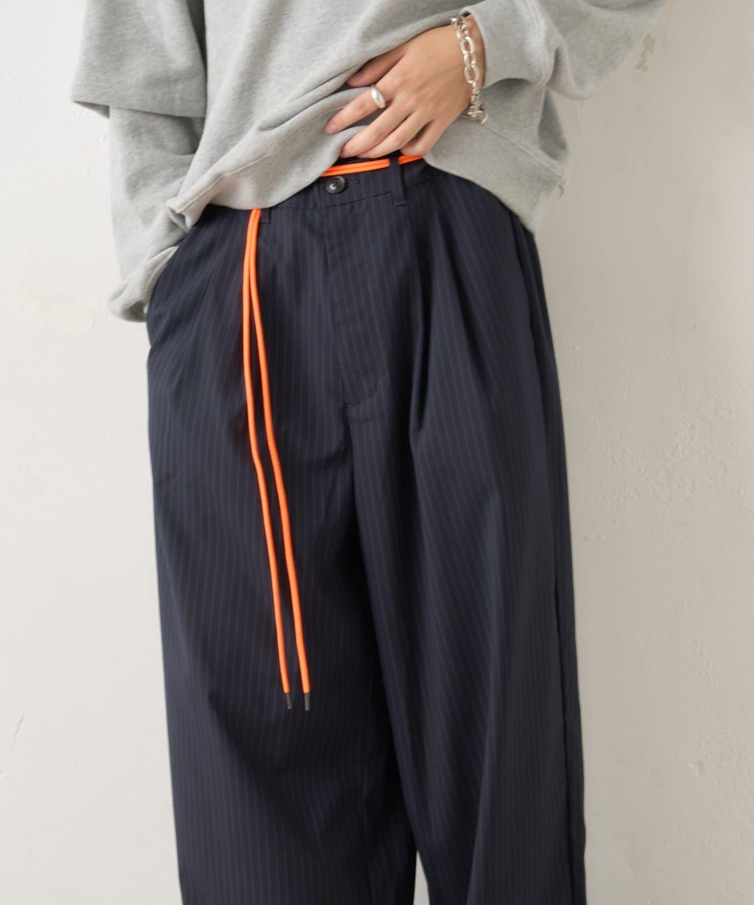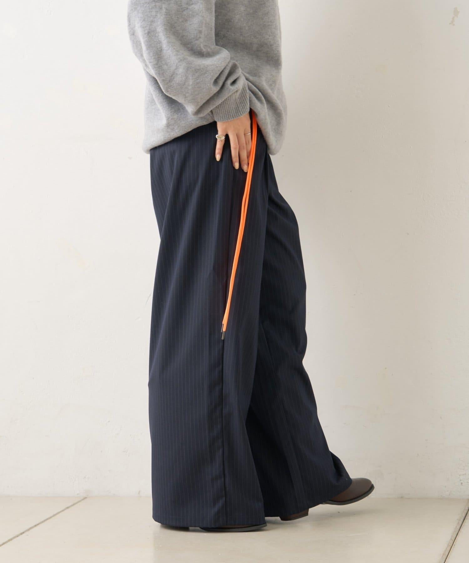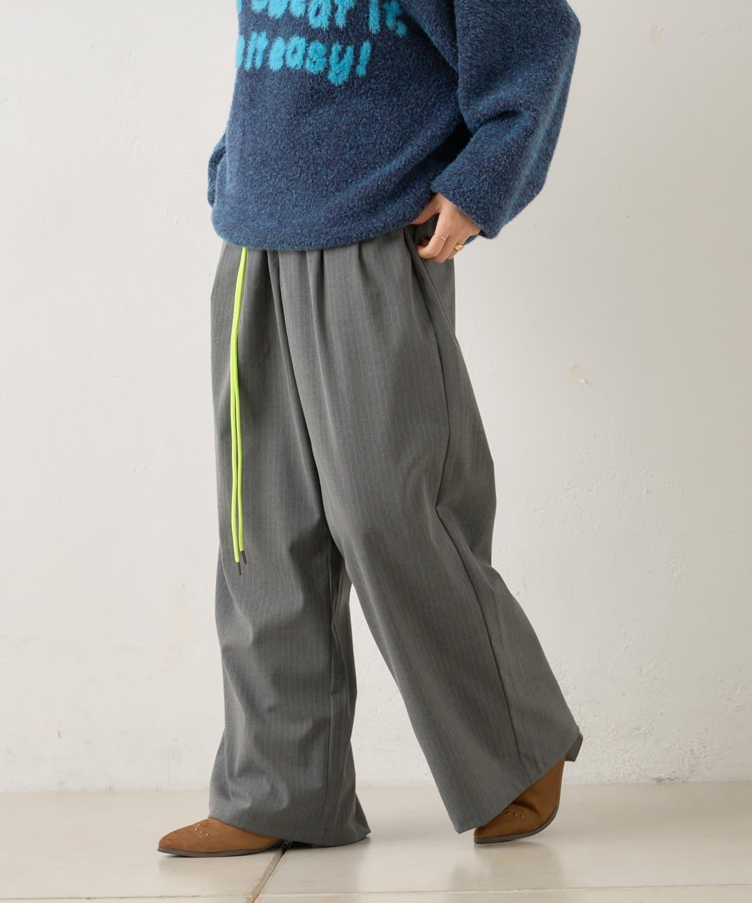 寬鬆休閒褲將經典細條紋與霓虹色繩帶相結合,充滿街頭元素。
