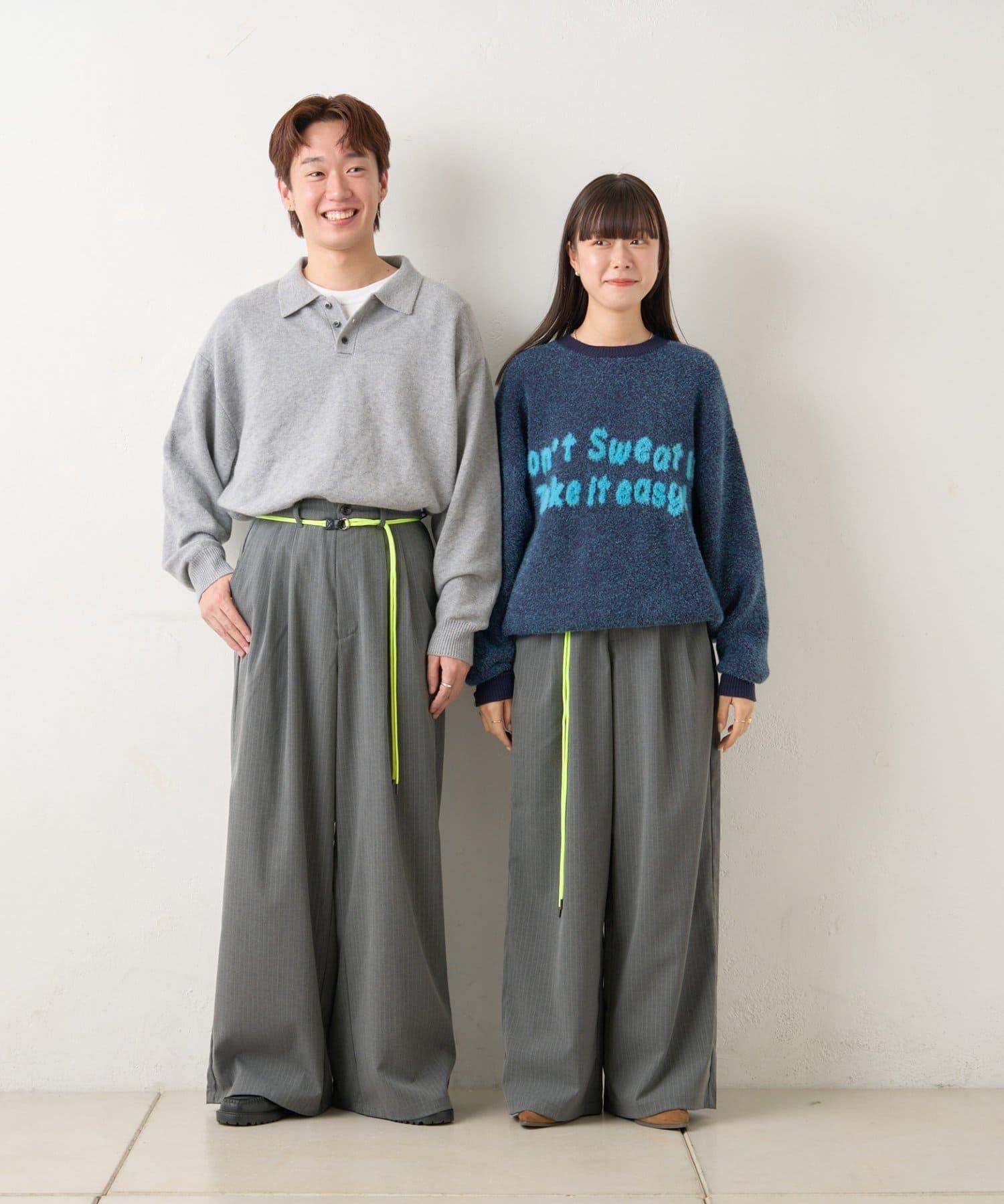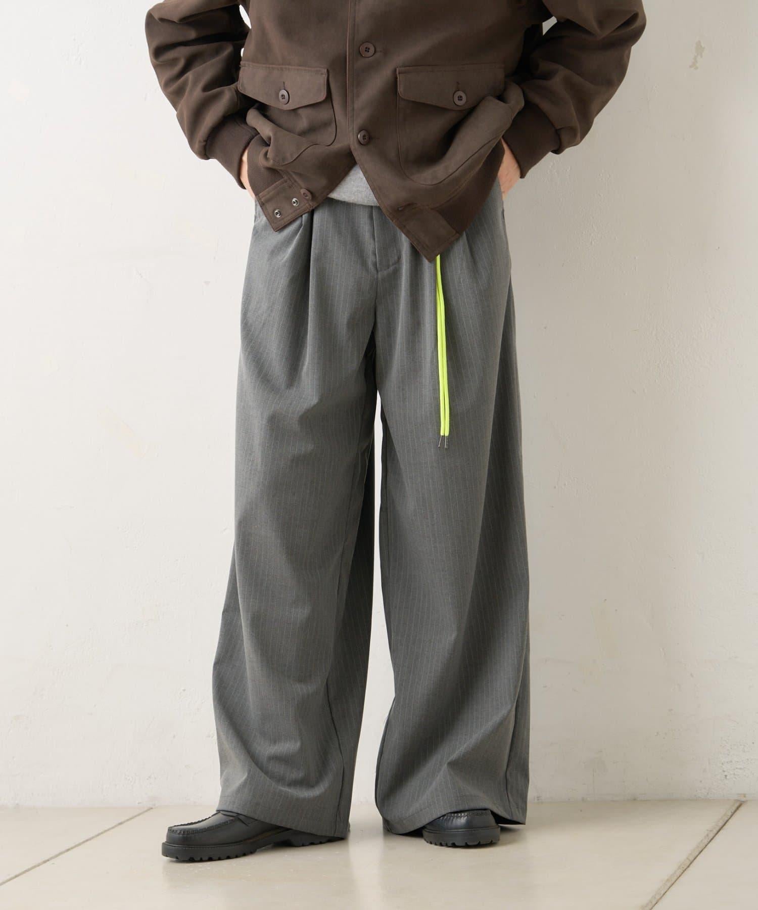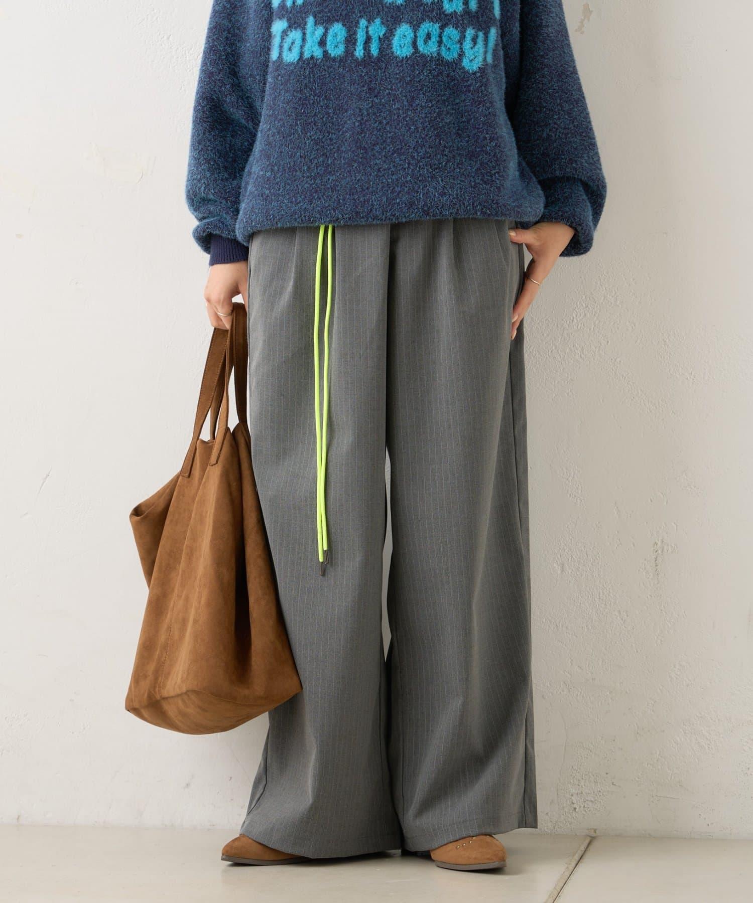 寬鬆休閒褲將經典細條紋與霓虹色繩帶相結合,充滿街頭元素。