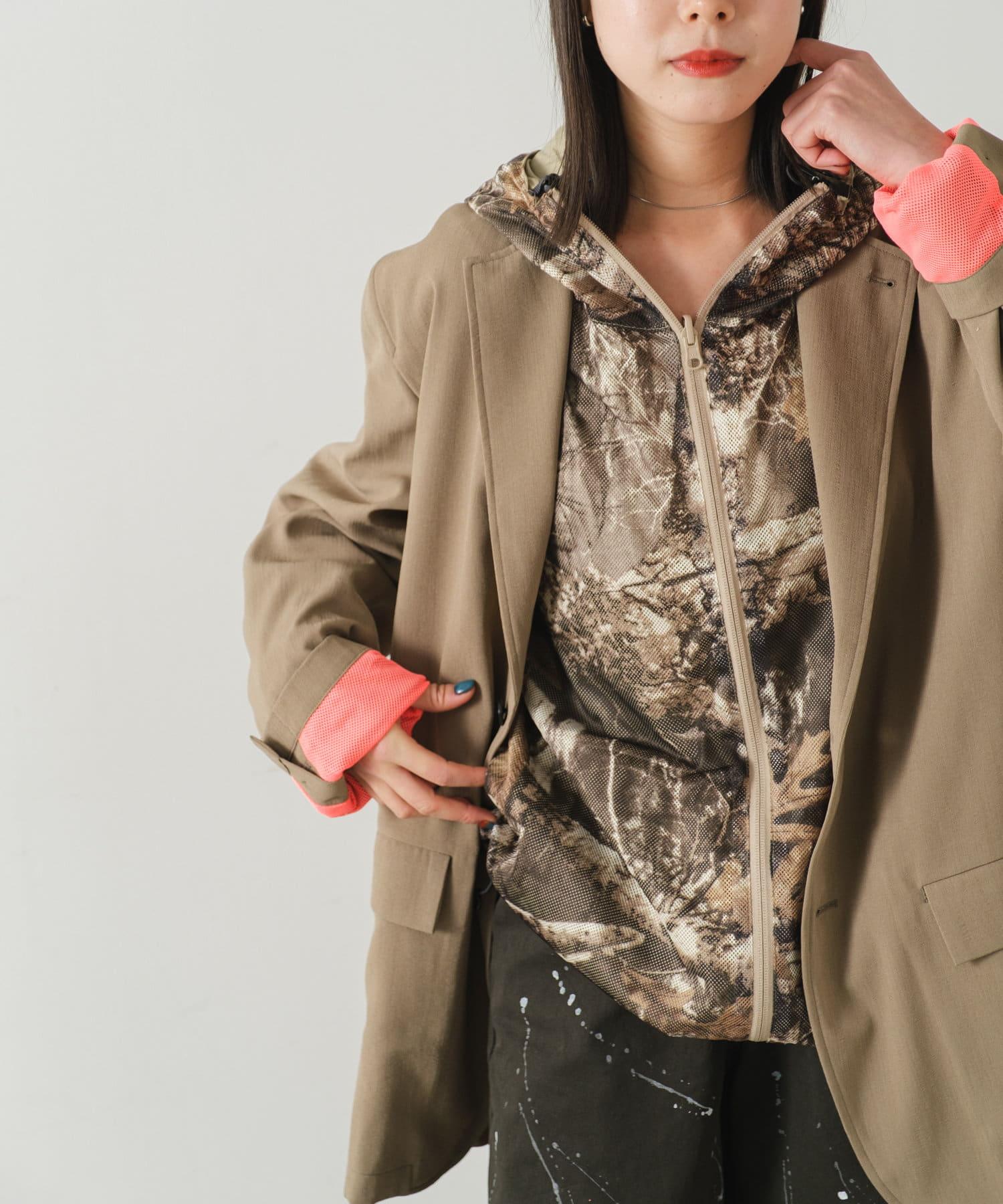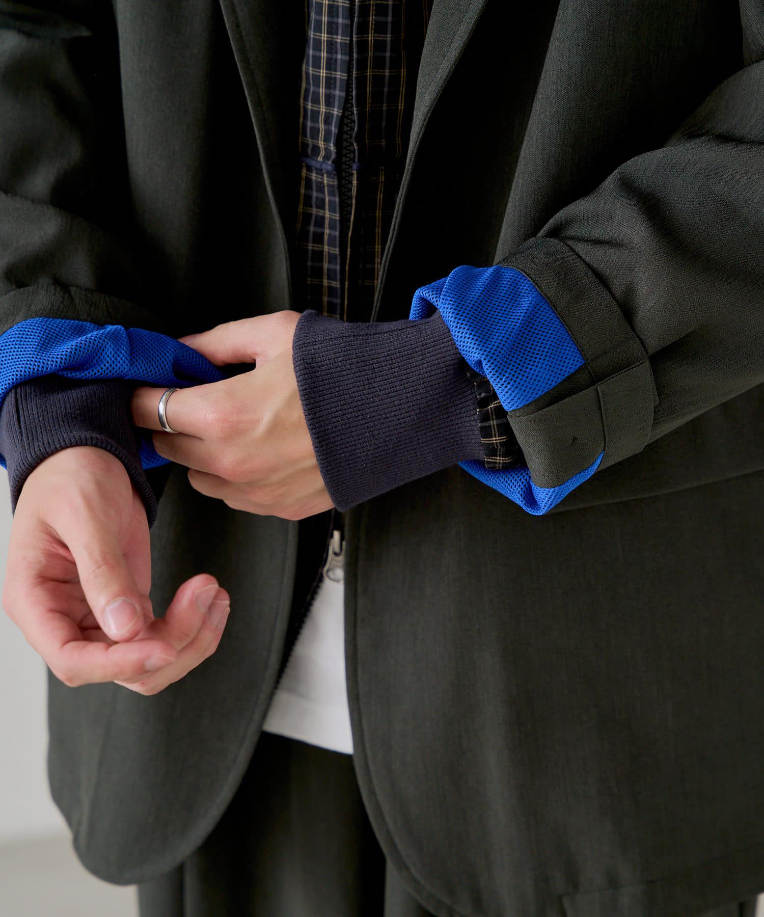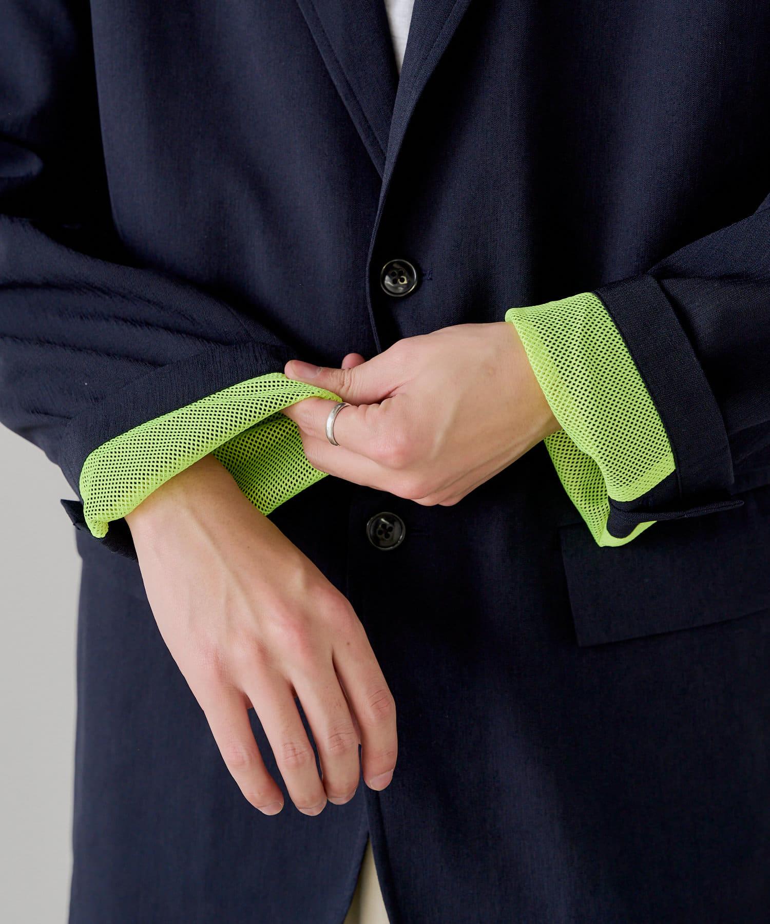 這是一款 2B 剪裁夾克,設計純正,內襯色彩斑斕,給人一種俏皮的感覺。