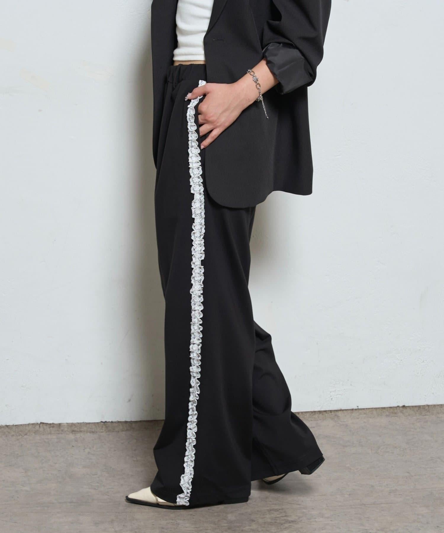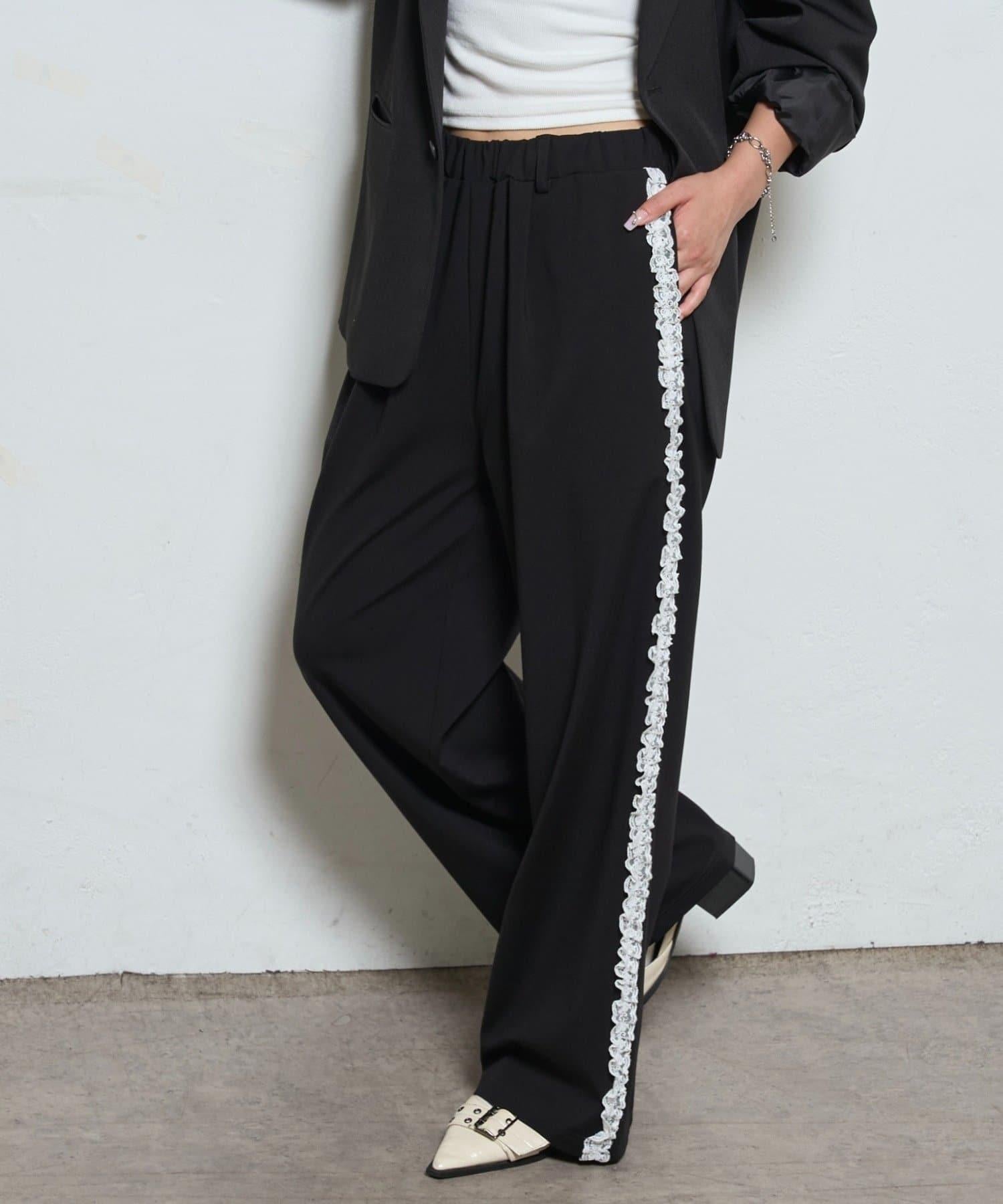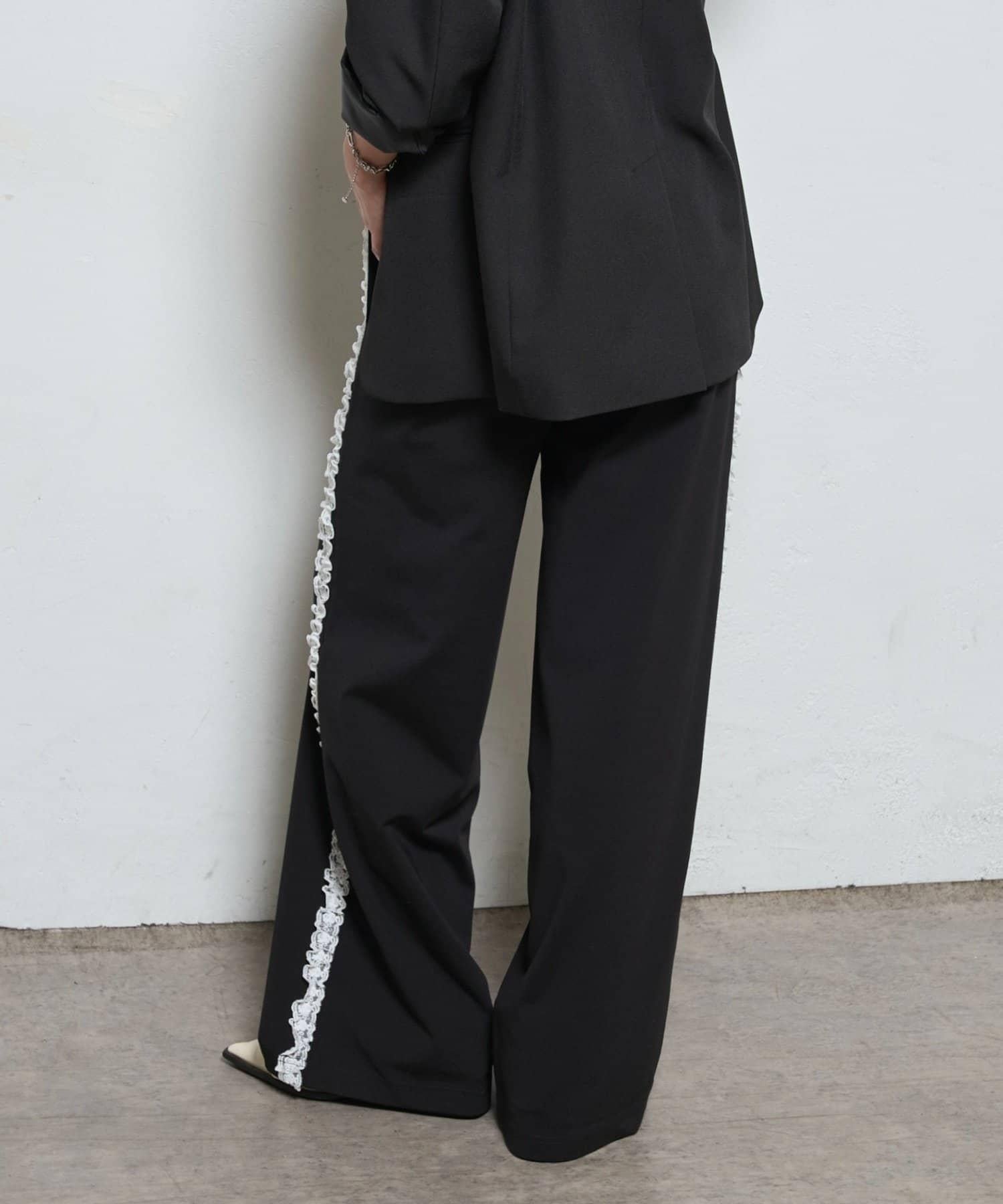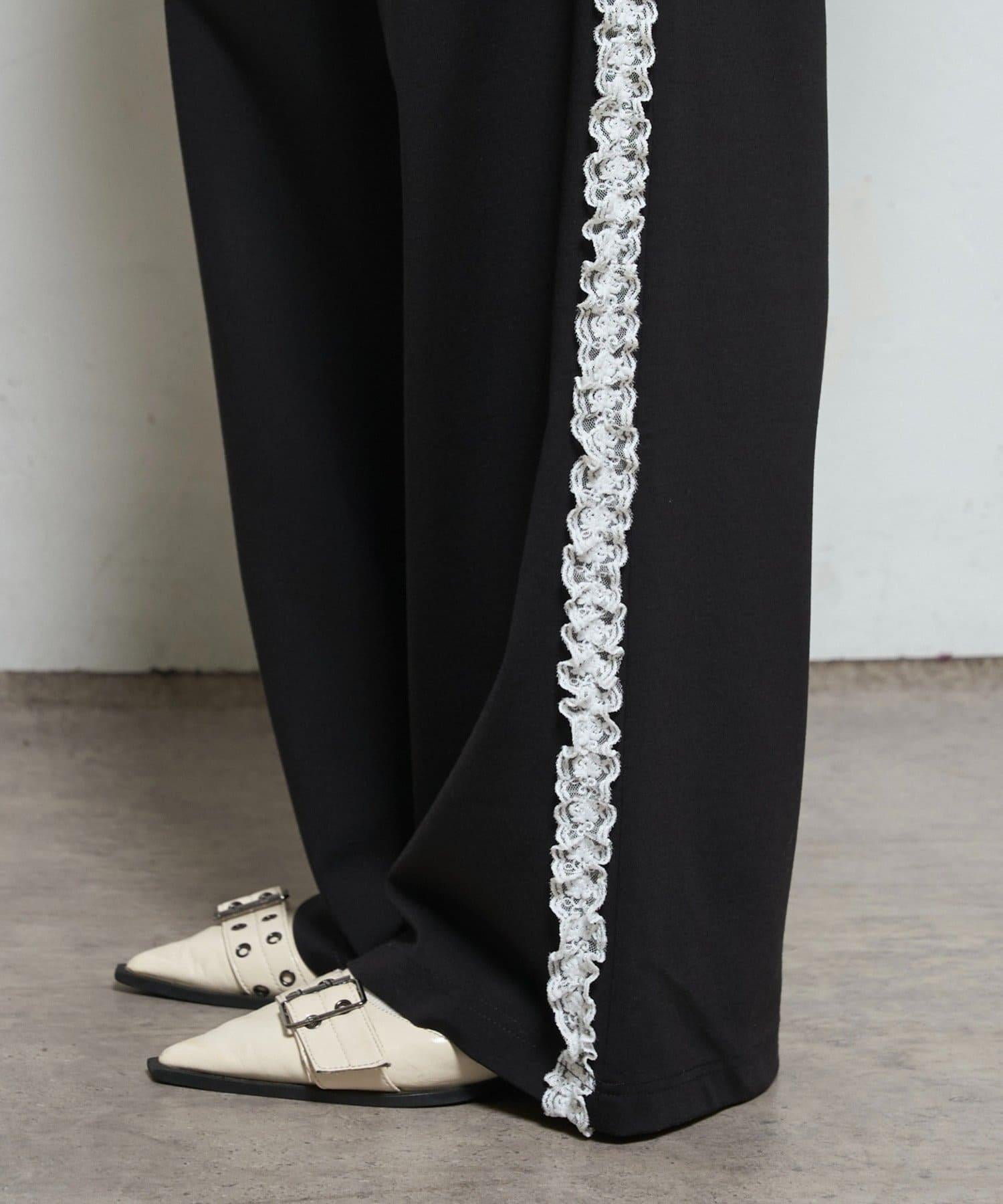 【WHO'S WHO gallery】側邊蕾絲拼接長褲