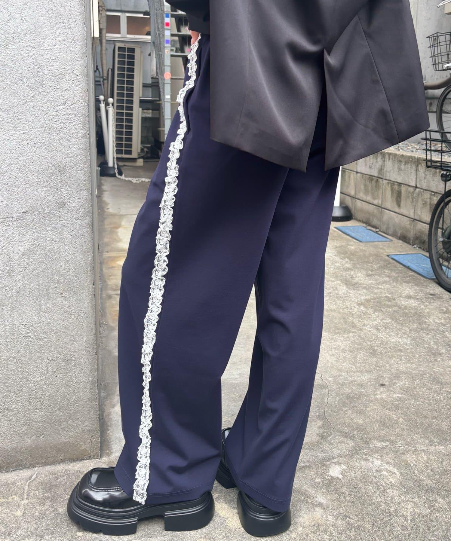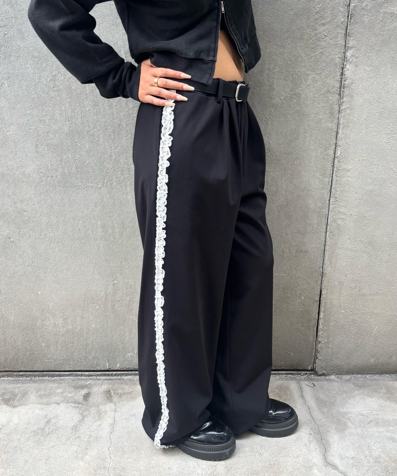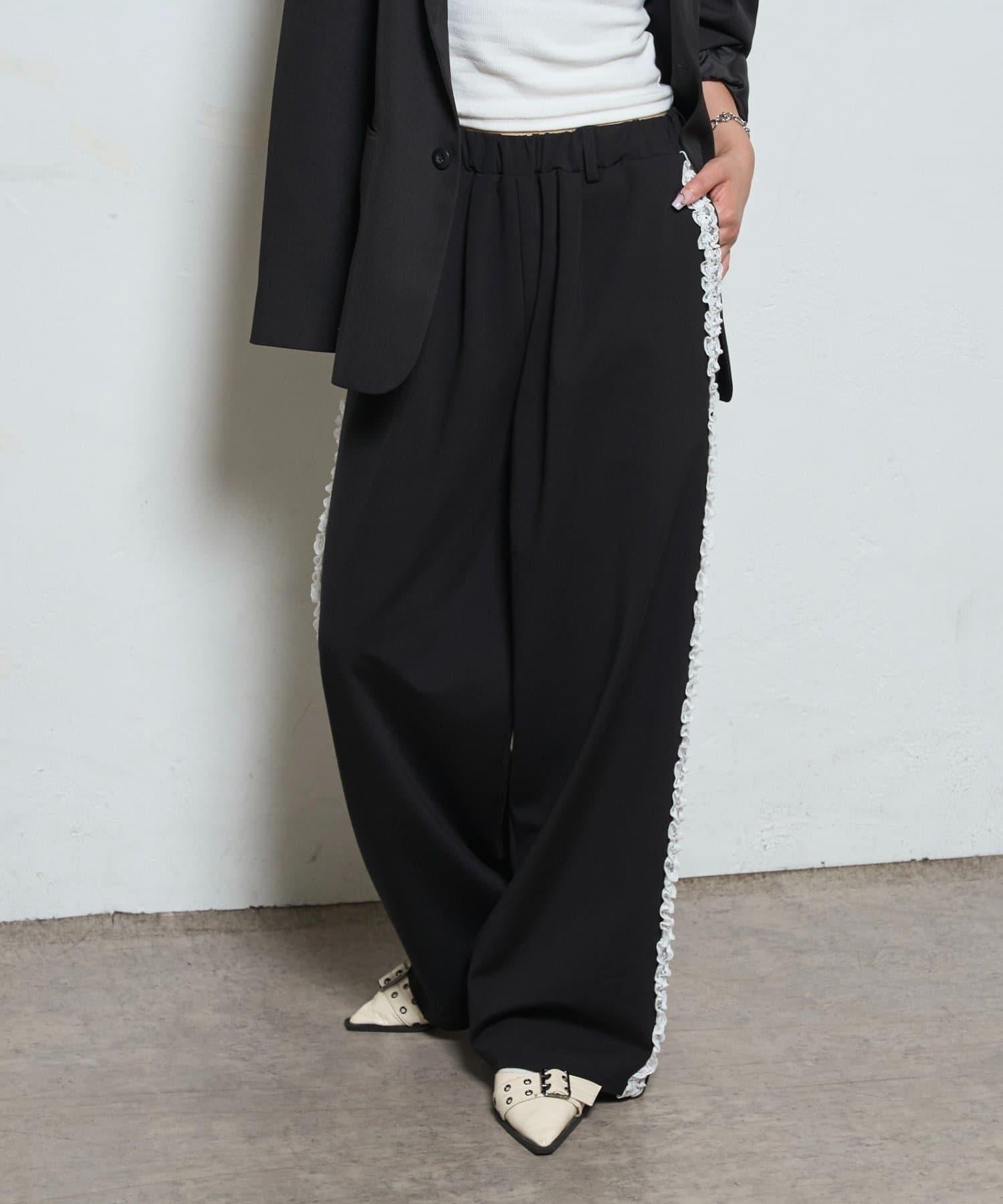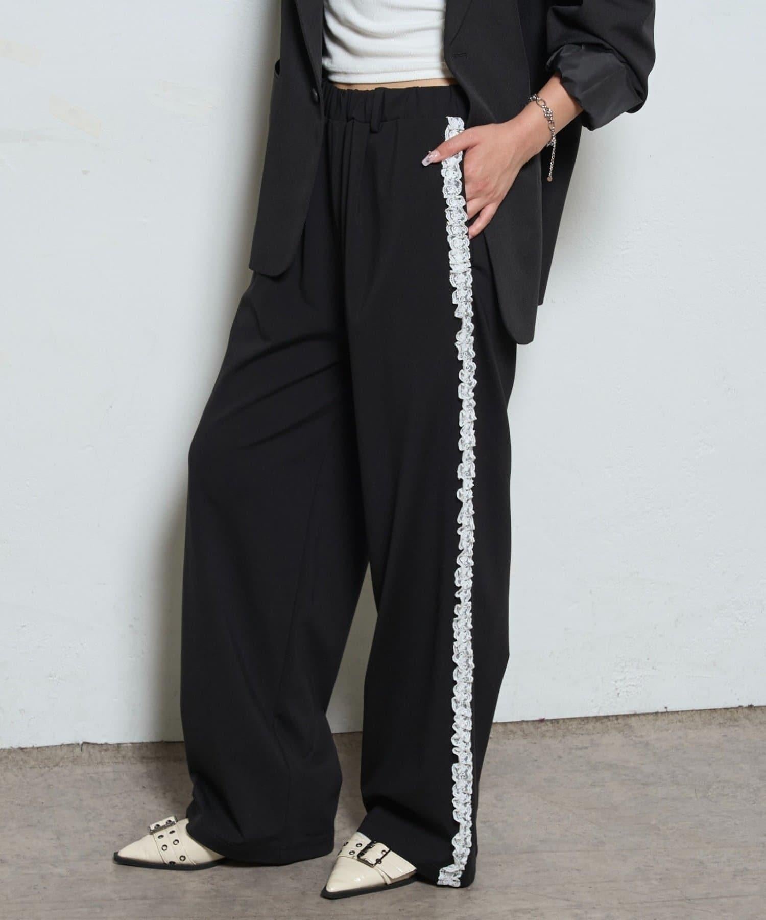 【WHO'S WHO gallery】側邊蕾絲拼接長褲
