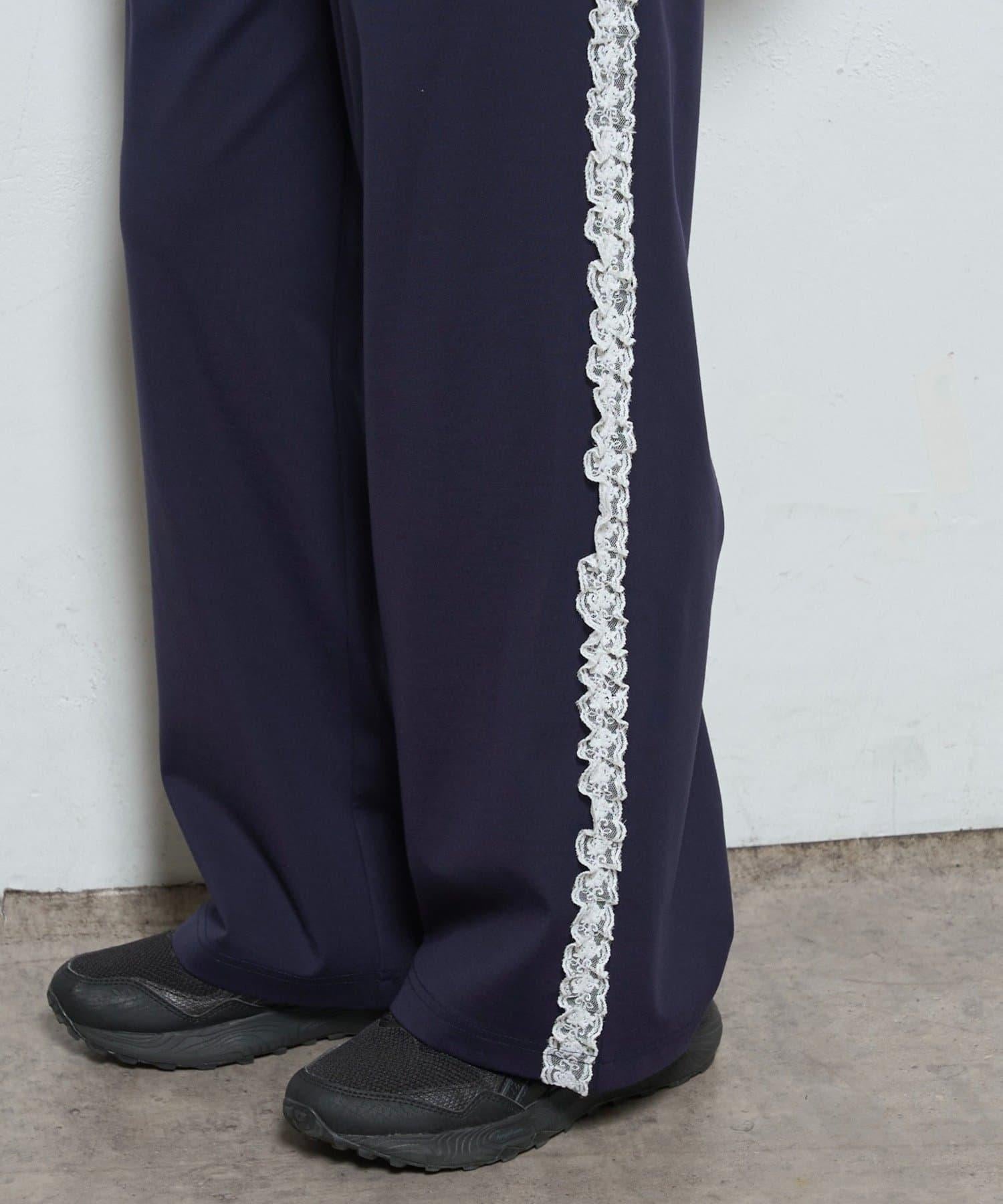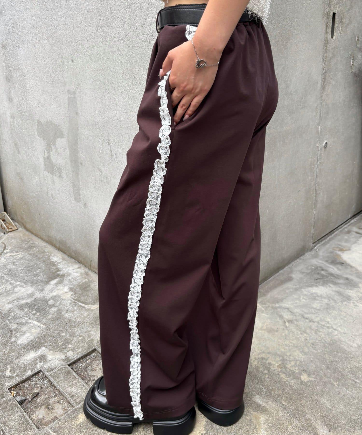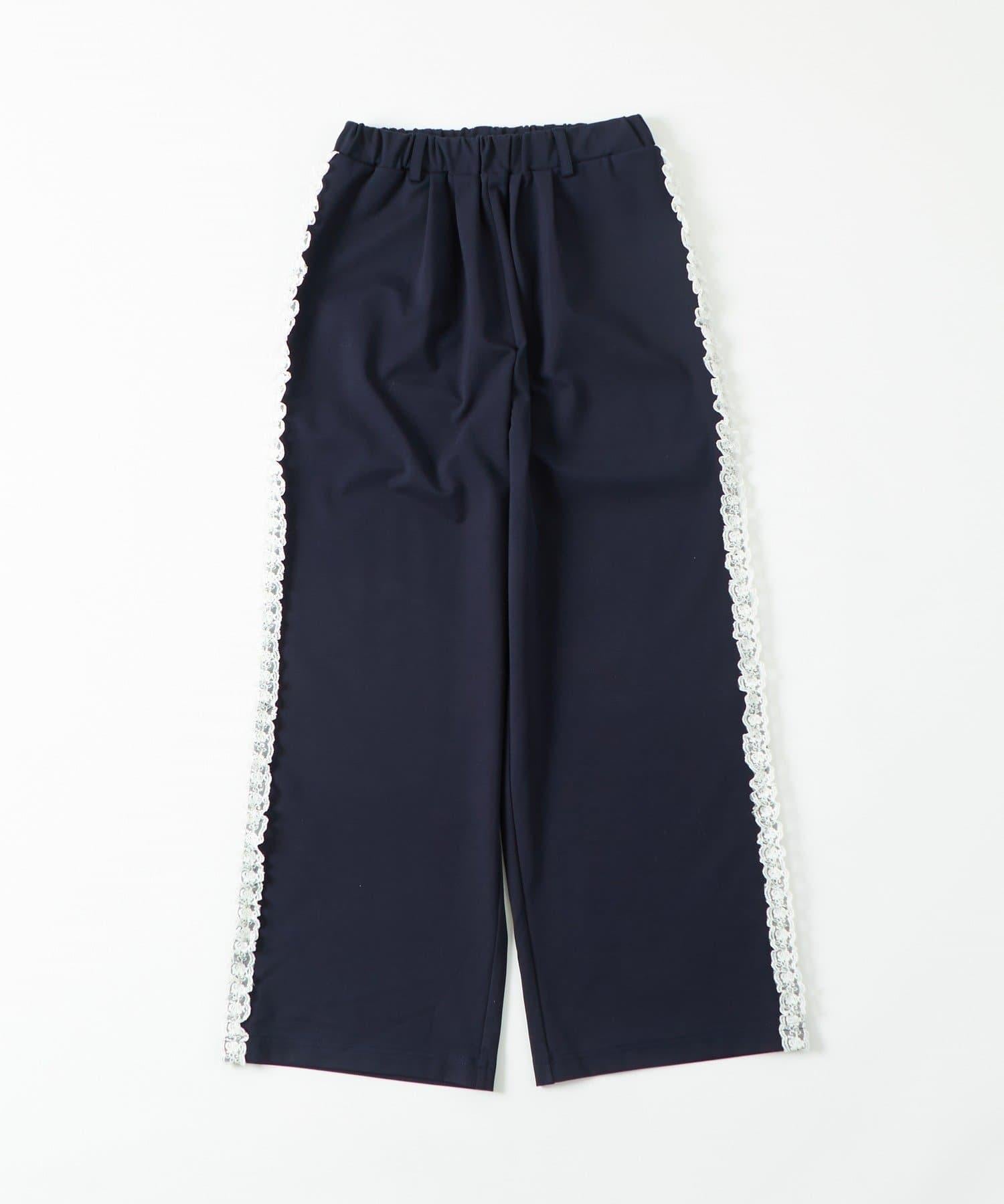 長褲兩側精緻的蕾絲花邊增添了一種微妙的優雅氣質。