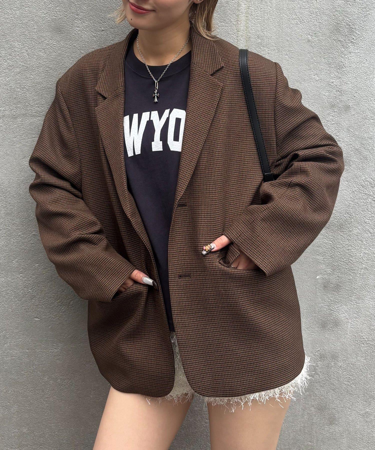 成人舒適造型。棕色格紋和別緻的黑色雙色單人剪裁外套。
