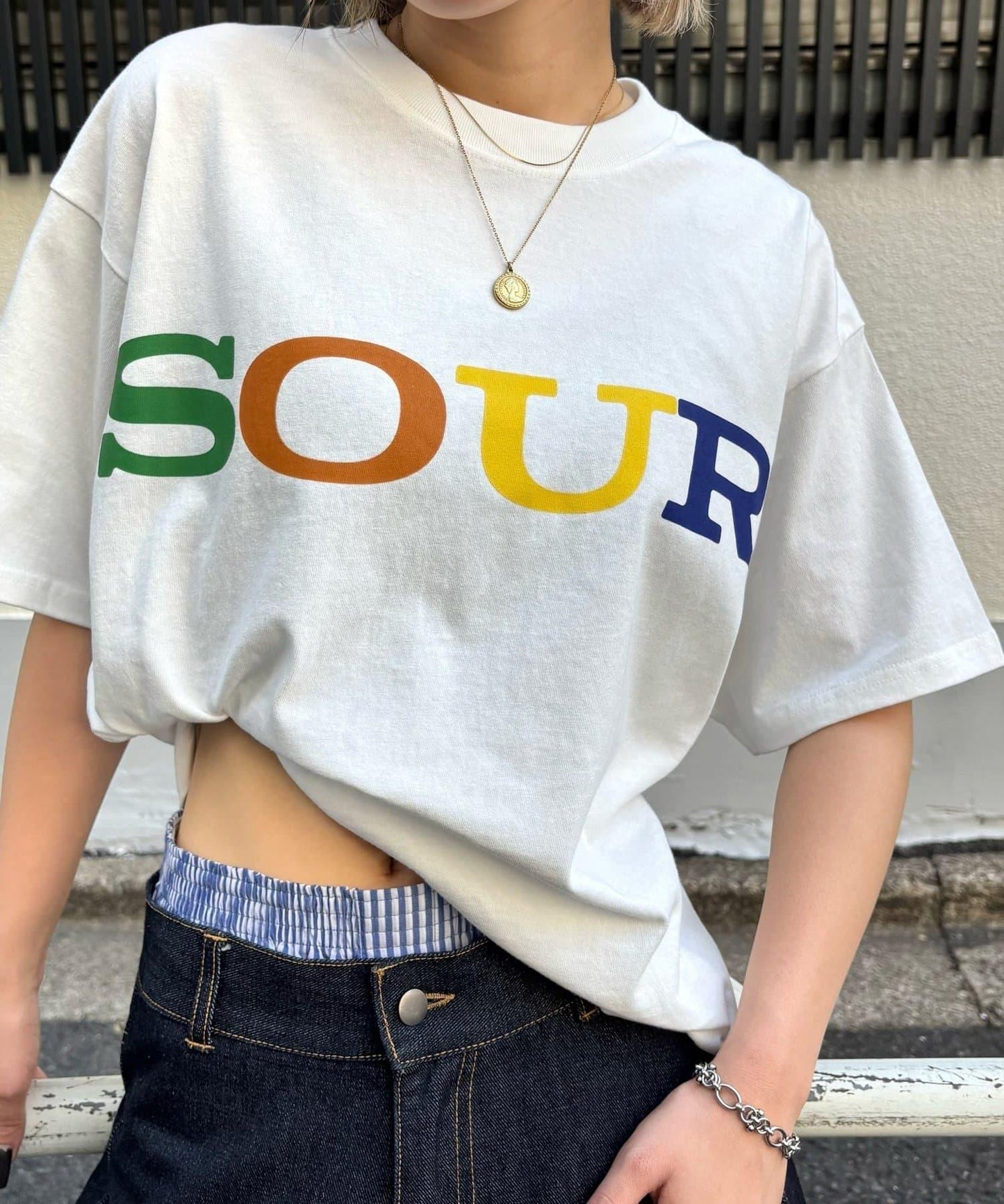 這款 T 恤可搭配牛仔褲或運動褲,打造休閒造型,也可搭配直筒牛仔褲或復古混搭其他多種款式。