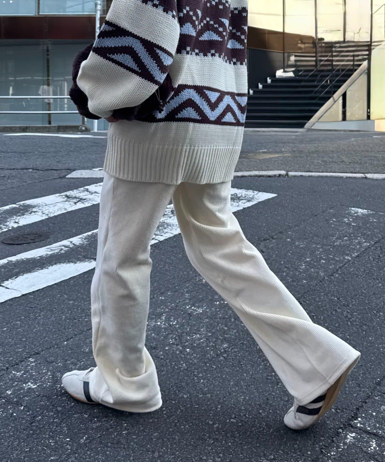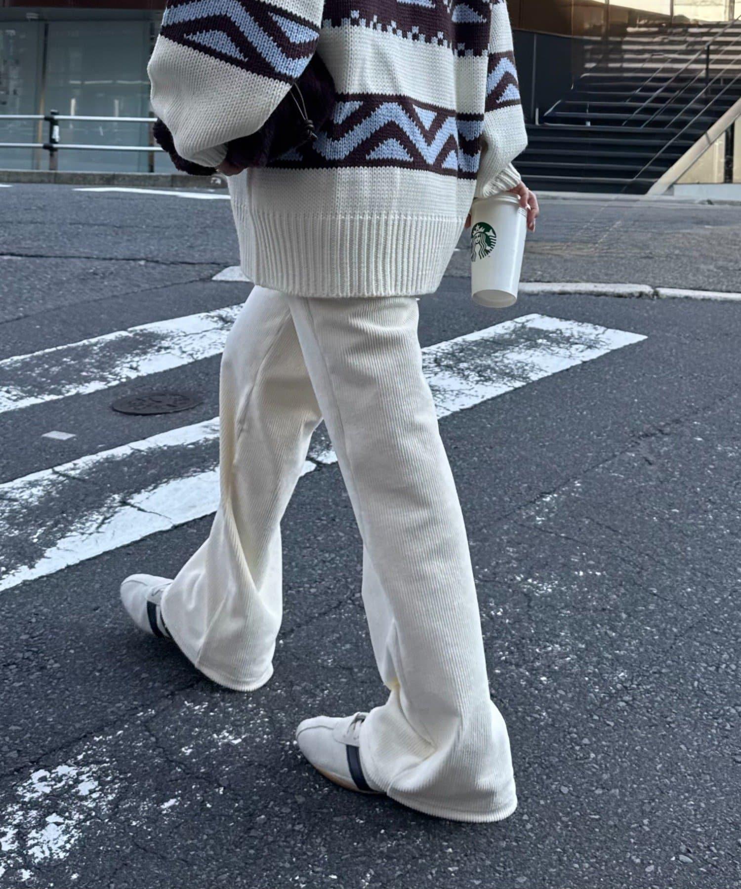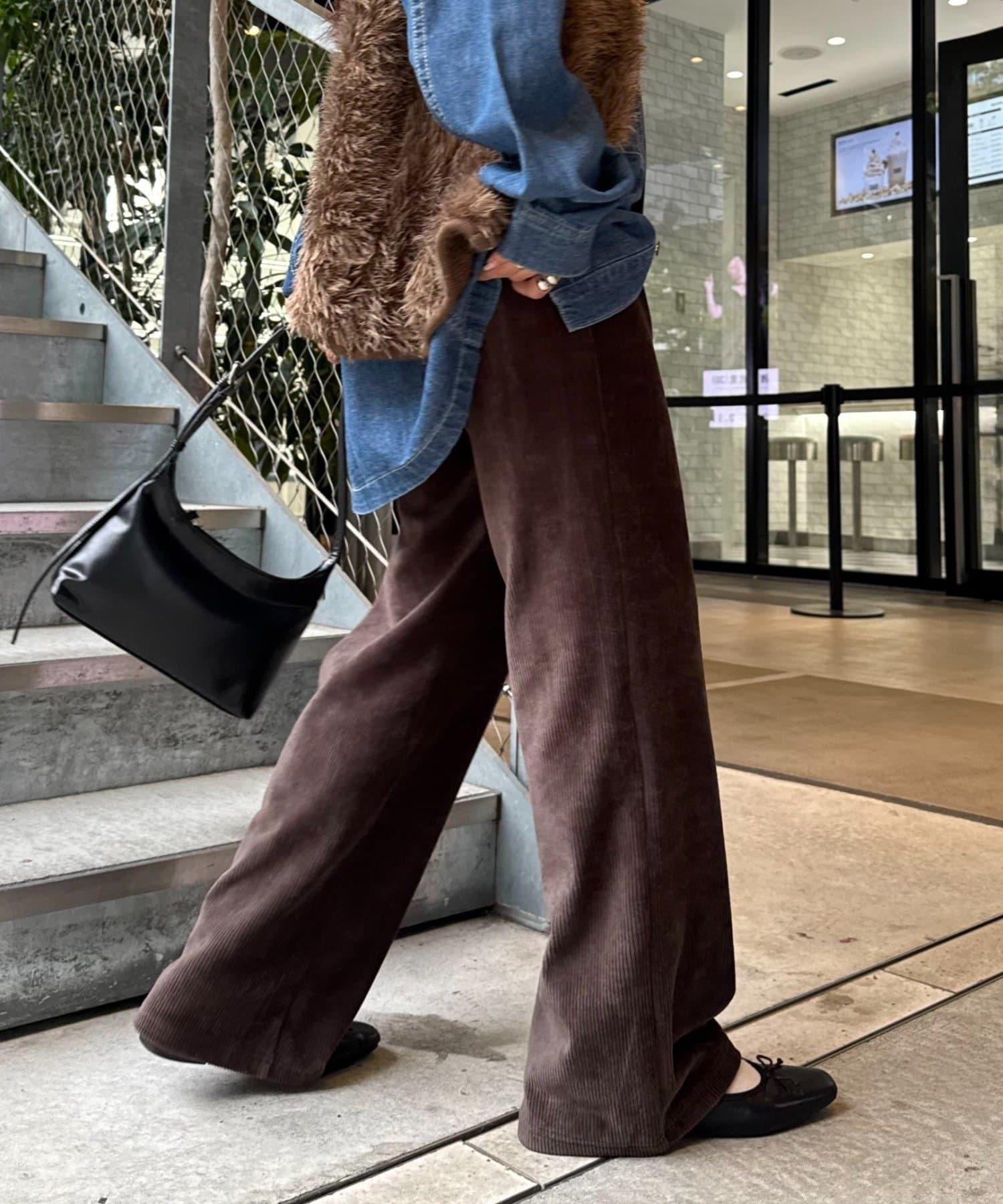 燈芯絨面料賦予了這款長褲優美的廓形,提升了季節氛圍!