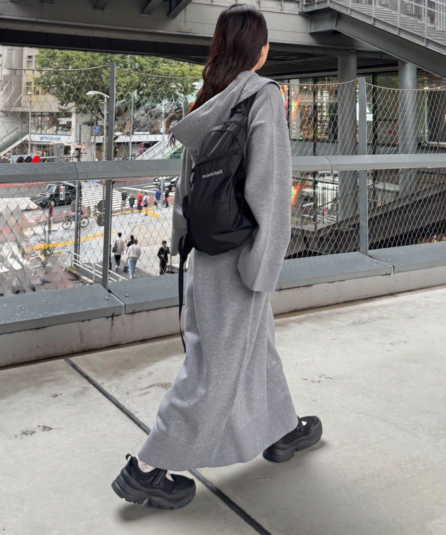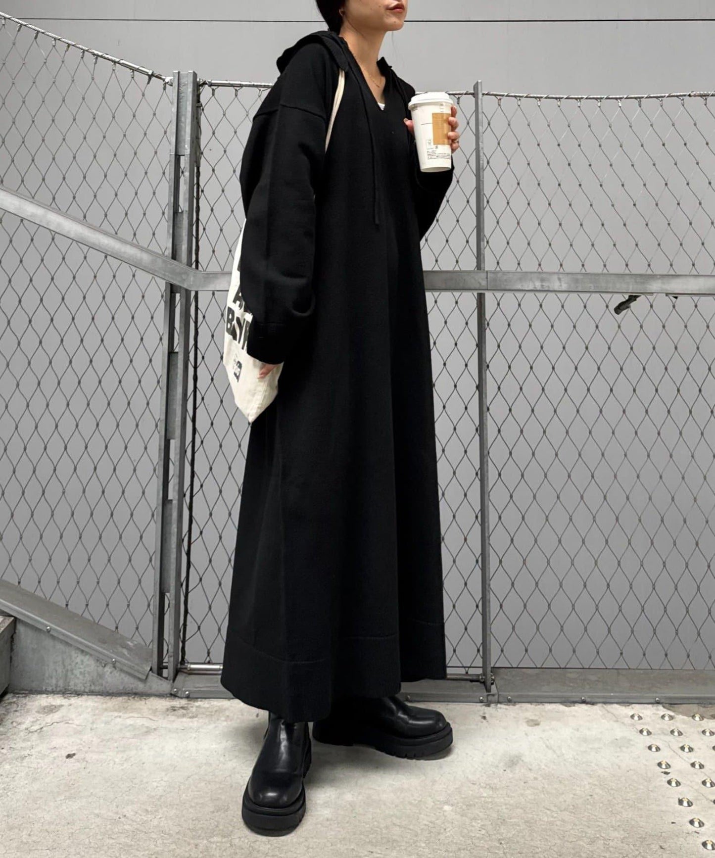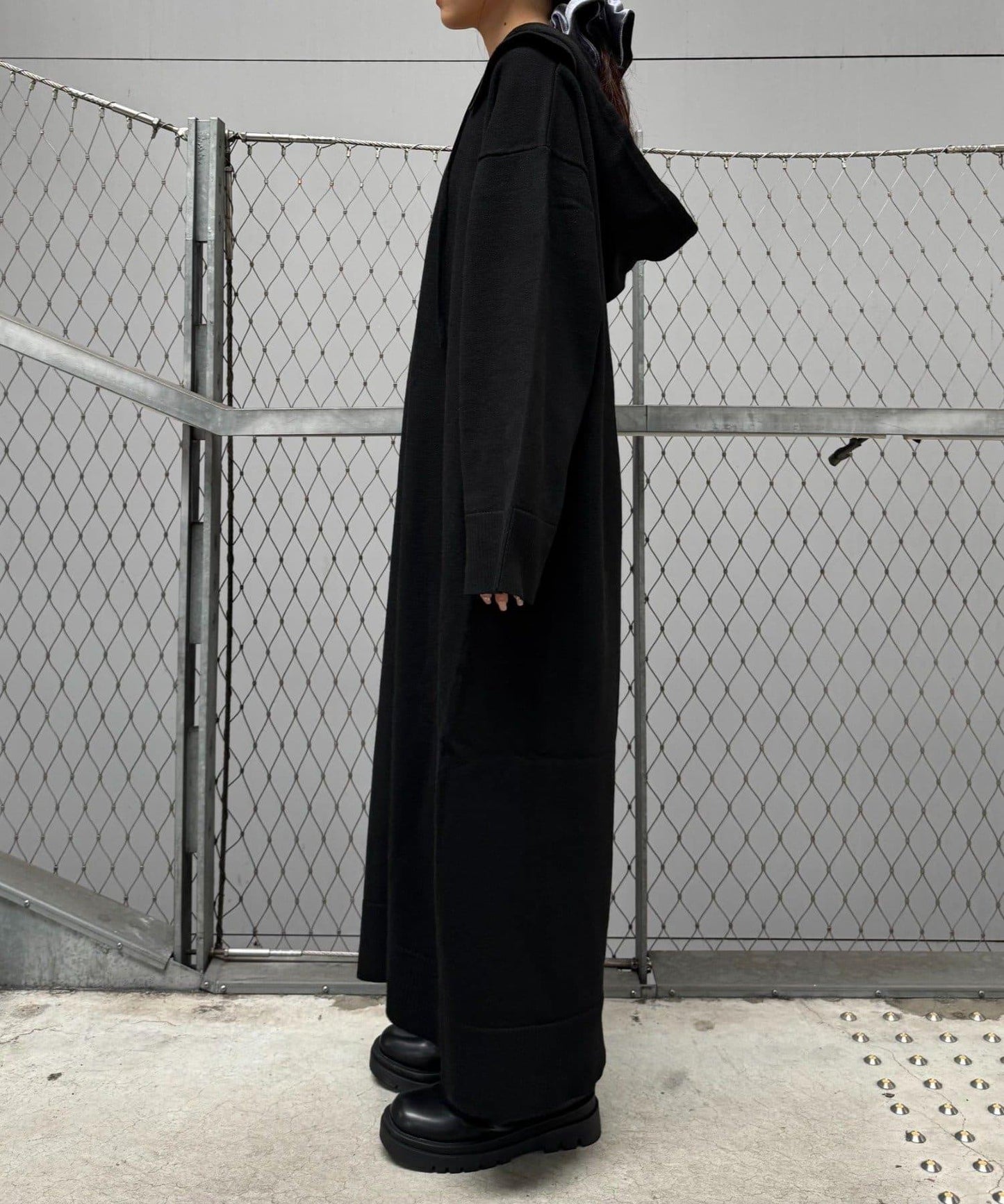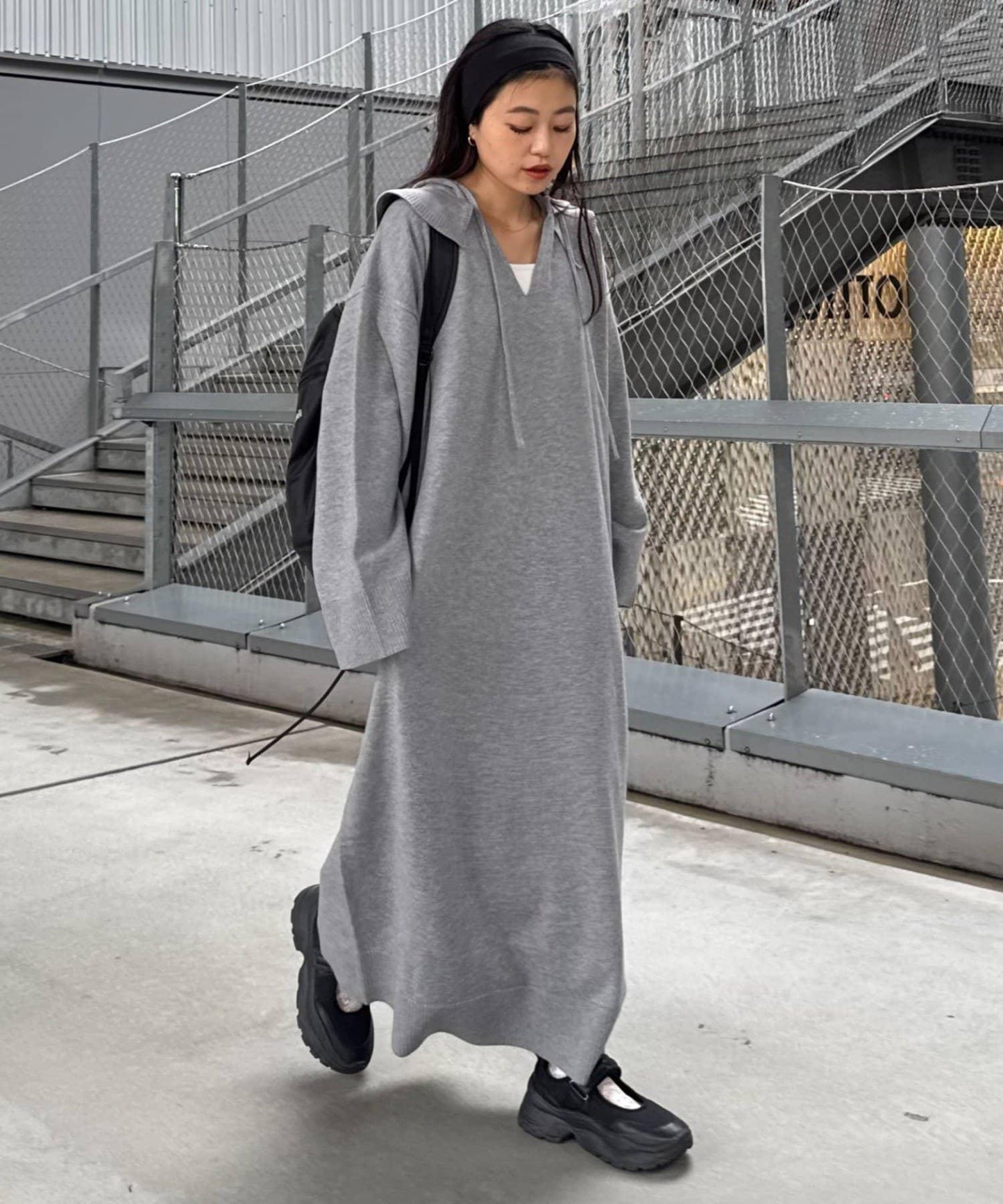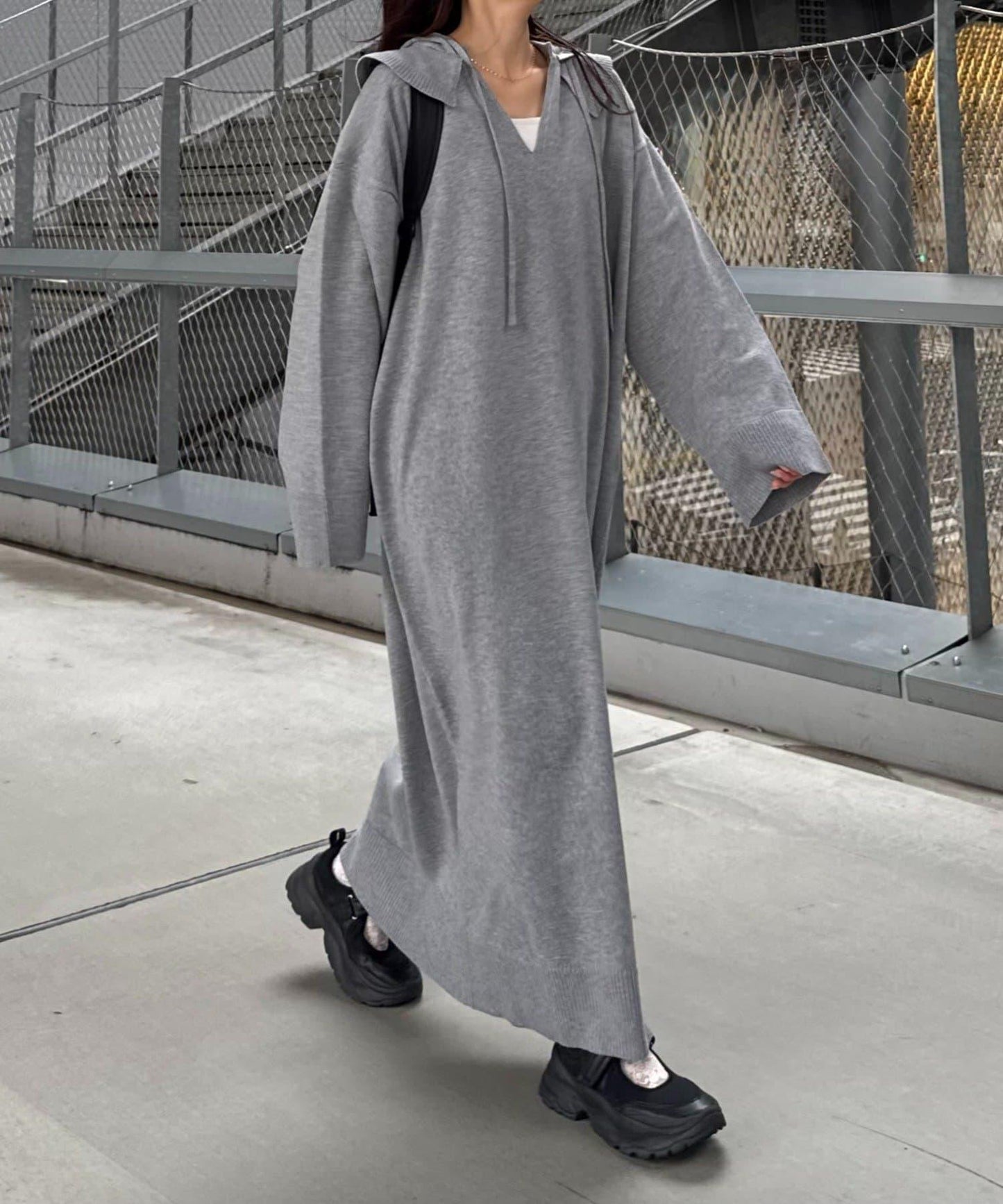 這是一款針織連帽連身衣,既有適度的寬鬆感,又有成熟的外觀。
