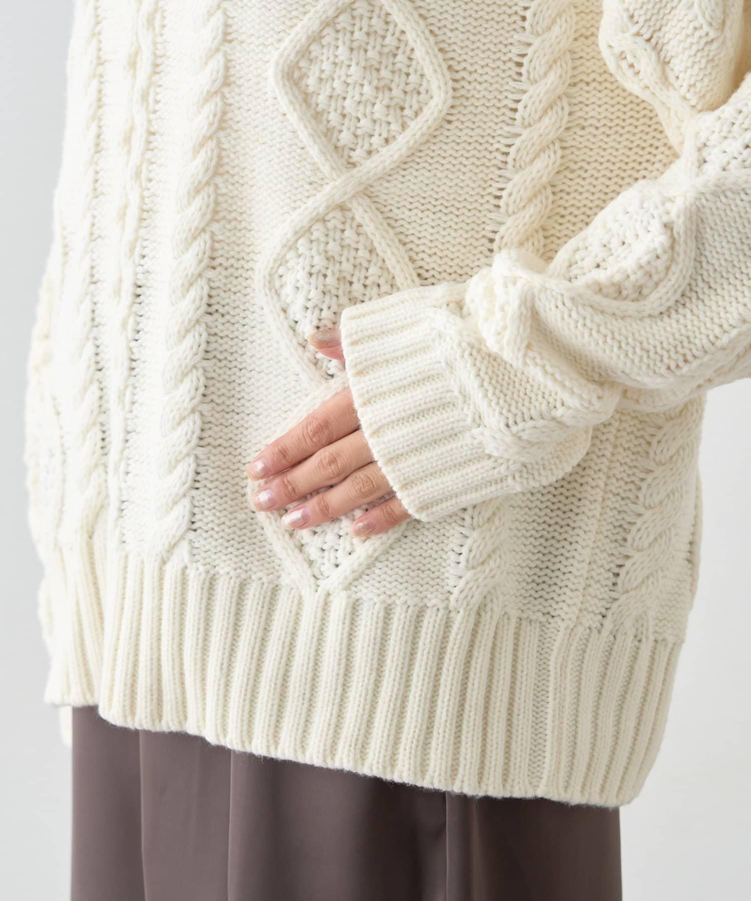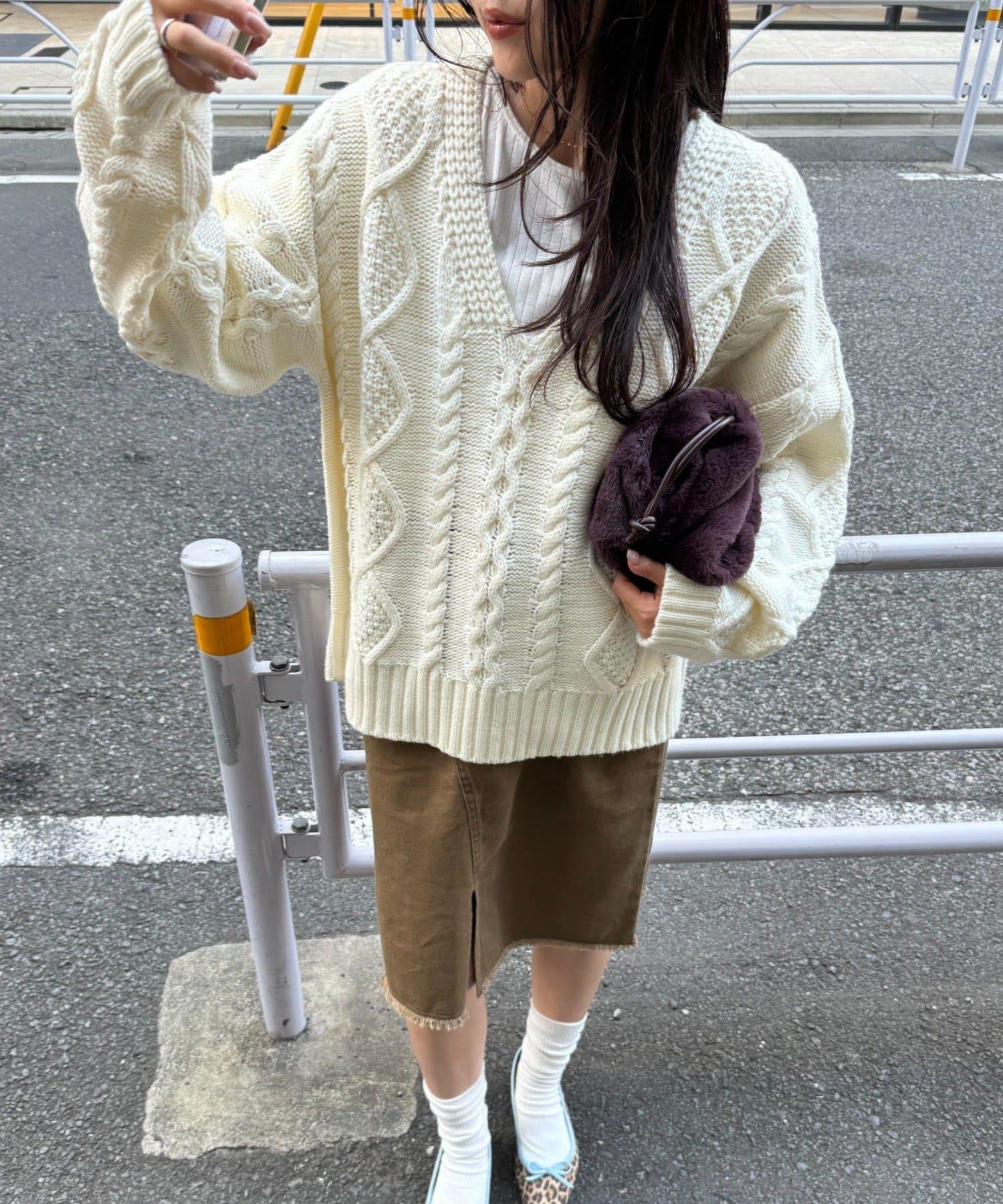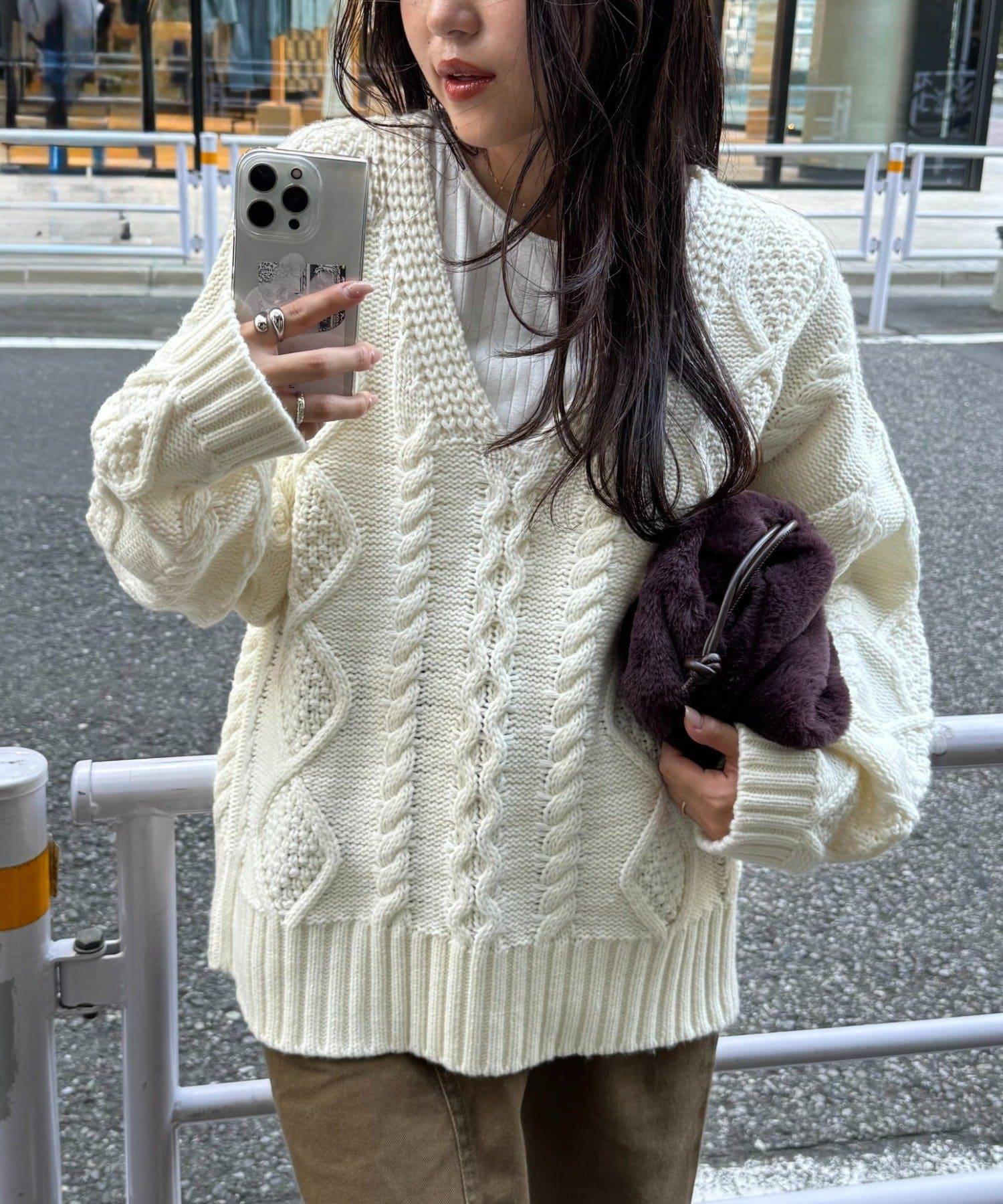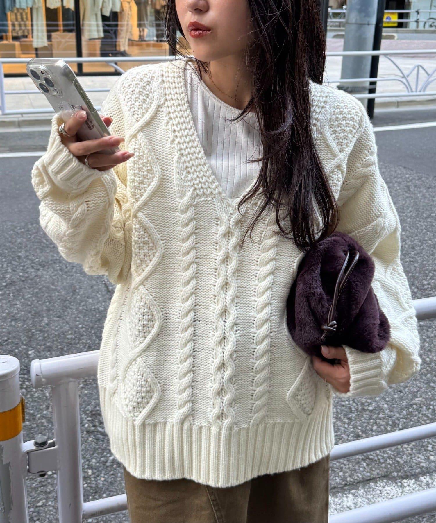 寬鬆的針織衫,搭配可愛的電纜針織。
