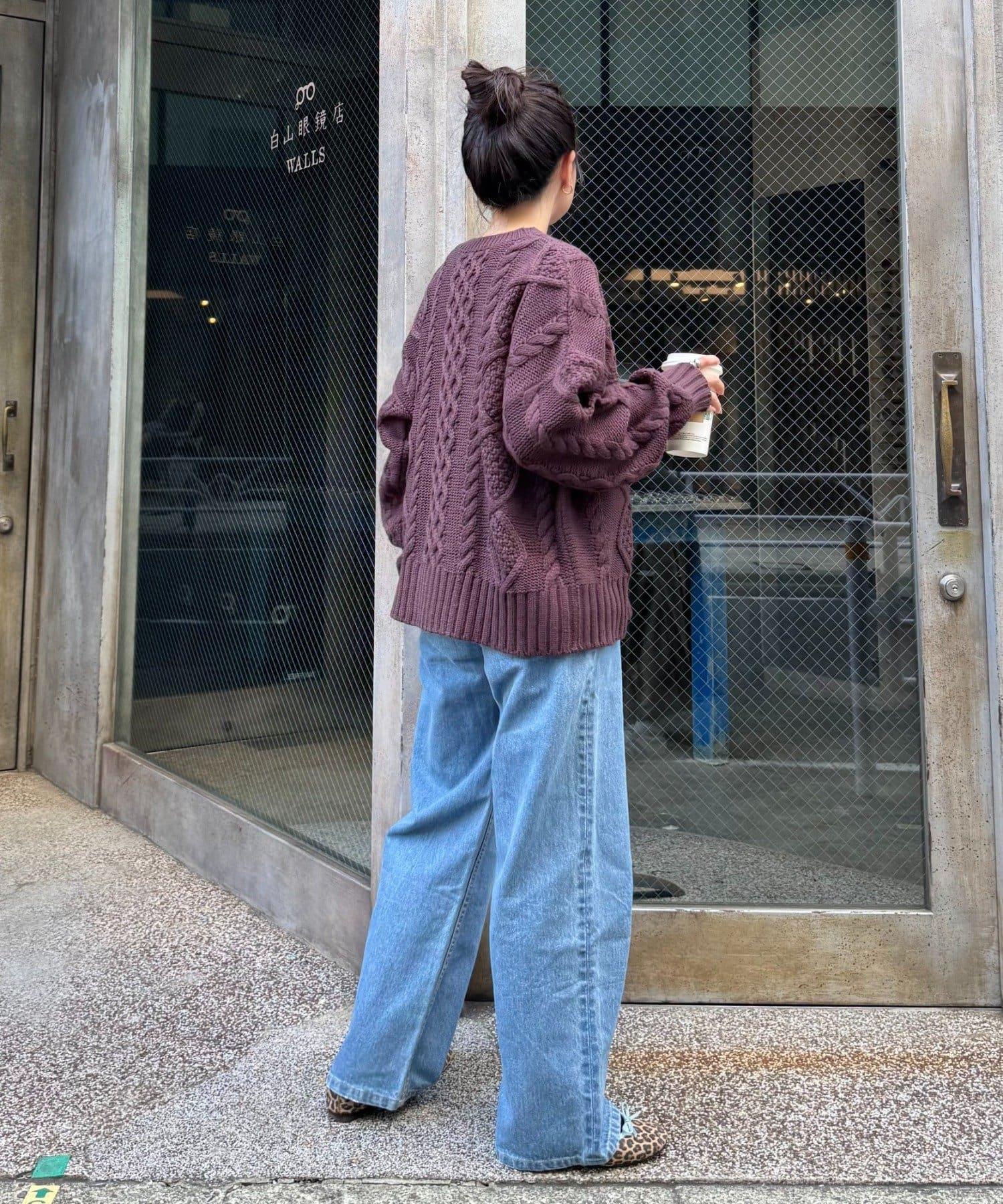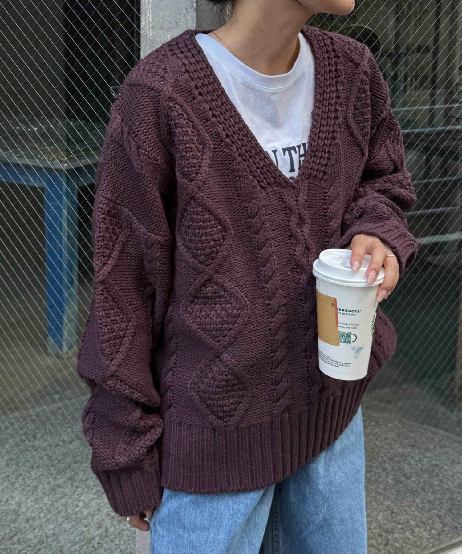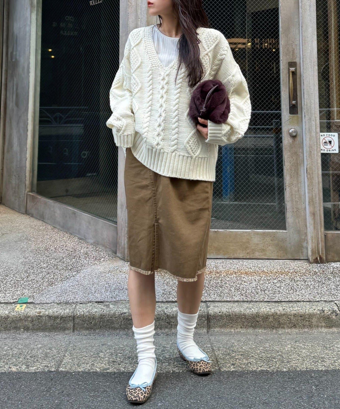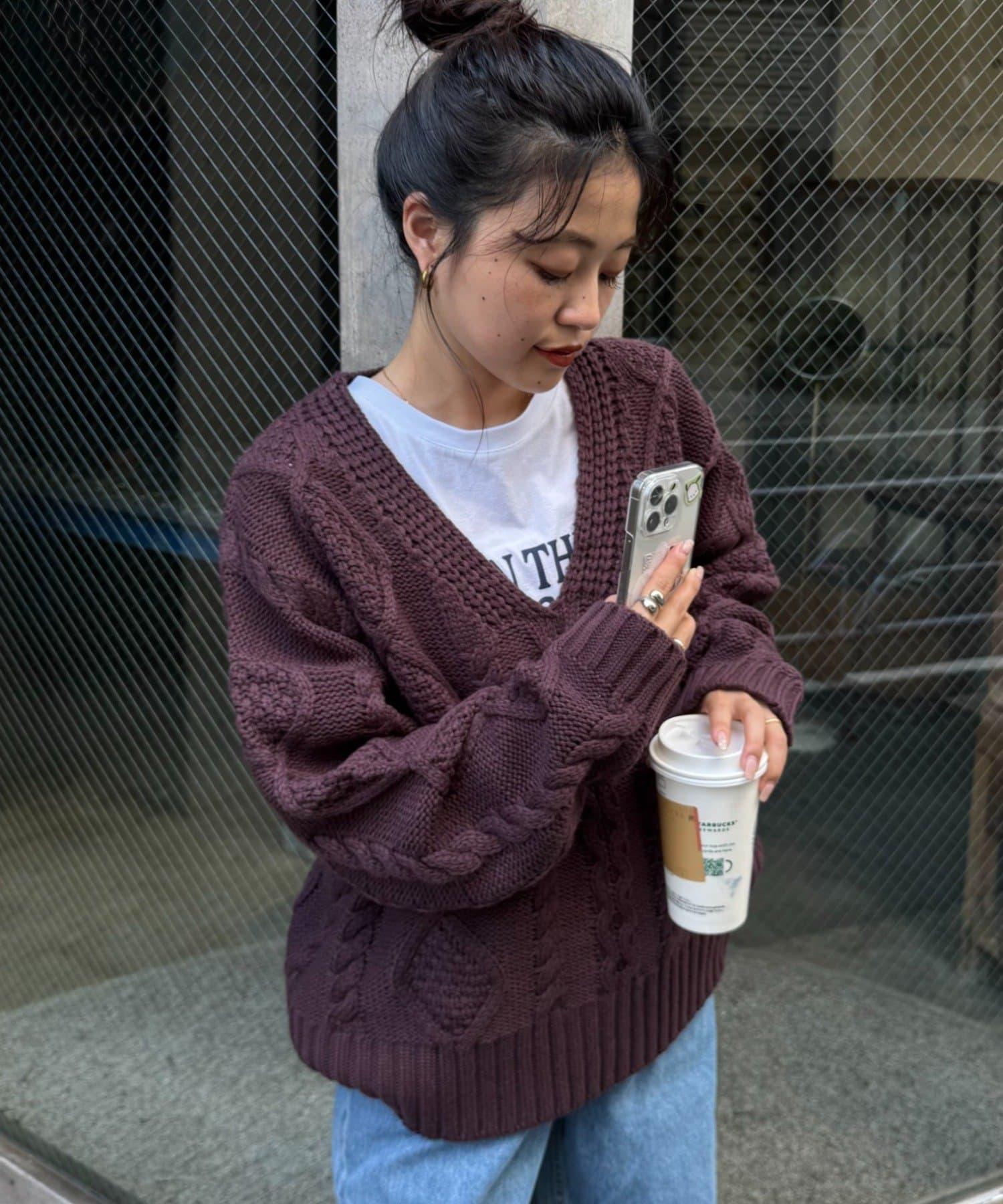 寬鬆的針織衫,搭配可愛的電纜針織。