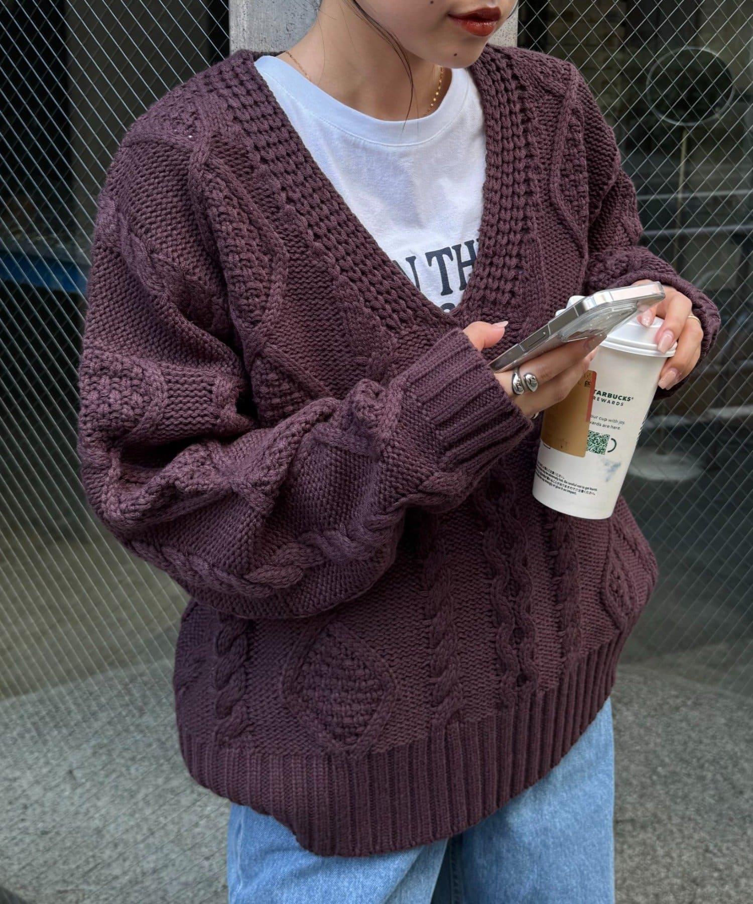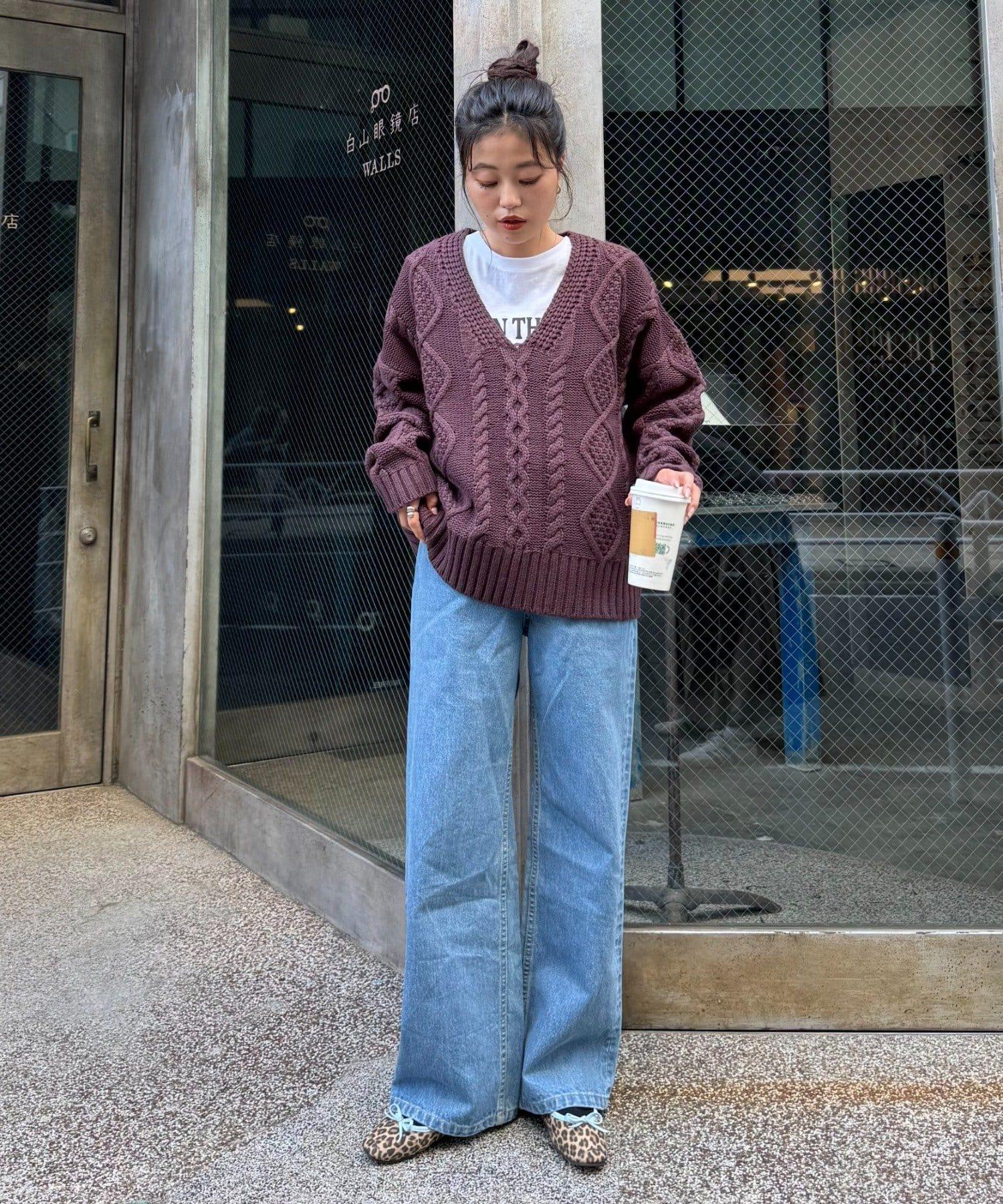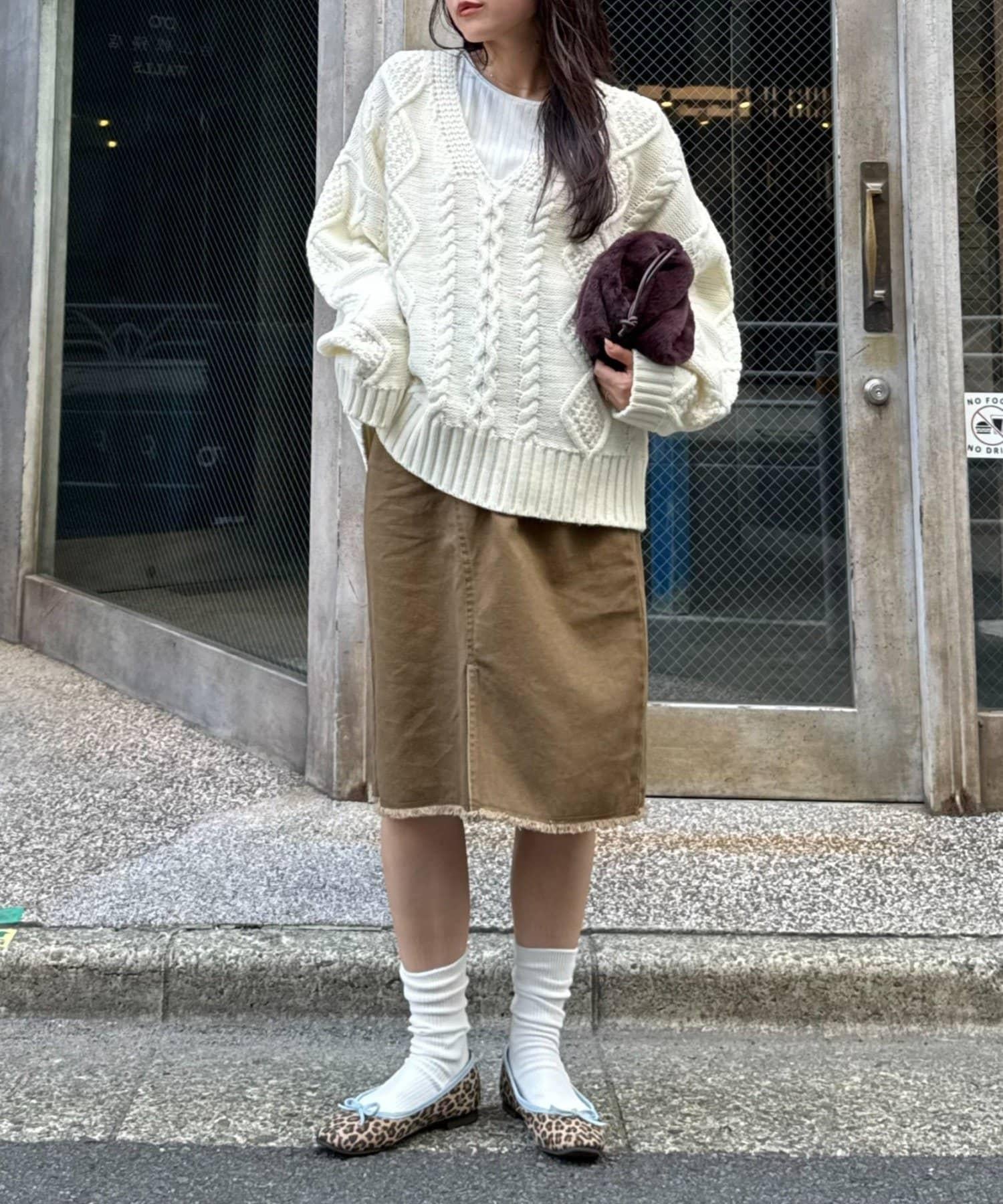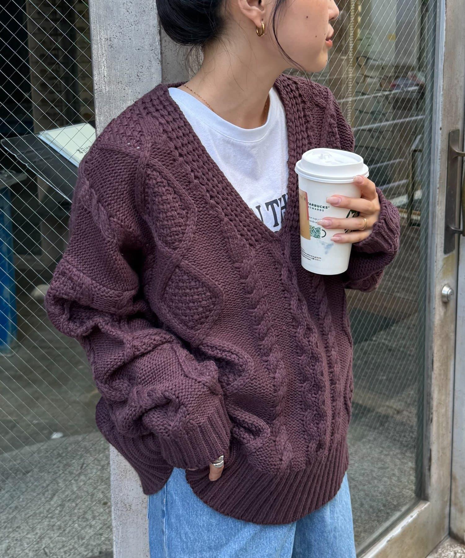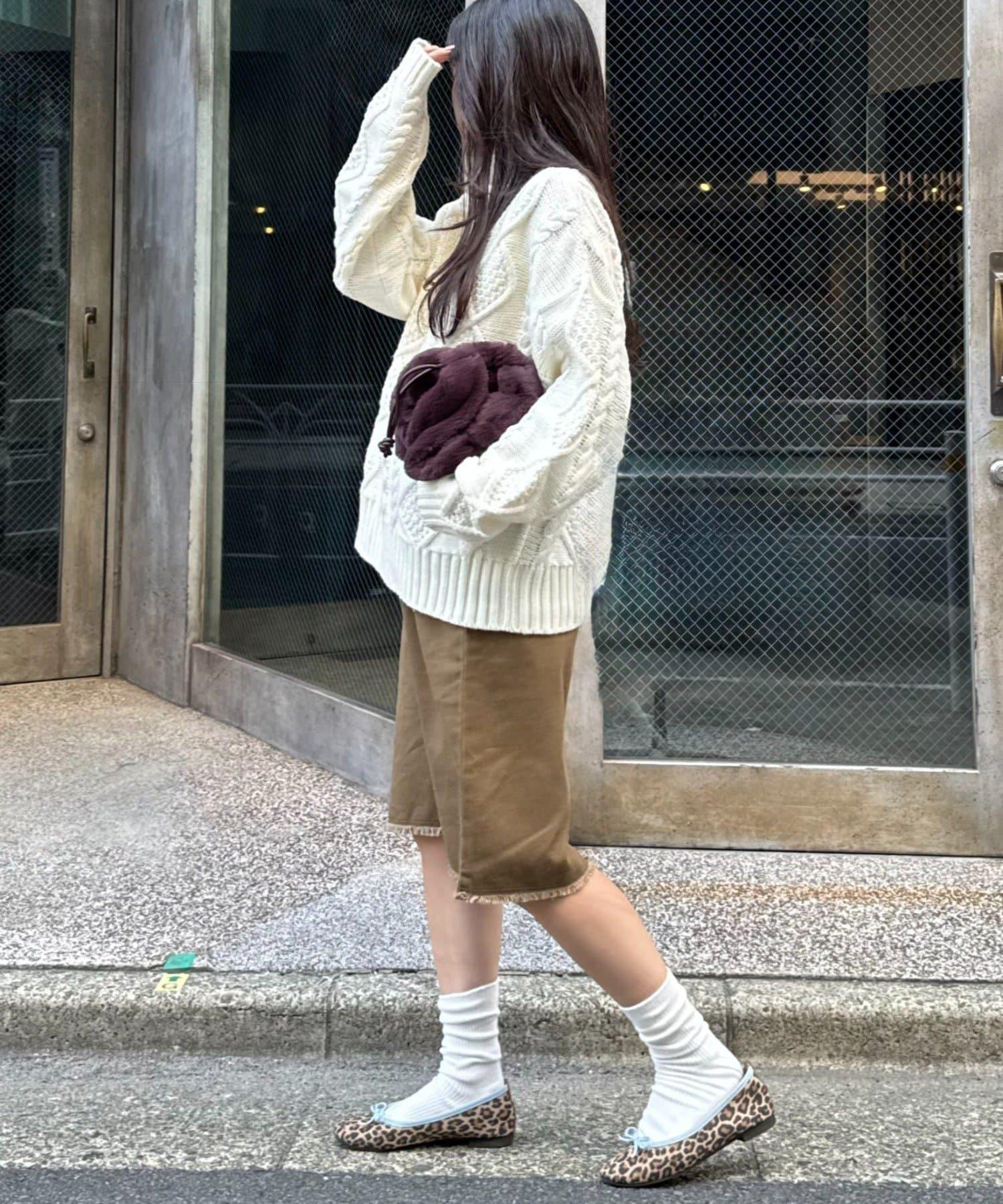 寬鬆的針織衫,搭配可愛的電纜針織。